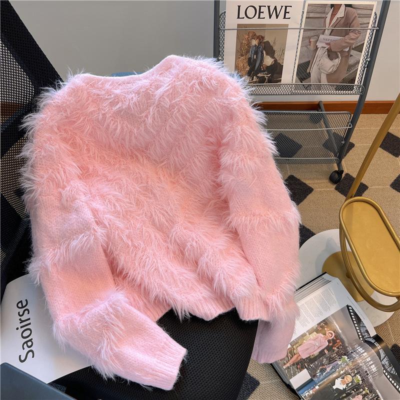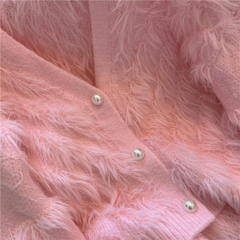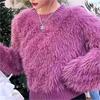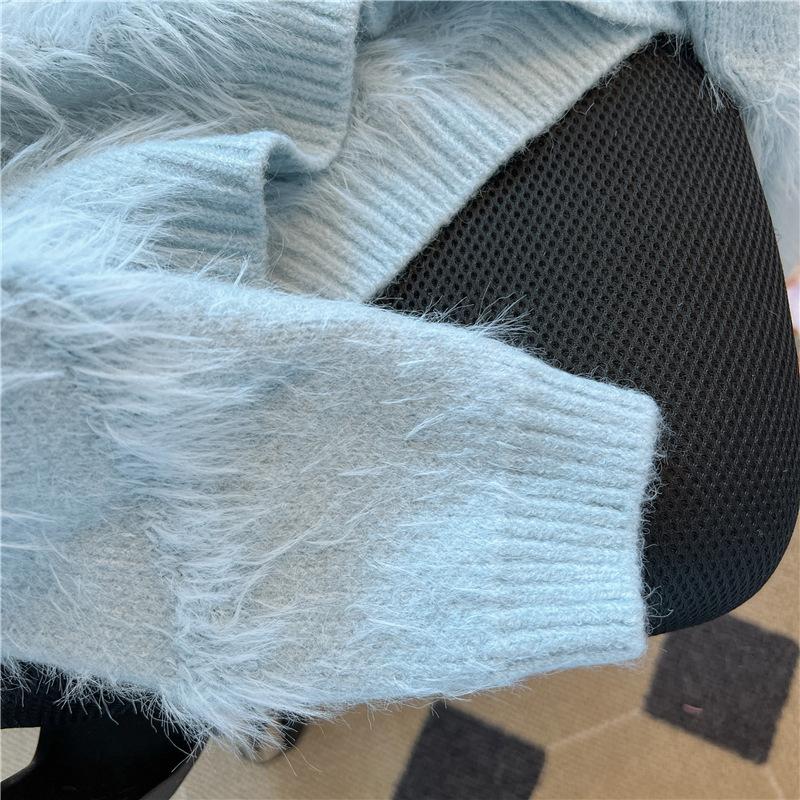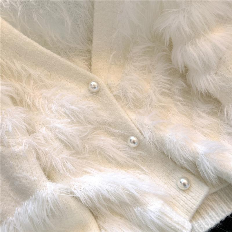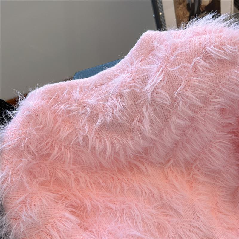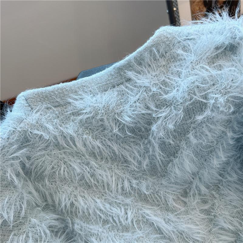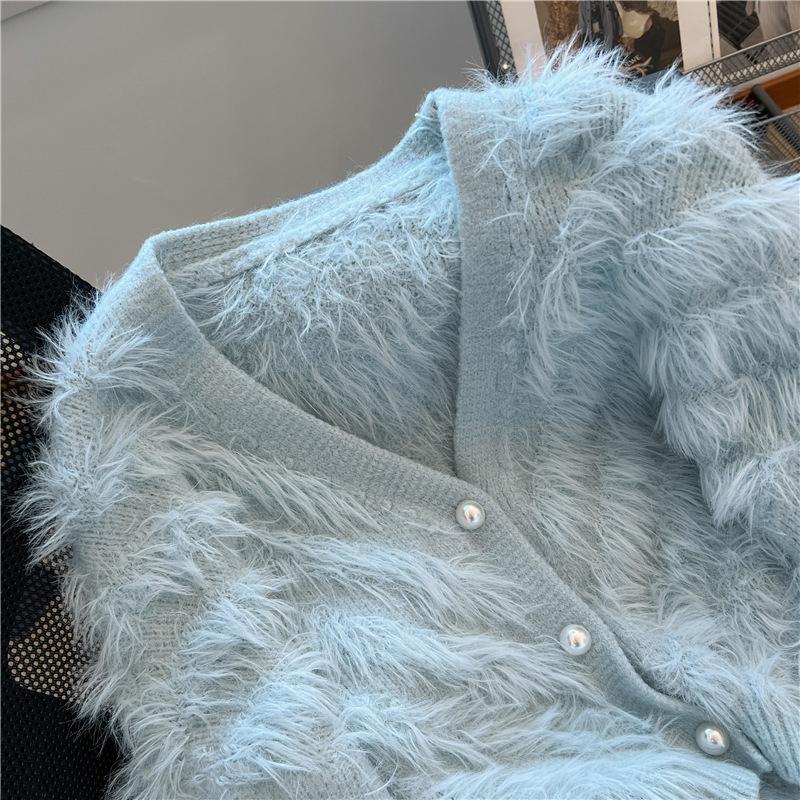 2023 otoño e invierno Nuevo cárdigan de punto suave glutinoso visón de terciopelo sintético de piel sintética corto cuello en V versátil suéter de estilo suave para mujer