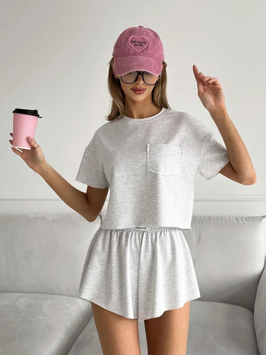 2025 Europeo y Americano Transfronterizo Verano Delgado Deportivo Cómodo Casual Dos piezas Manga Corta Holgado Shorts Traje Ropa para el Hogar
