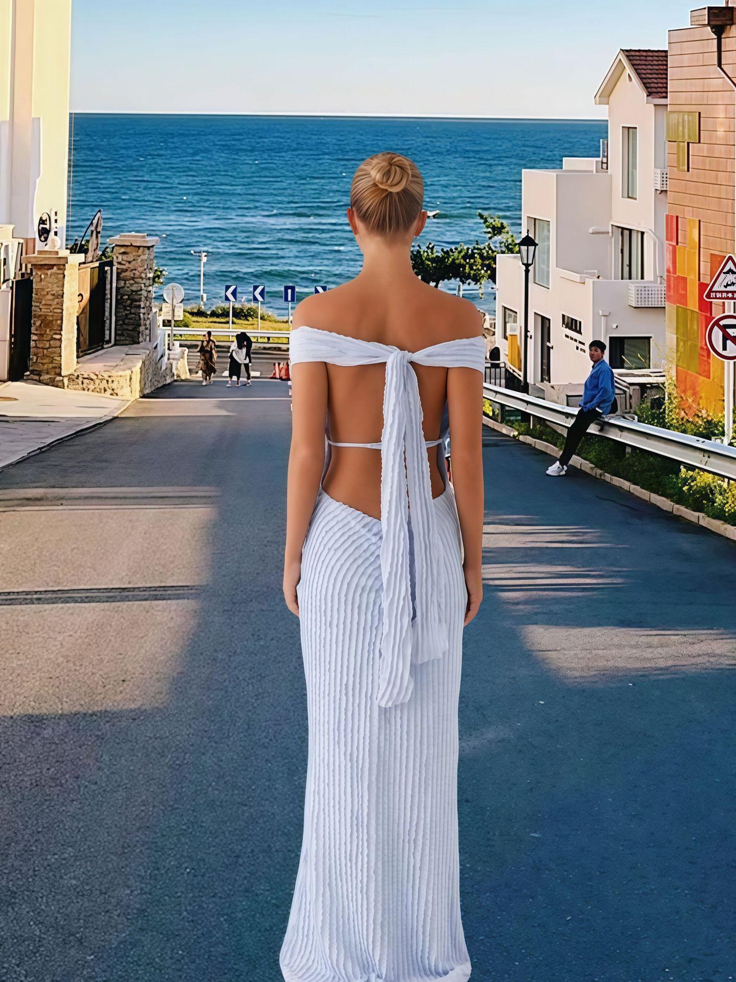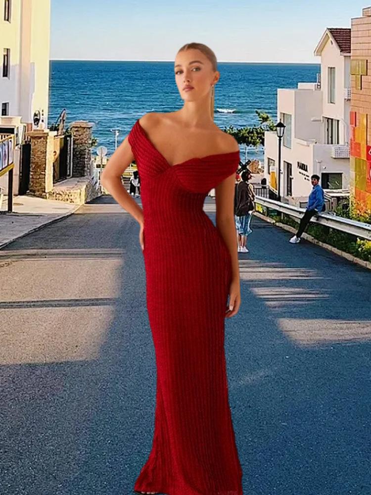 Amazon Comercio Exterior 2025 Moda Nuevo Sexy Sin Tirantes Espalda Descubierta Color Sólido Vestido Ajustado Vestido Largo para Mujer
