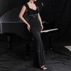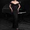 Primavera y Verano 2025 Nuevo Vestido de Noche Europeo y Americano de un Hombro con Encaje Empalmado, Corte Ajustado, Cadera, Vestido Largo