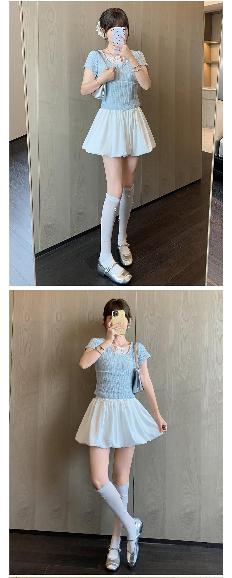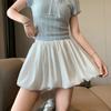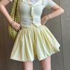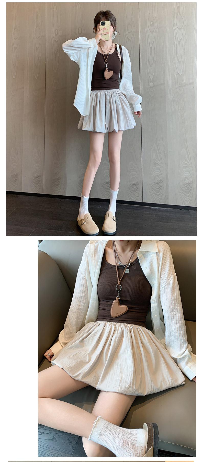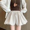 Falda Corta Floral Blanca para Mujer, Verano 2025 Nueva Cintura Alta Petite Anti-Exposición Línea A Linterna Abullonada Media Falda