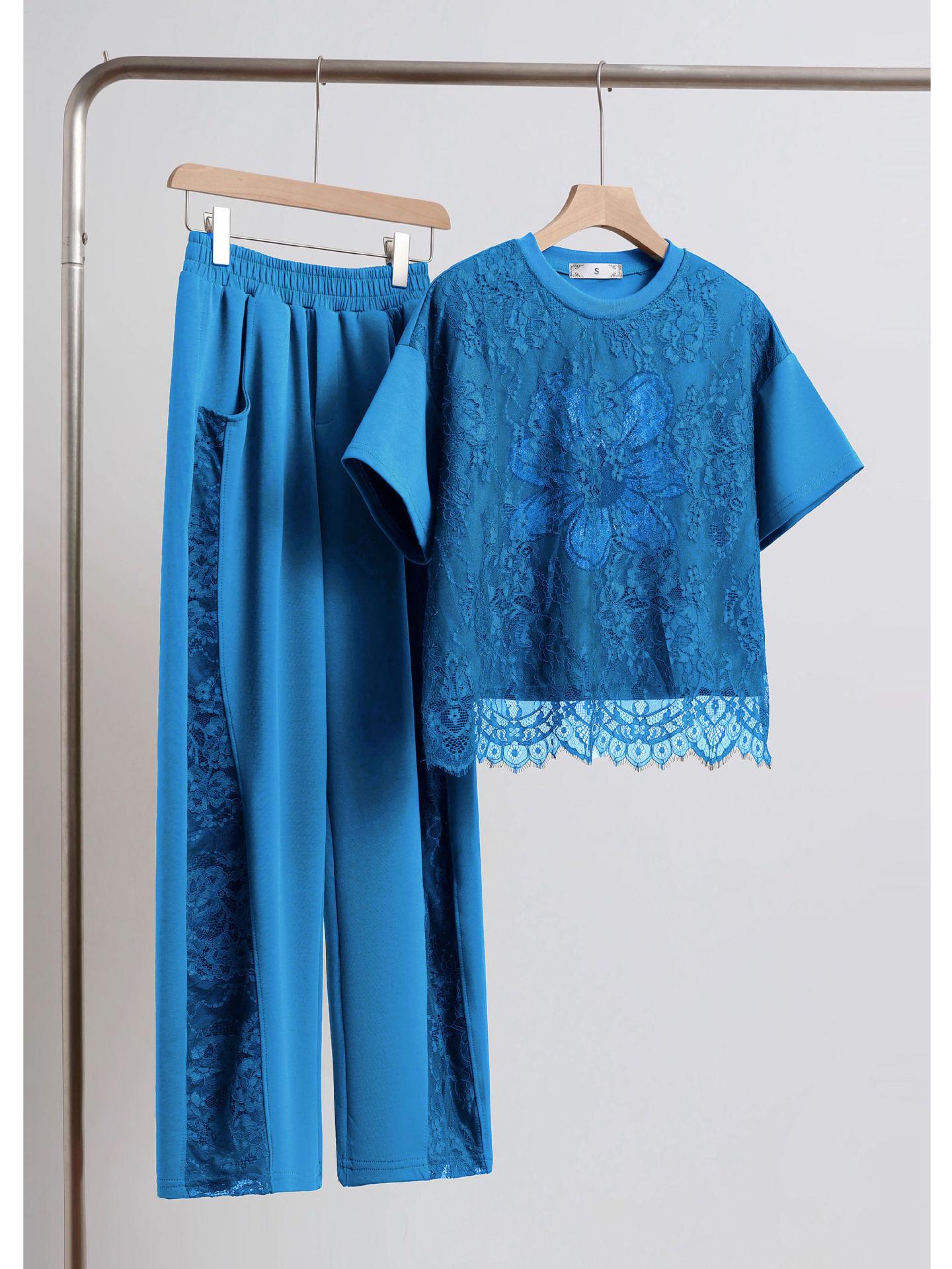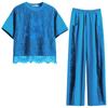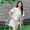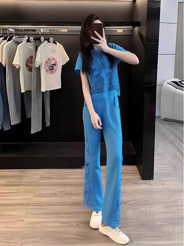 Traje Deportivo Europeo para Mujer Verano 2025 Nuevo Estilo de Moda Diseño que Reduce la Edad Encaje Manga Corta Conjunto de Dos Piezas
