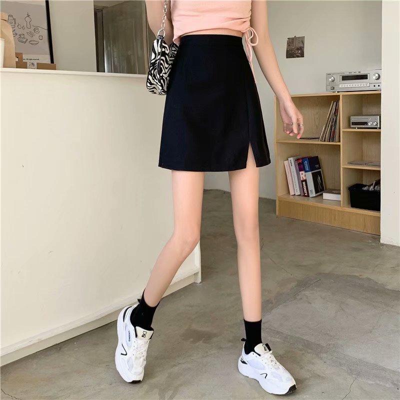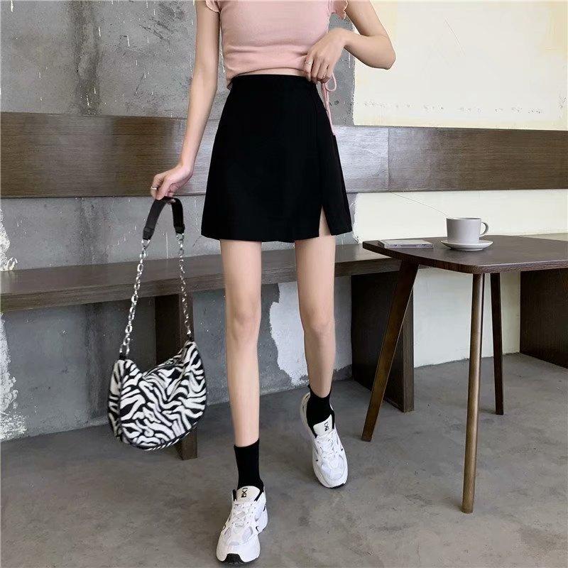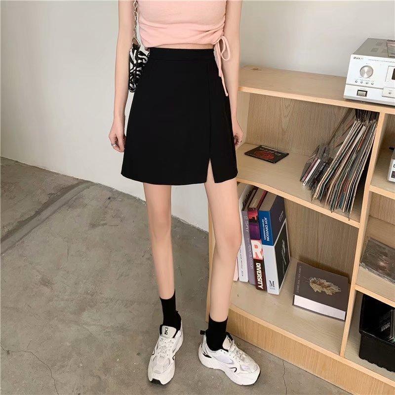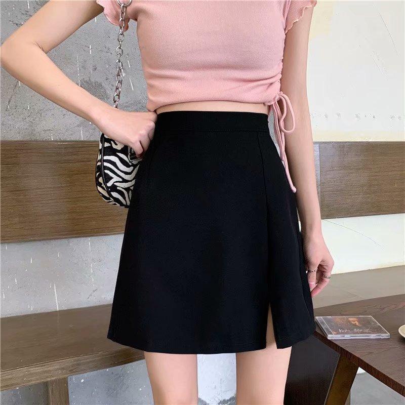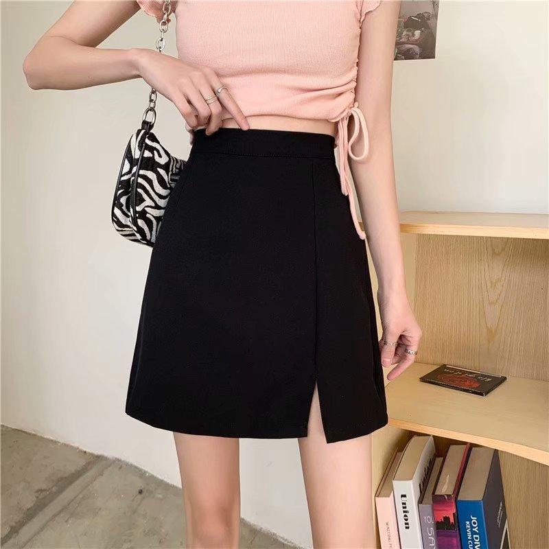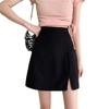 2025 Nueva Falda de Verano de Cintura Alta Corte A para Mujer Cubriendo el Tramo Primavera y Otoño Talla Grande Cubre Caderas Tela de Traje Falda Corta Negra