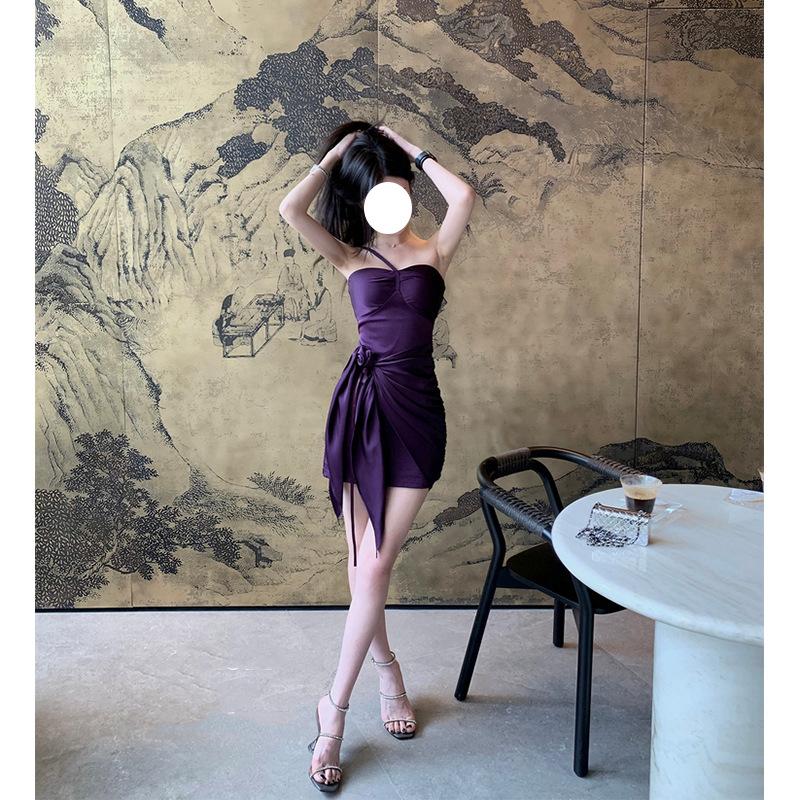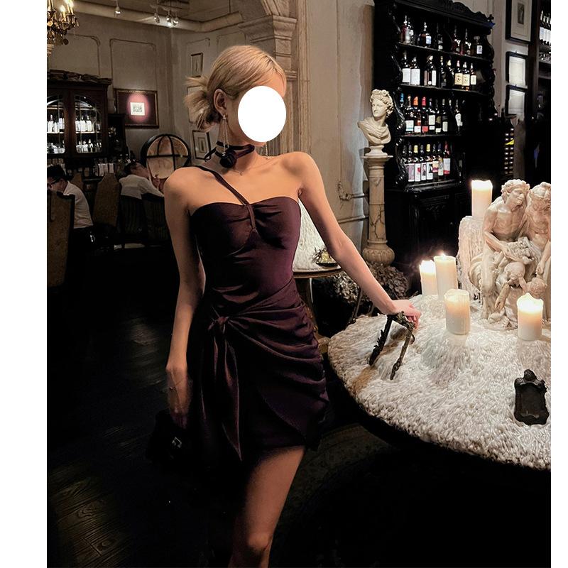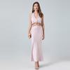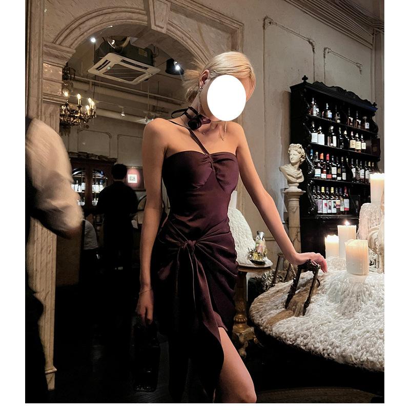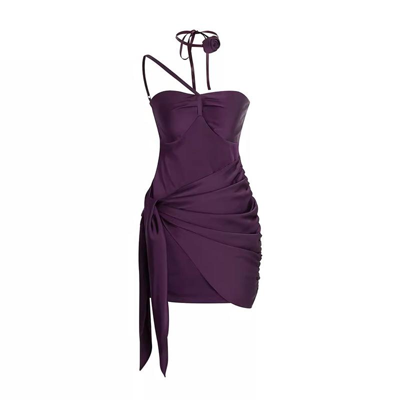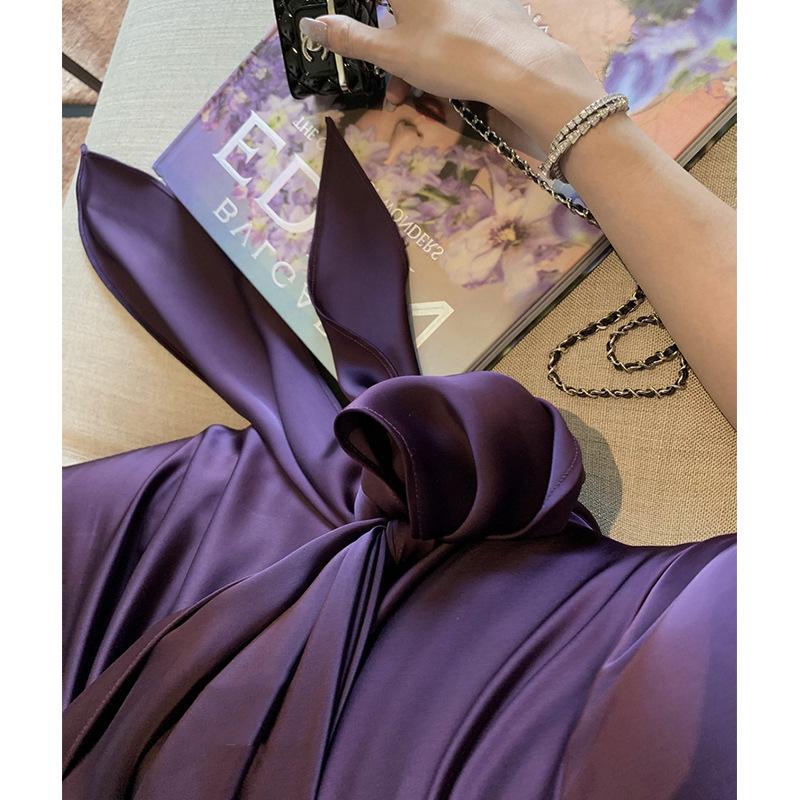 Vestido Sexy de Satén con Cuello Halter Floral Precioso de Faust, Vestido Elegante sin Tirantes, Vestido para Fiesta de Cumpleaños