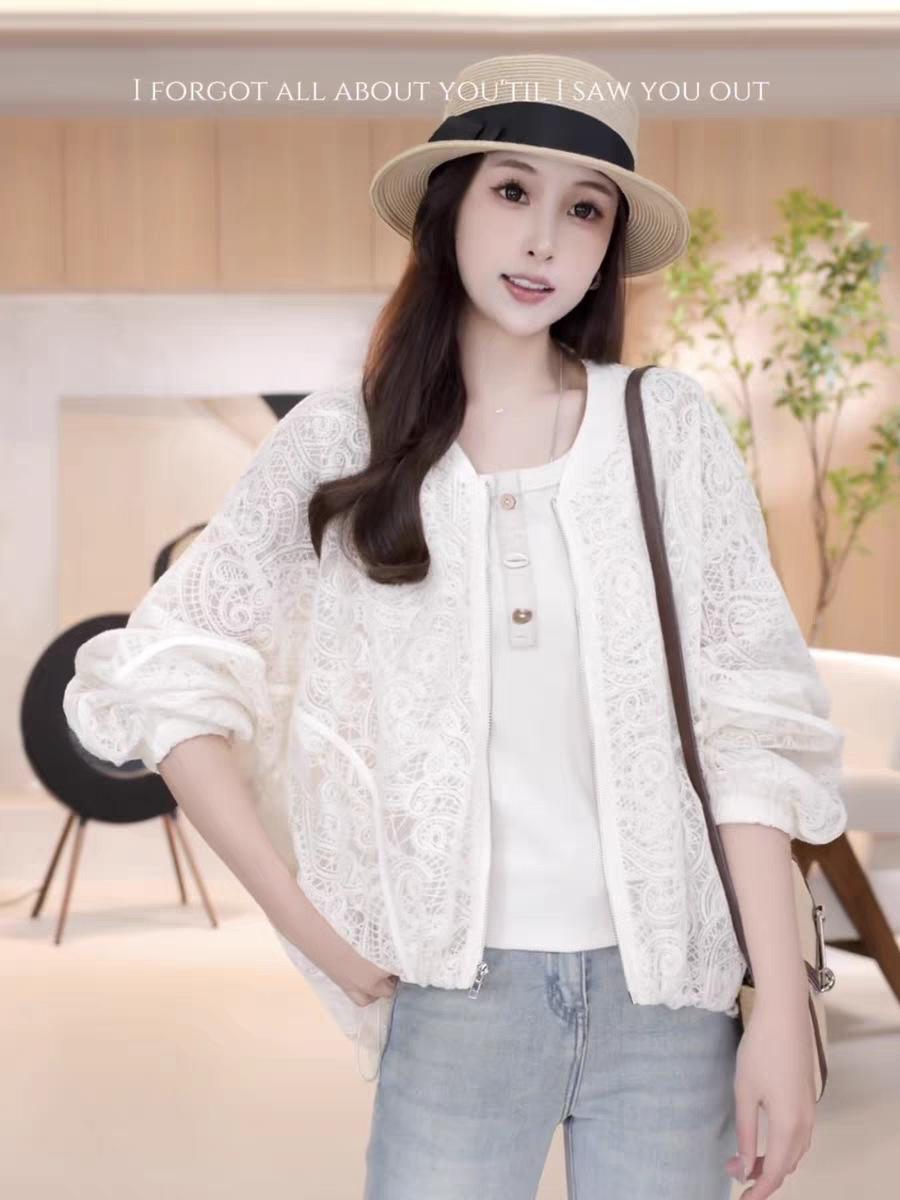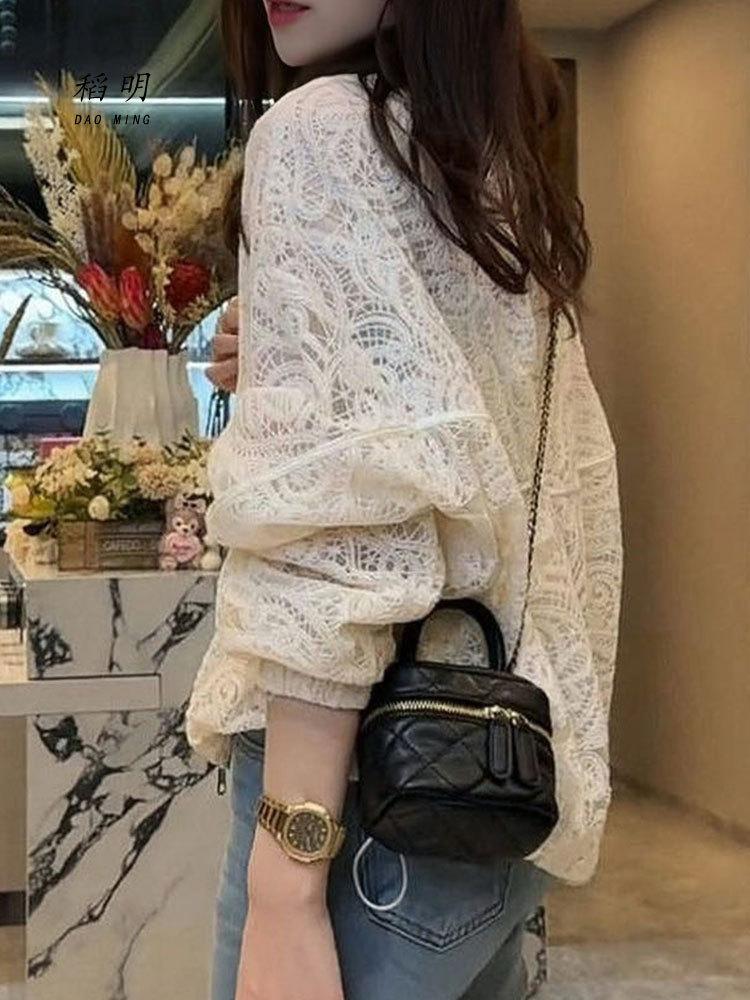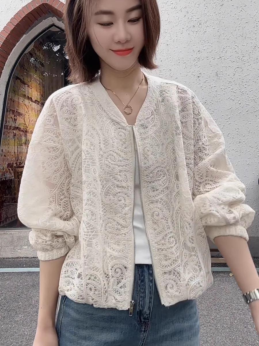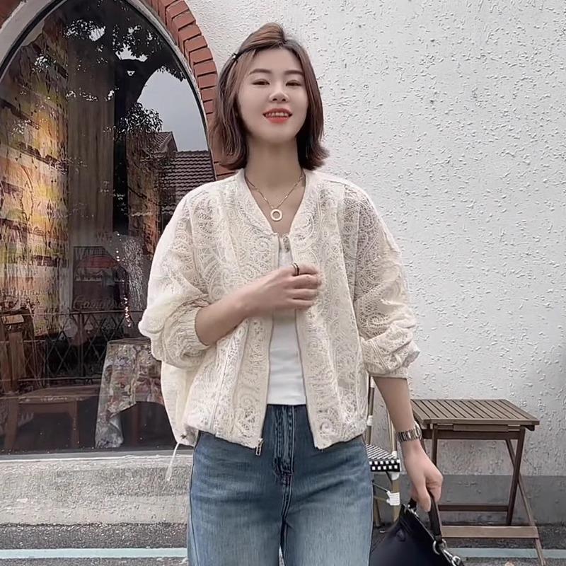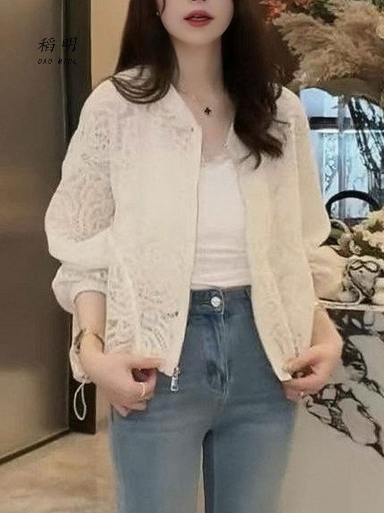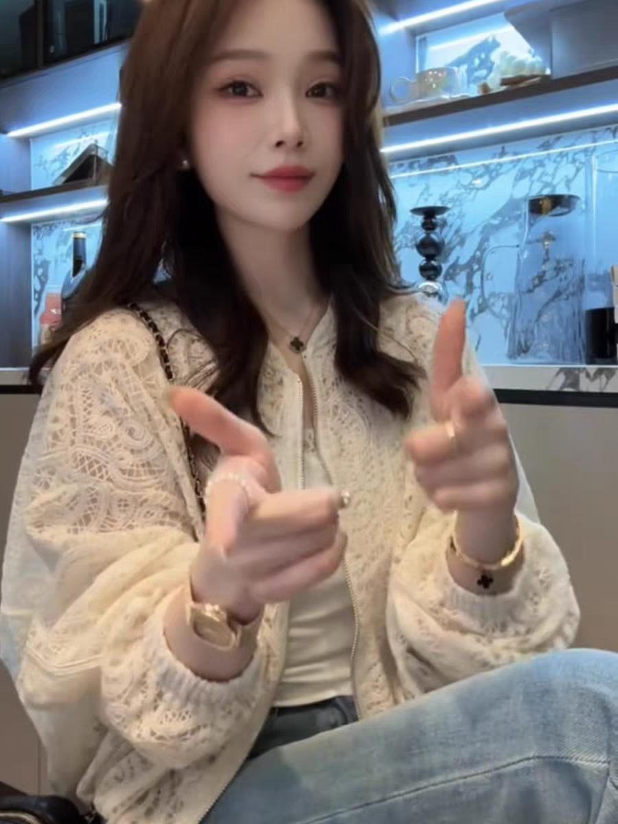 Diseño de Estilo Coreano Sentido Hueco Encaje Abrigo Corto para Mujer Primavera y Verano 2025 Delgado Estilo Occidental Protector Solar Manga Larga Top
