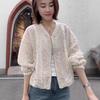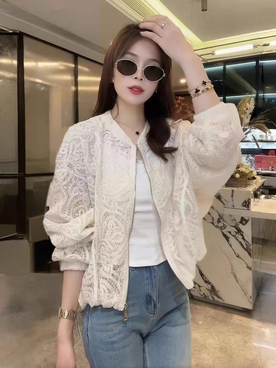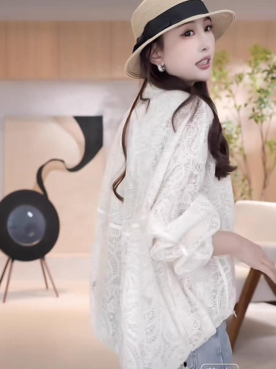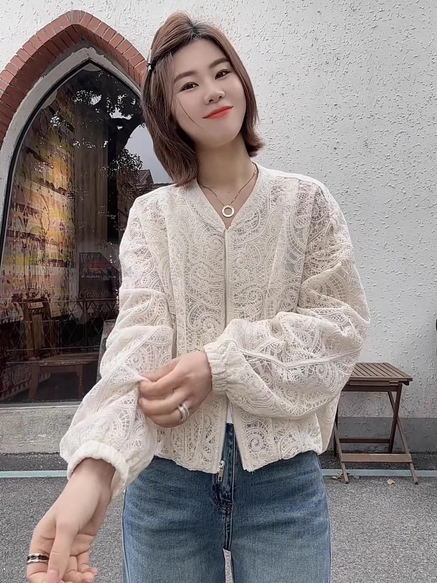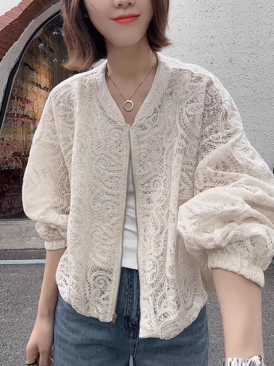 Diseño de Estilo Coreano Sentido Hueco Encaje Abrigo Corto para Mujer Primavera y Verano 2025 Delgado Estilo Occidental Protector Solar Manga Larga Top