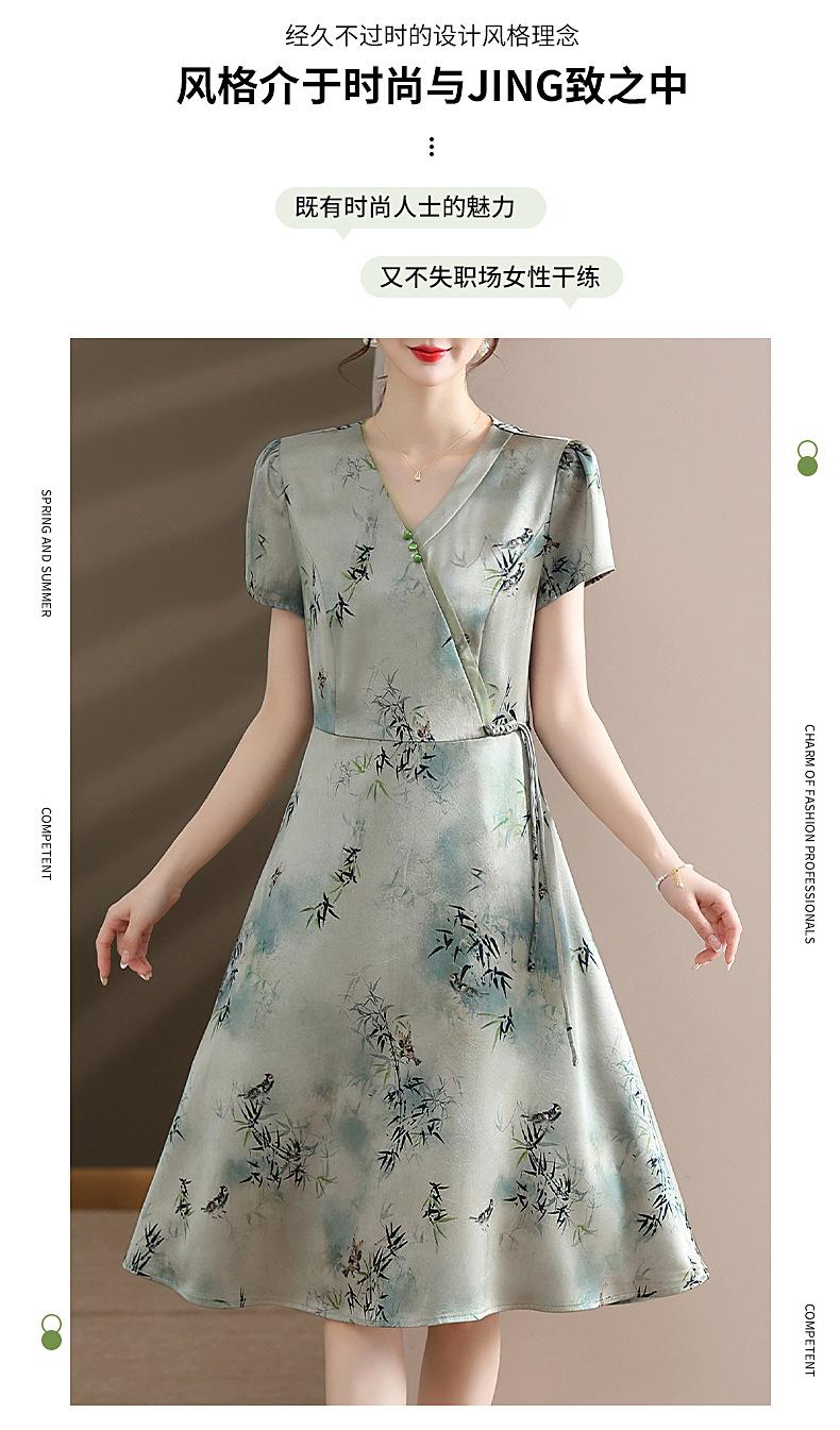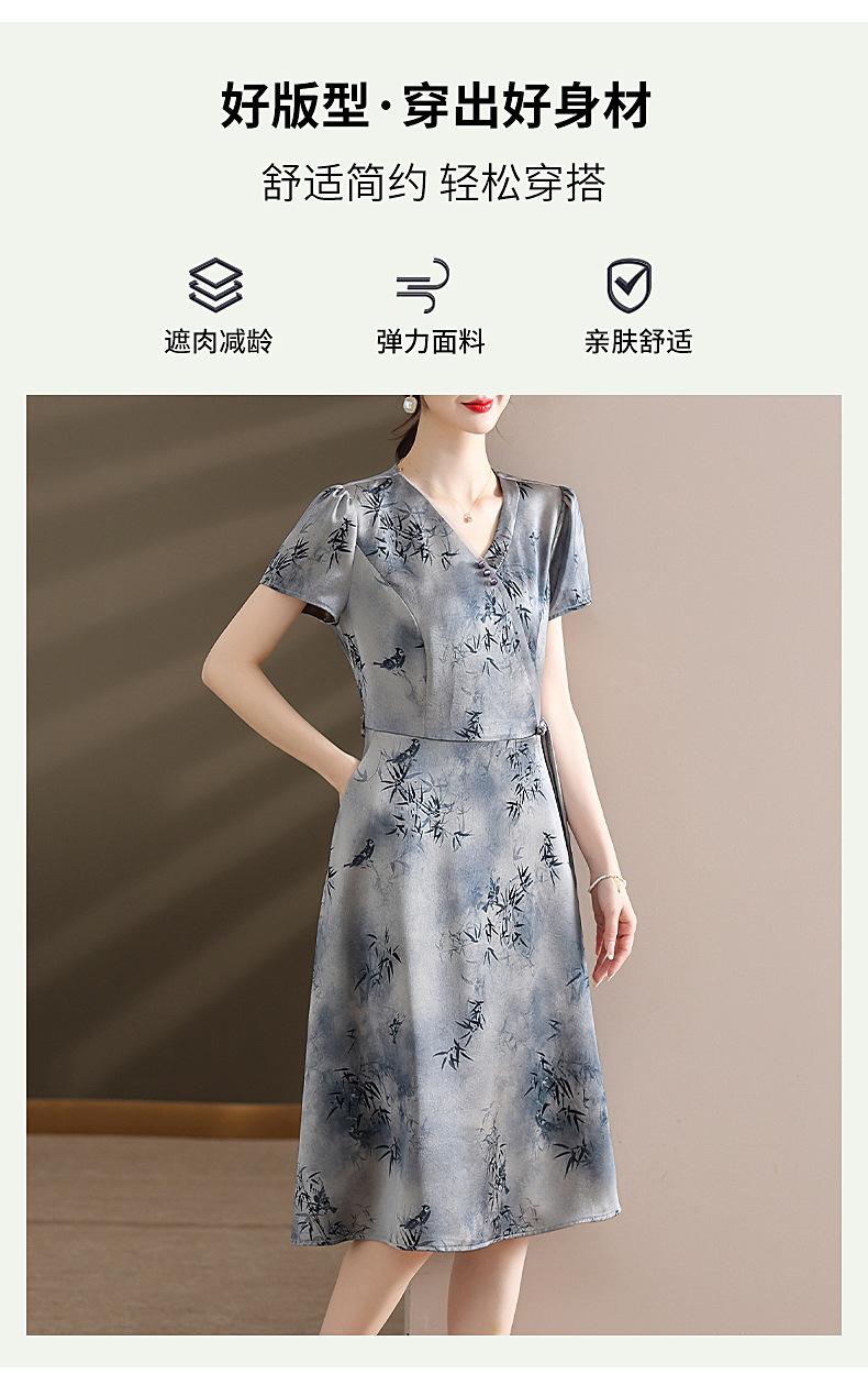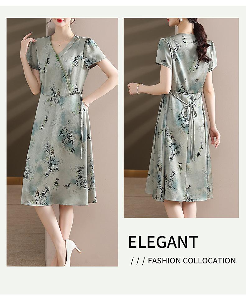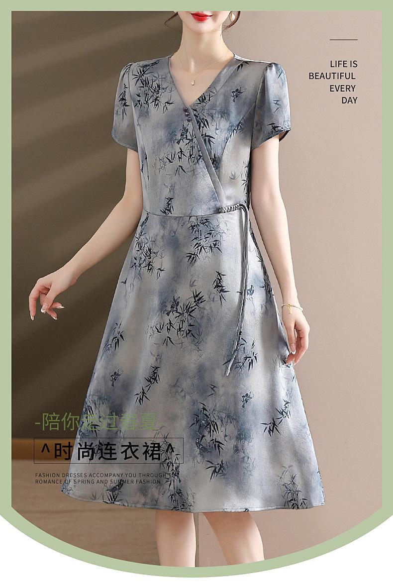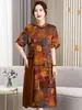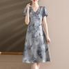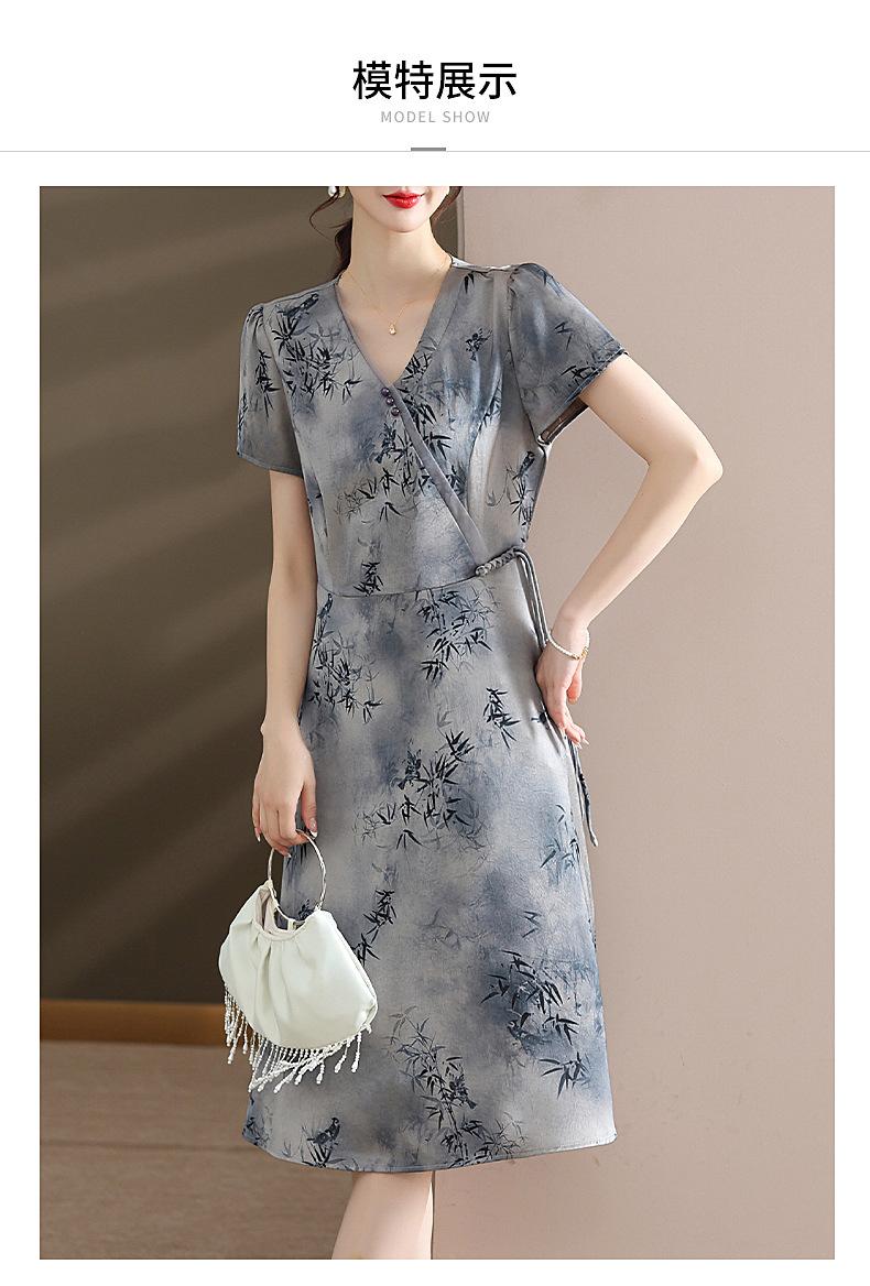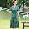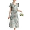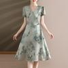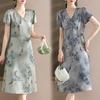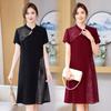 2025 vestido de verano de gasa de manga corta para madre temperamento mejorado falda cheongsam mujeres de mediana edad verano lazo en la cintura