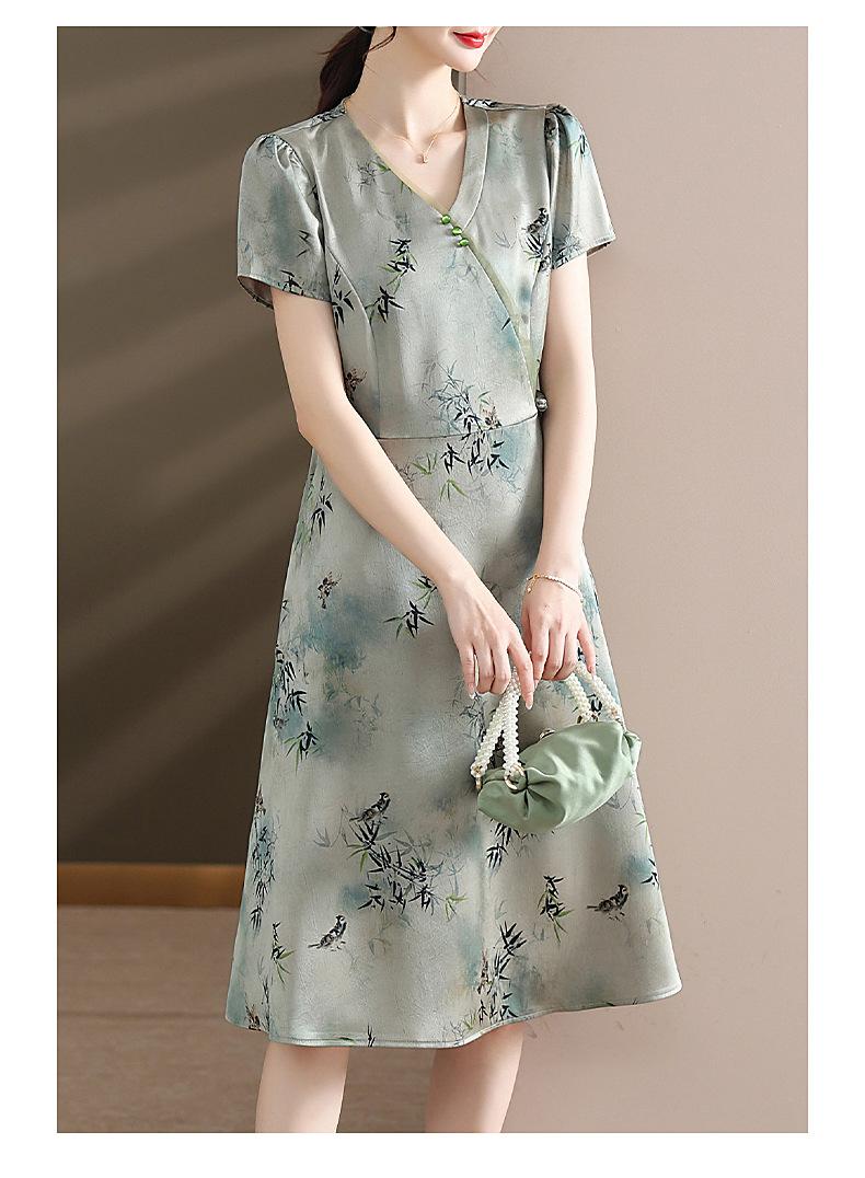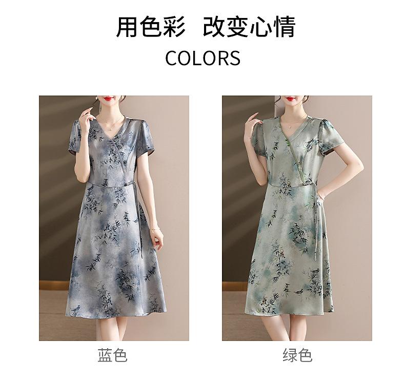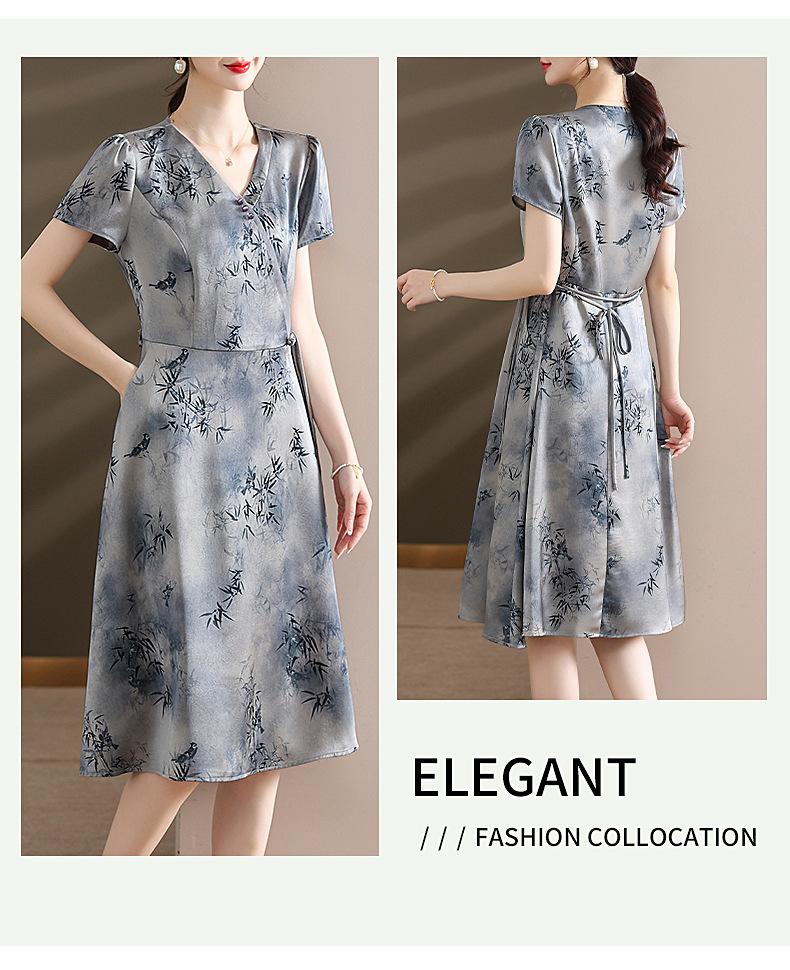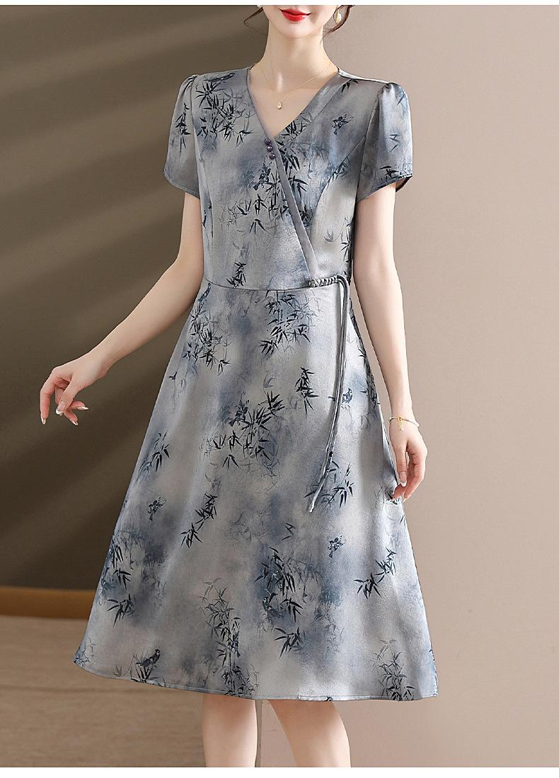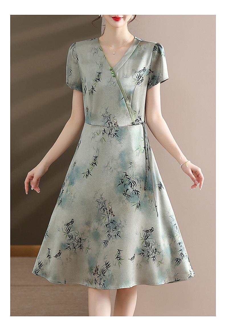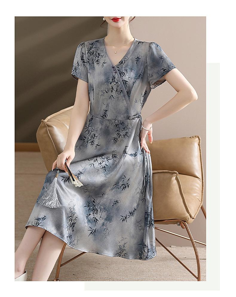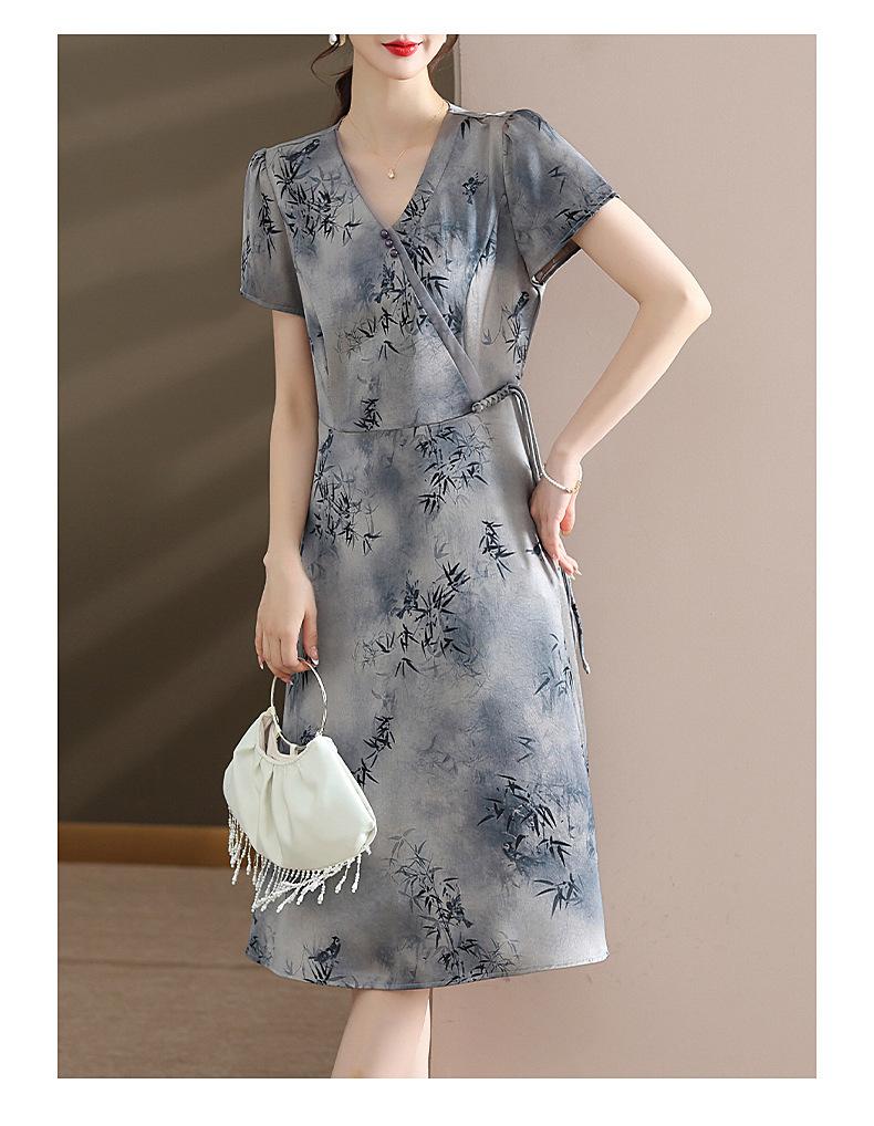 2025 vestido de verano de gasa de manga corta para madre temperamento mejorado falda cheongsam mujeres de mediana edad verano lazo en la cintura