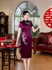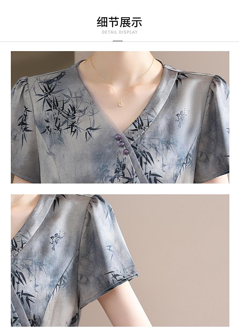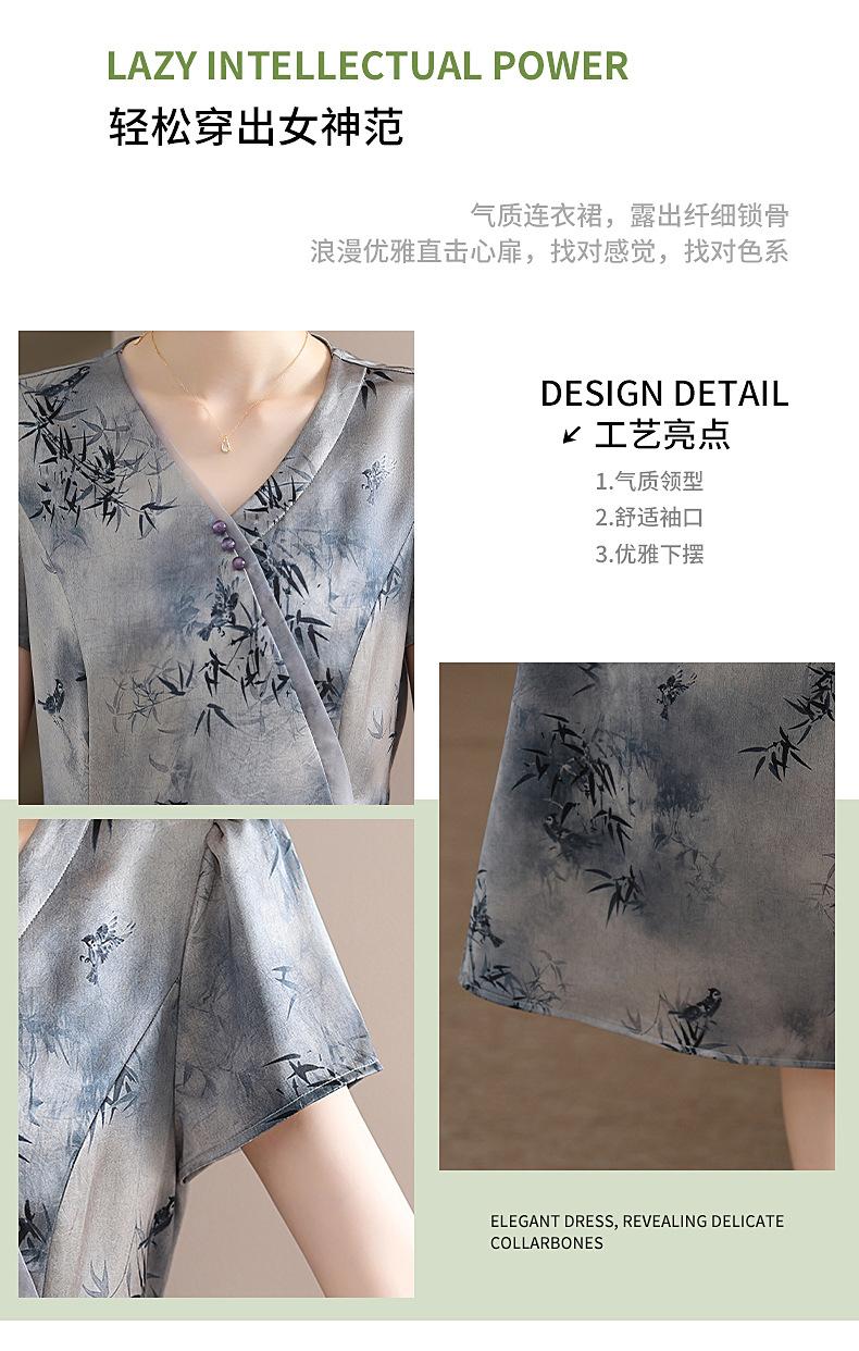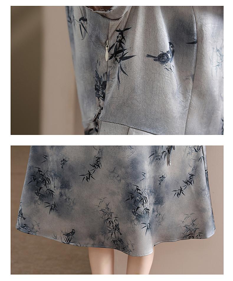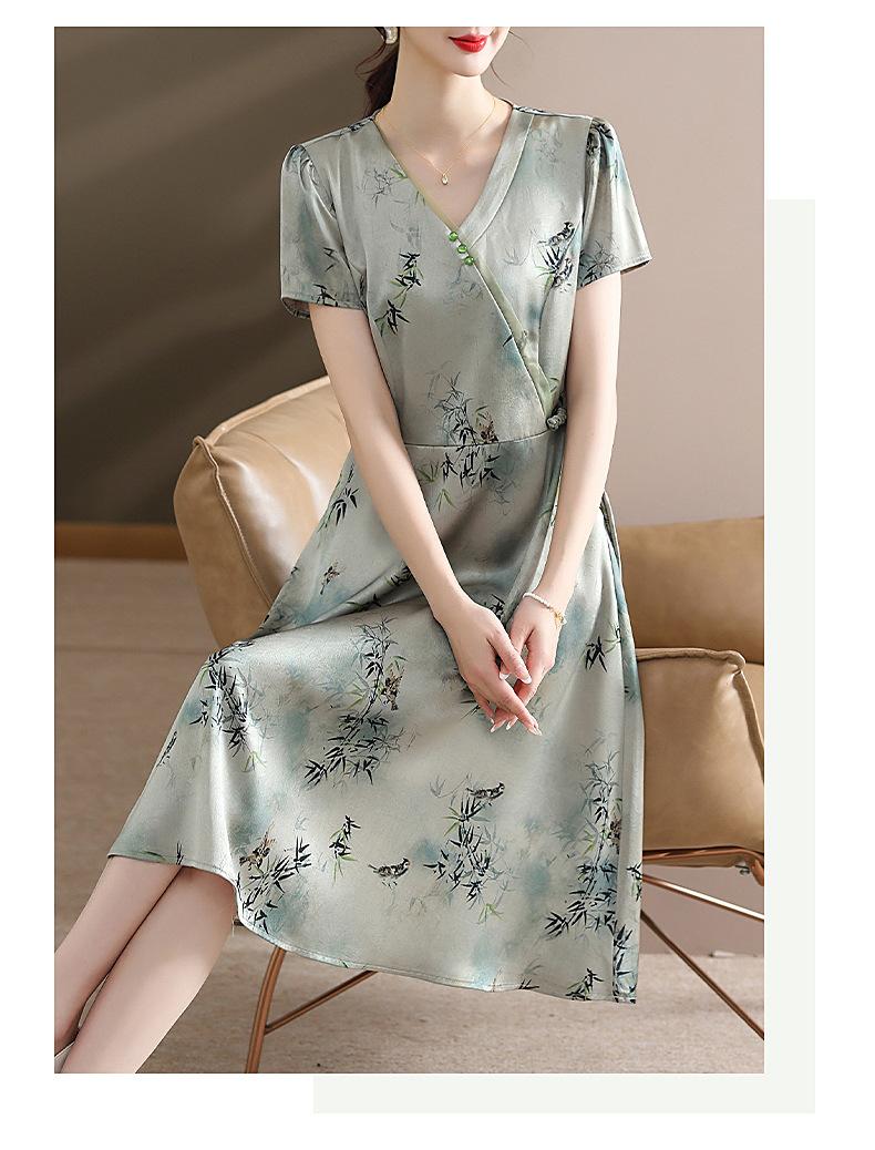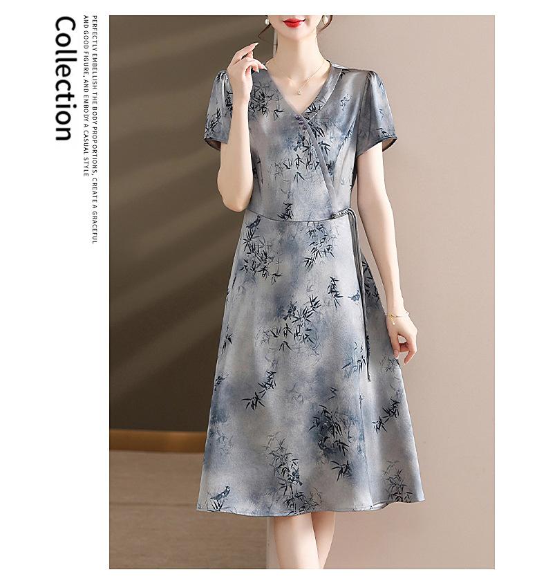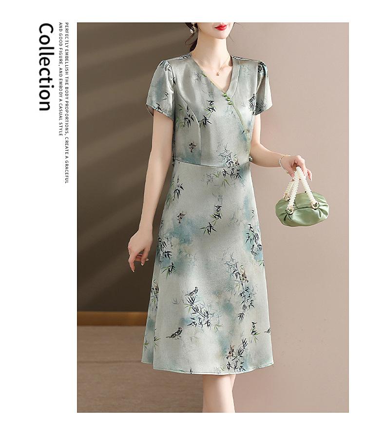 2025 vestido de verano de gasa de manga corta para madre temperamento mejorado falda cheongsam mujeres de mediana edad verano lazo en la cintura