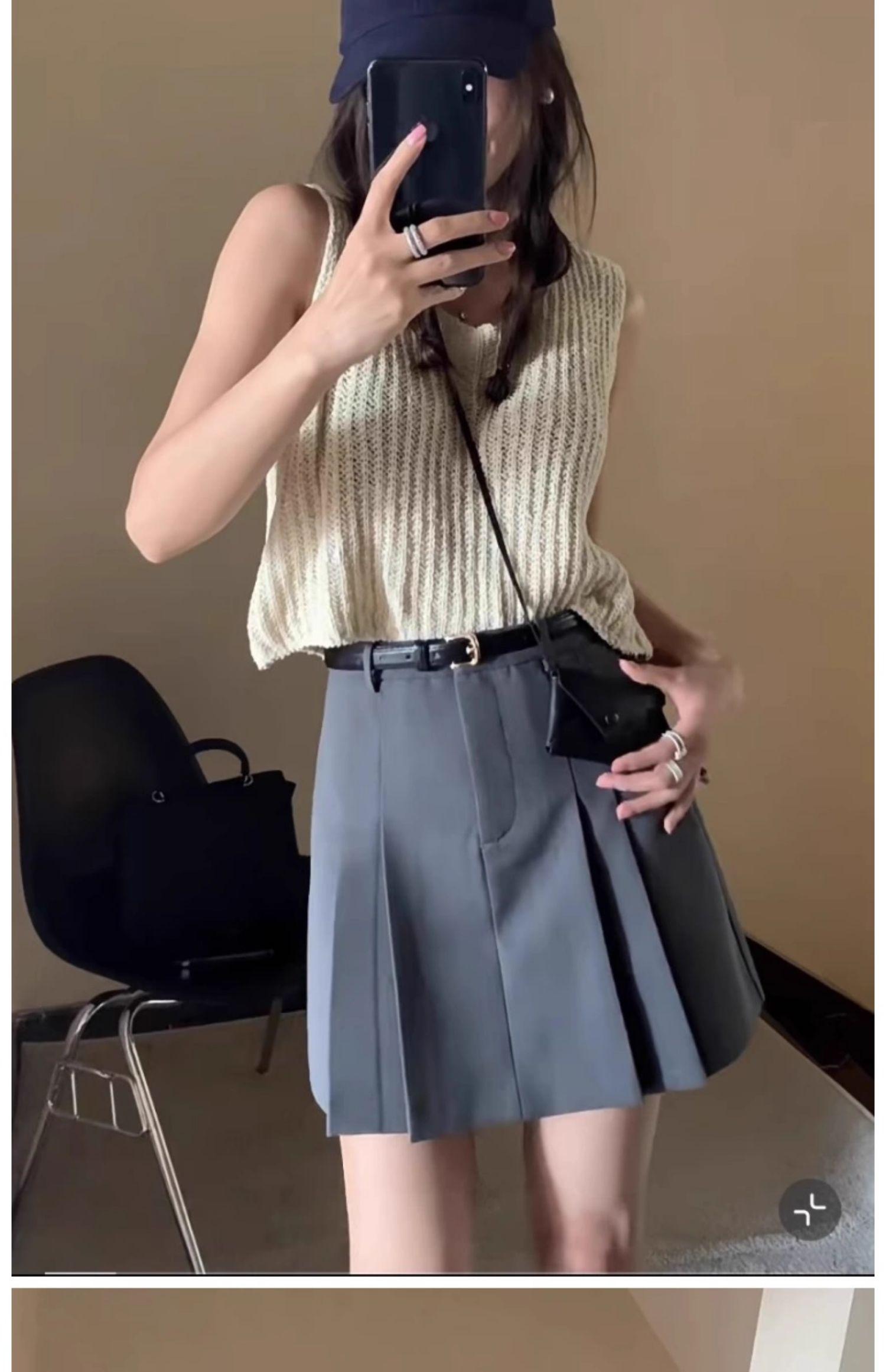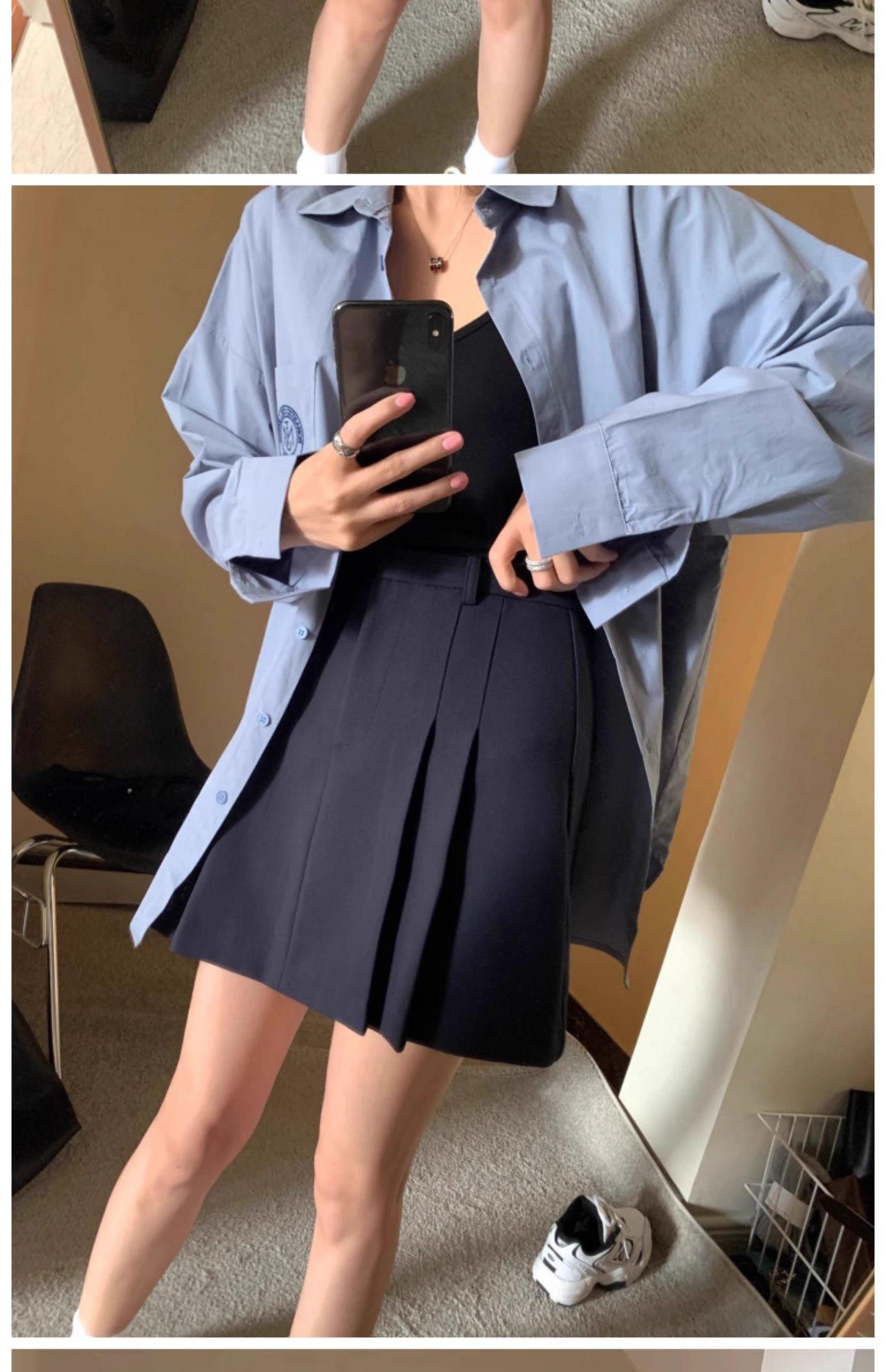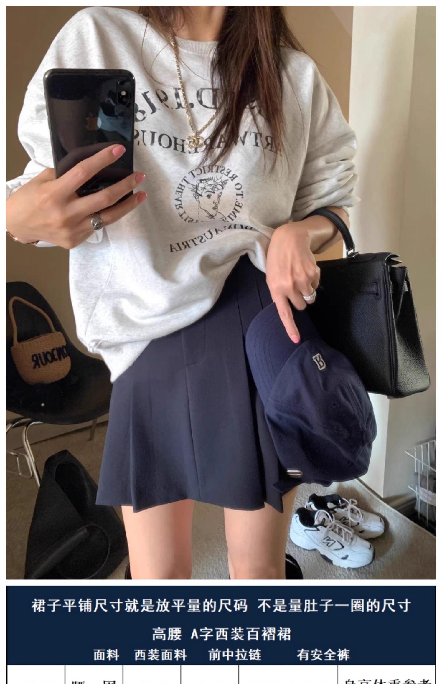 Falda Estilo Universitario Talla Grande Falda Corta para Mujer 2025 Primavera y Verano Nuevo Gordo mm Cintura Alta Look Adelgazante Falda Línea A Plisada