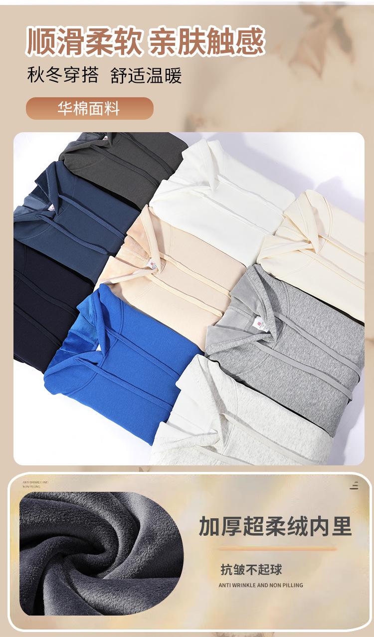 Sudadera con capucha gruesa de terciopelo nueva para otoño e invierno 2024, holgada, de color puro, algodón chino, algodón compuesto, manga larga para hombre y mujer