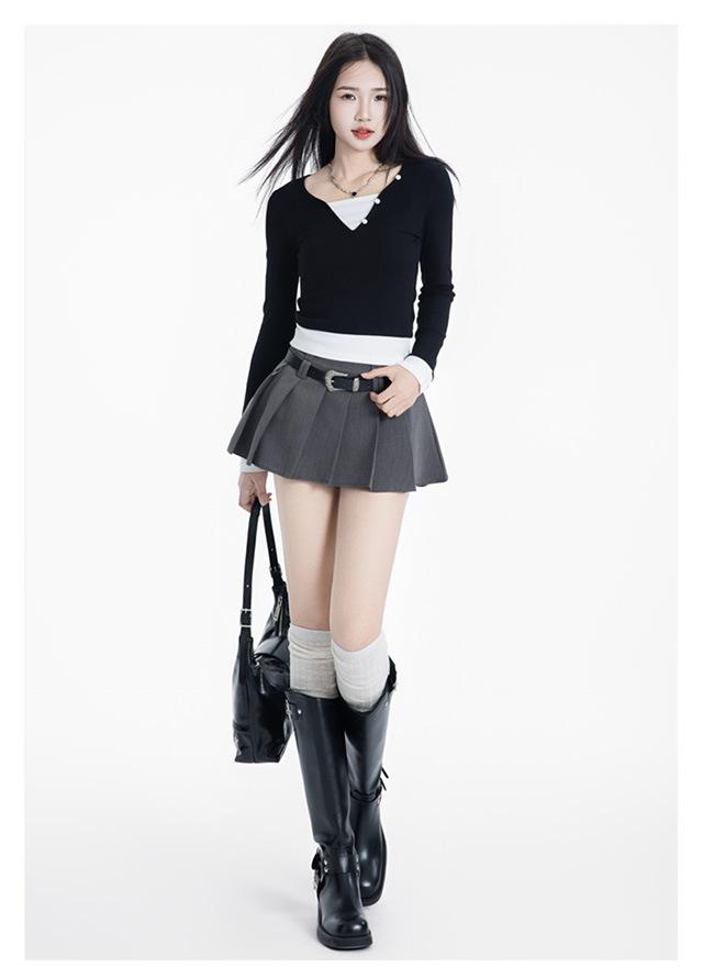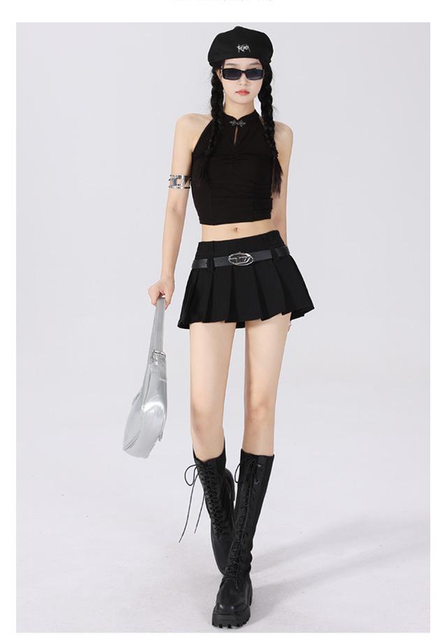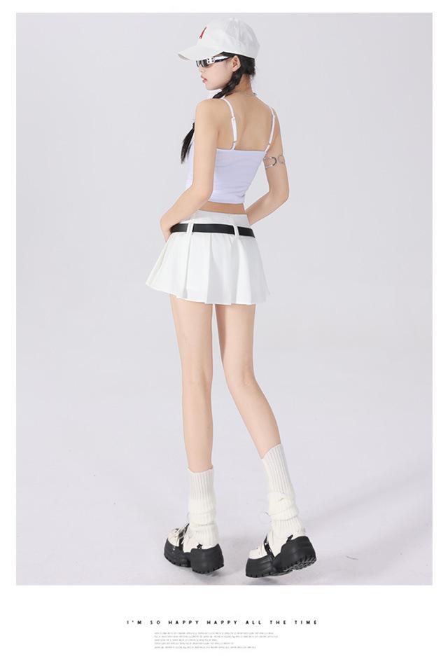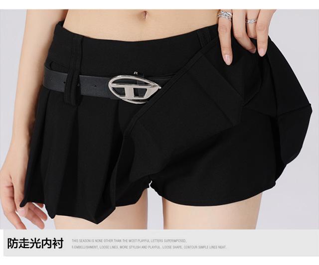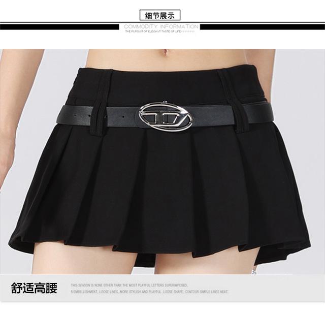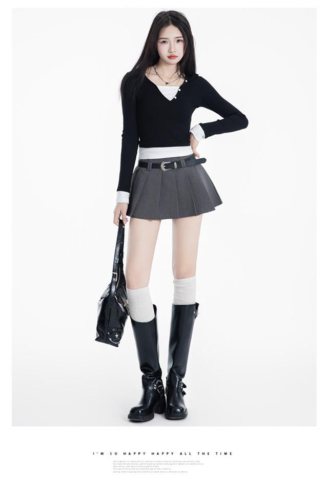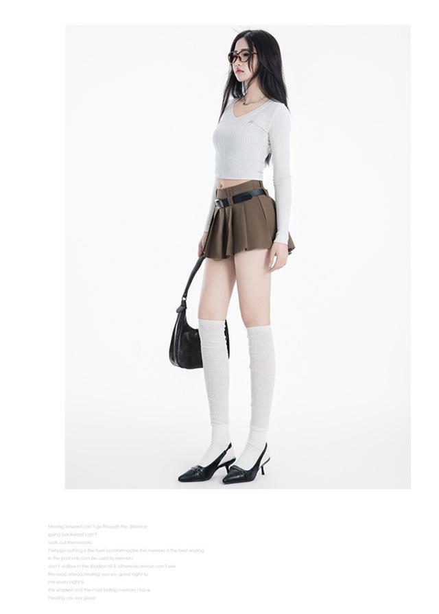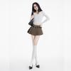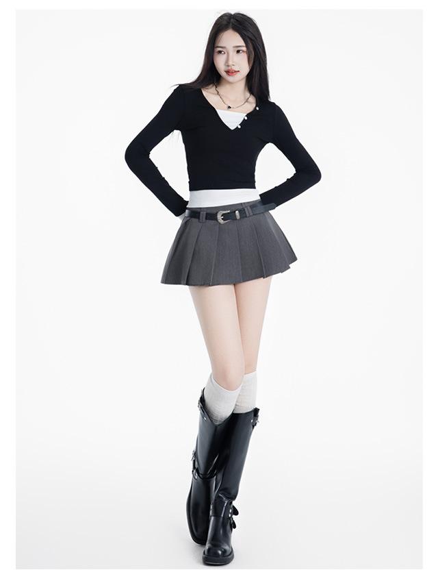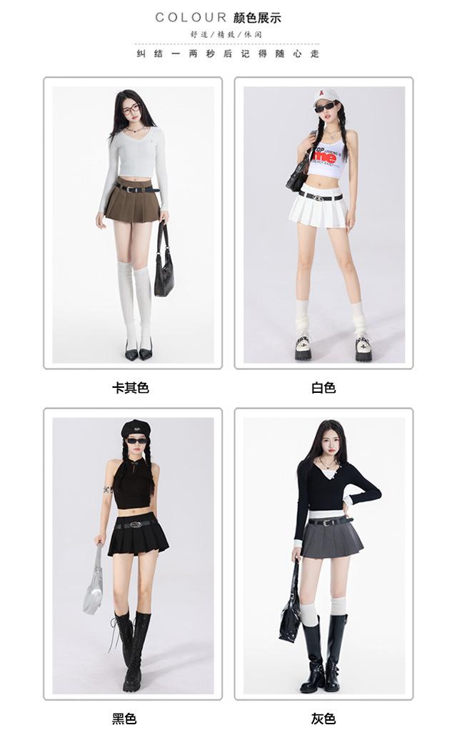 (Con cinturón forrado) Falda plisada adelgazante de cintura alta para chica caliente estilo americano, versátil, casual, línea A, falda corta marrón gris