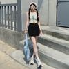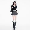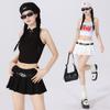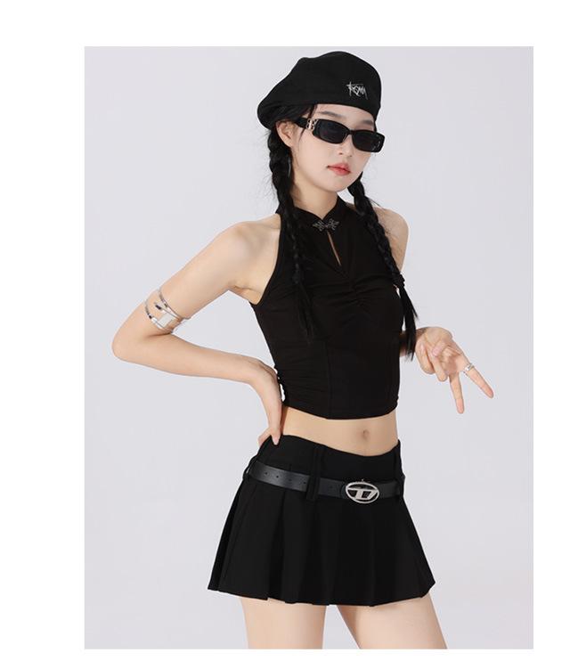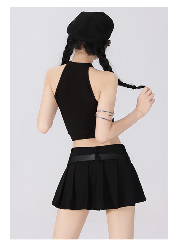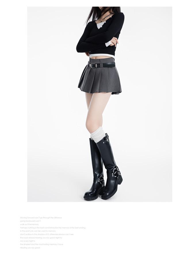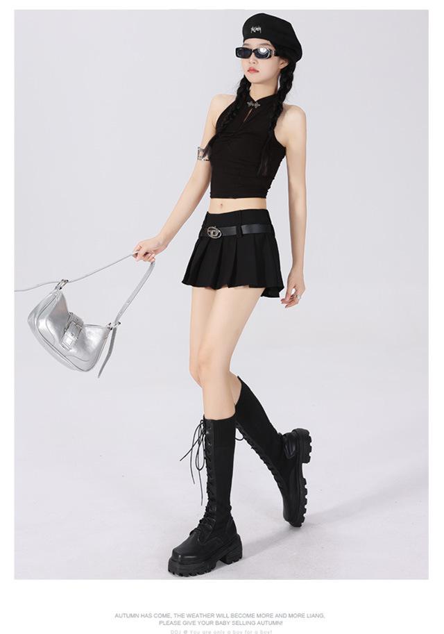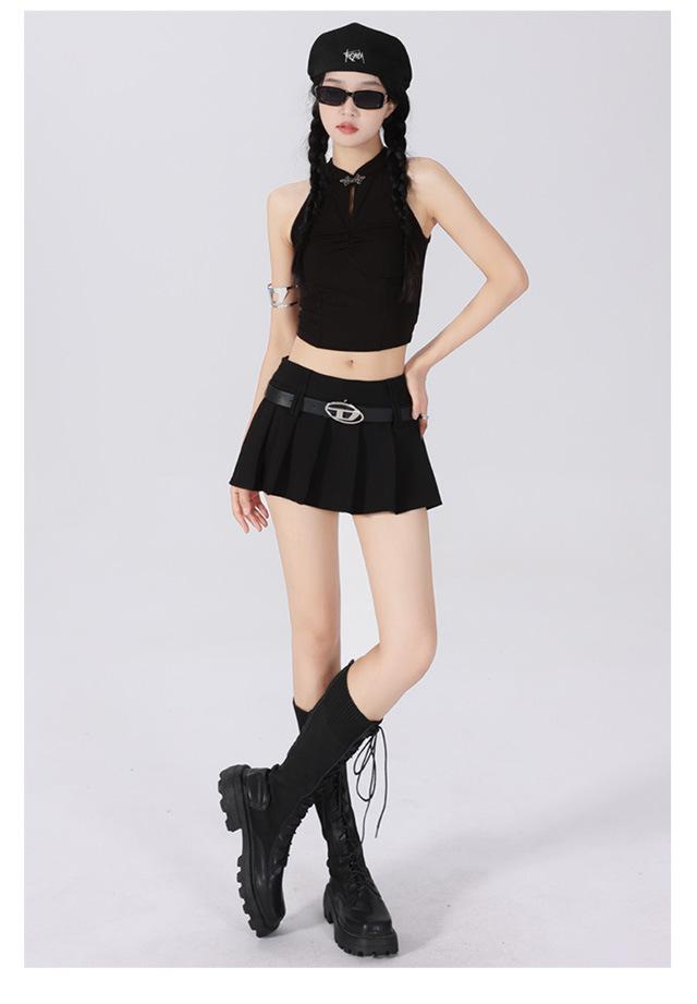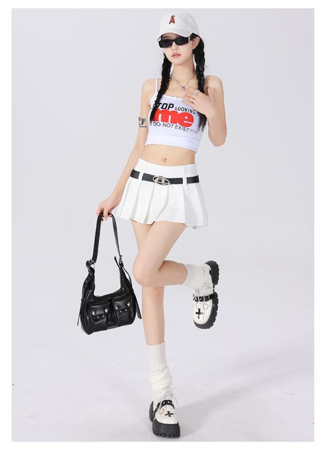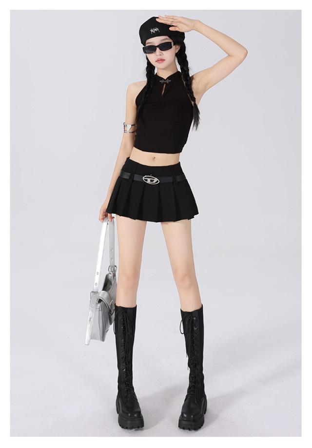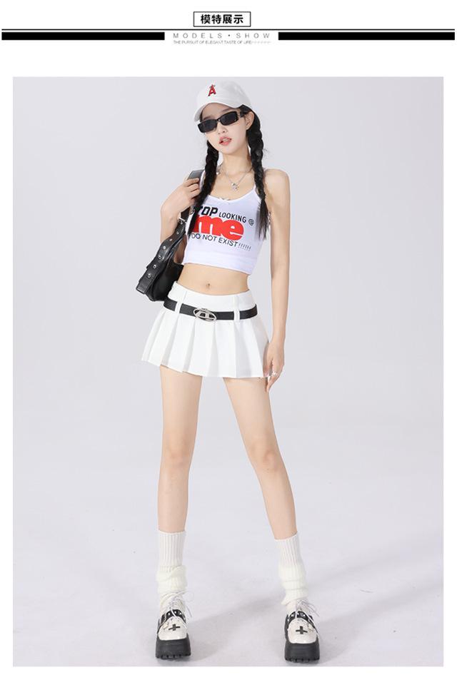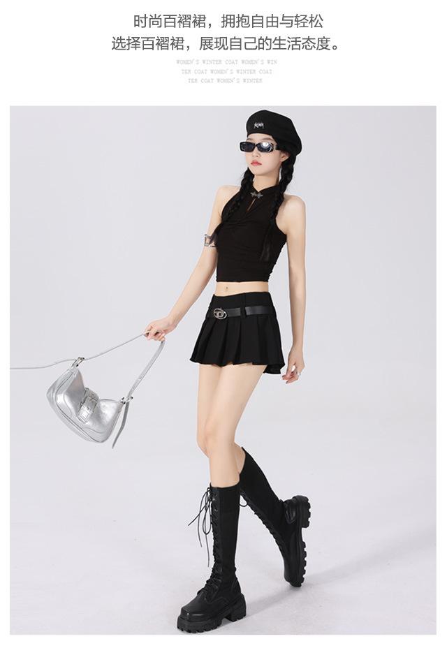 (Con cinturón forrado) Falda plisada adelgazante de cintura alta para chica caliente estilo americano, versátil, casual, línea A, falda corta marrón gris