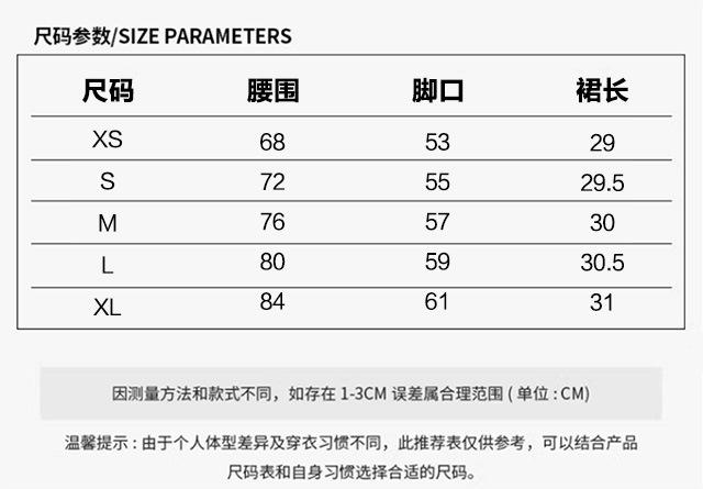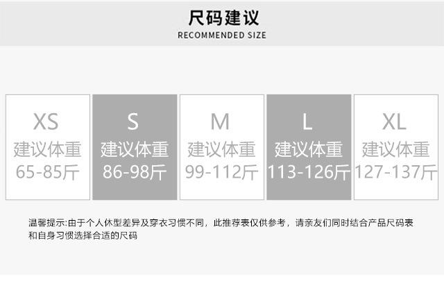 XS, S, M, L, XL