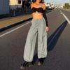Pantalones Cargo para Mujer 2024 Verano Nuevo Pantalones Paracaídas Americanos Cintura Alta Pierna Ancha Casual Pantalones Deportivos con Puño Modernos