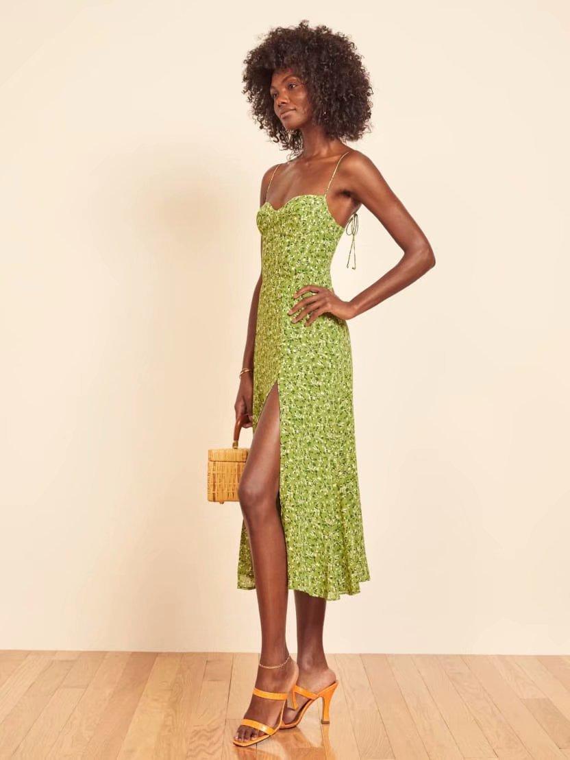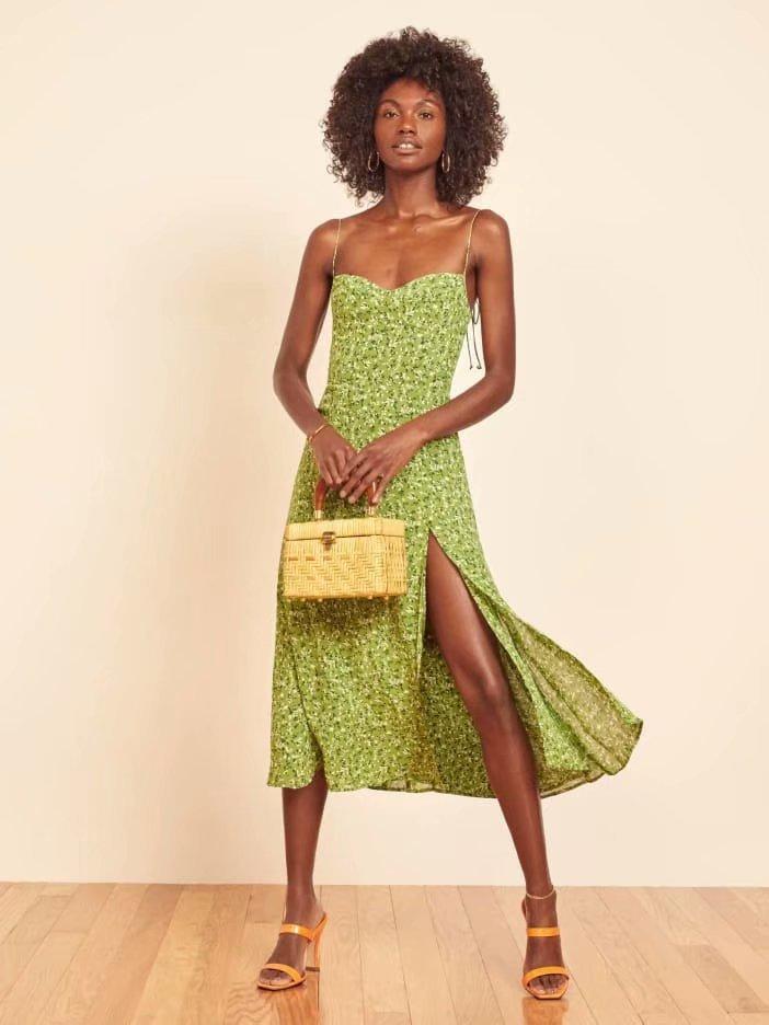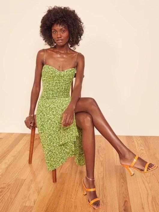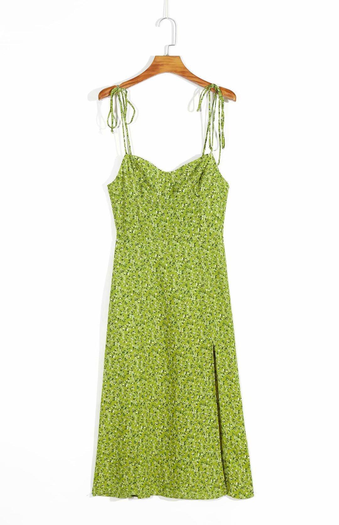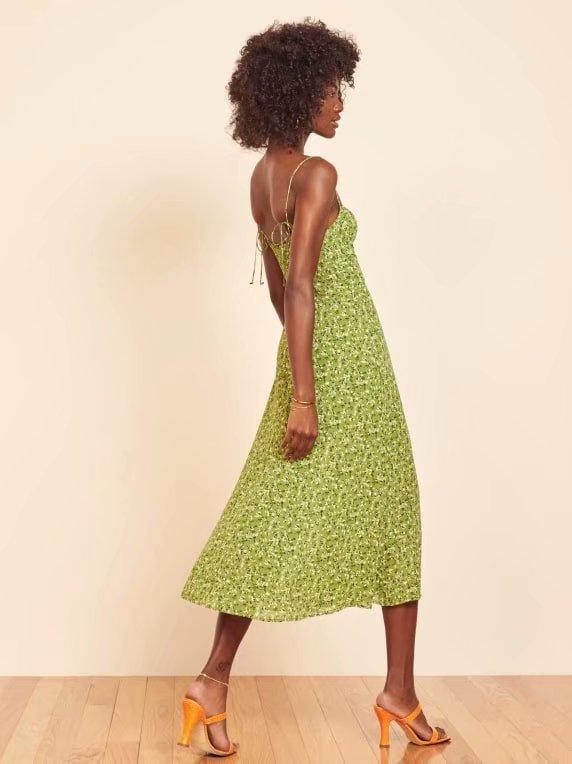Verano 2023 Estilo Europeo y Americano Moda Nicho Francesa Cintura Alta Corte Slim Adelgazante Estampado Commuter Elegante Vestido con Tirantes