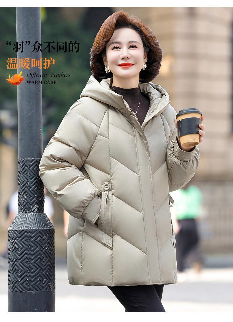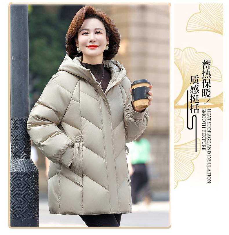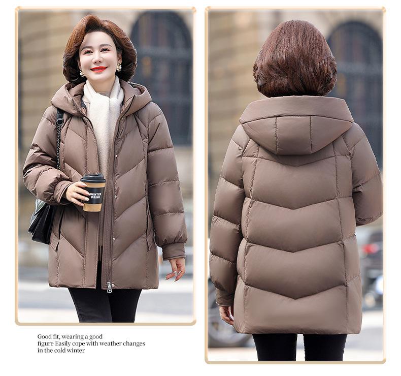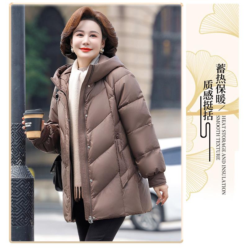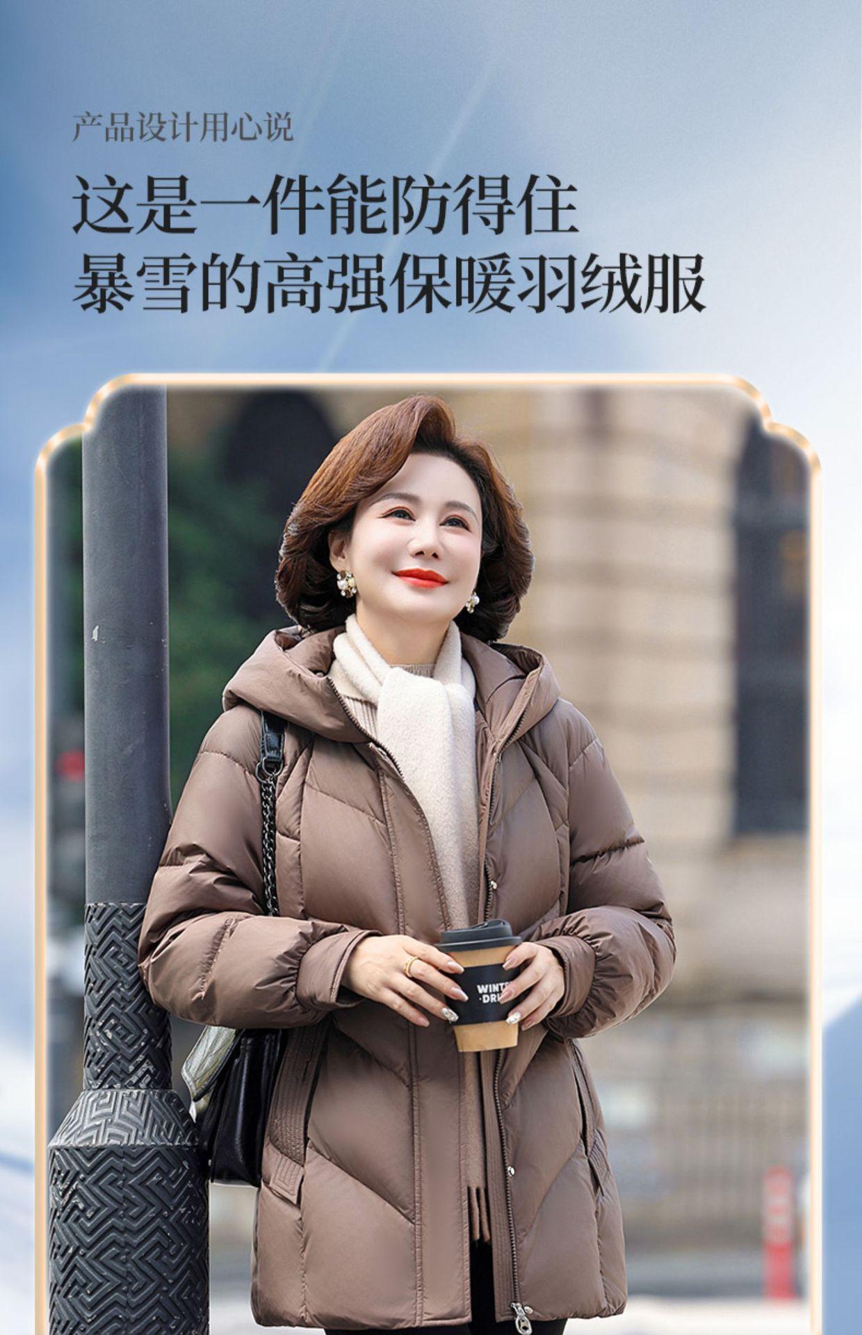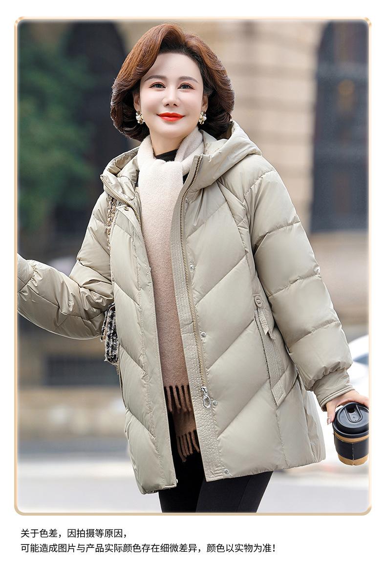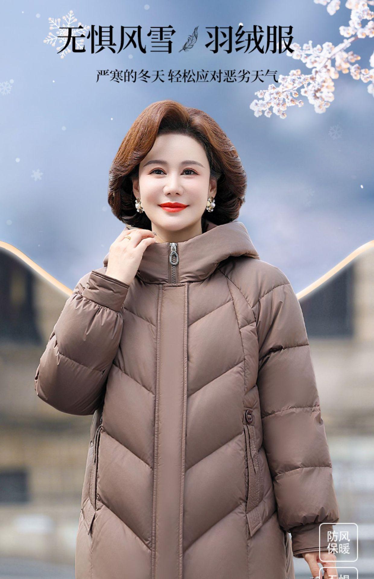 Chaqueta de plumón para mujeres de mediana edad y mayores Snow Flying Invierno 2025 Nuevo con capucha Largo medio Plumón de pato Mamá Otoño e Invierno