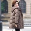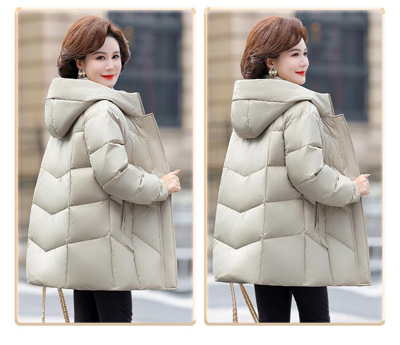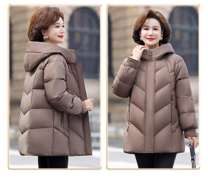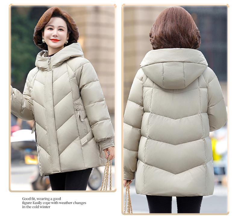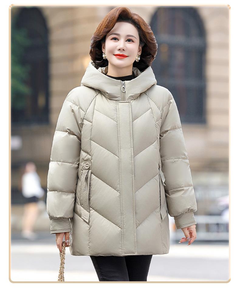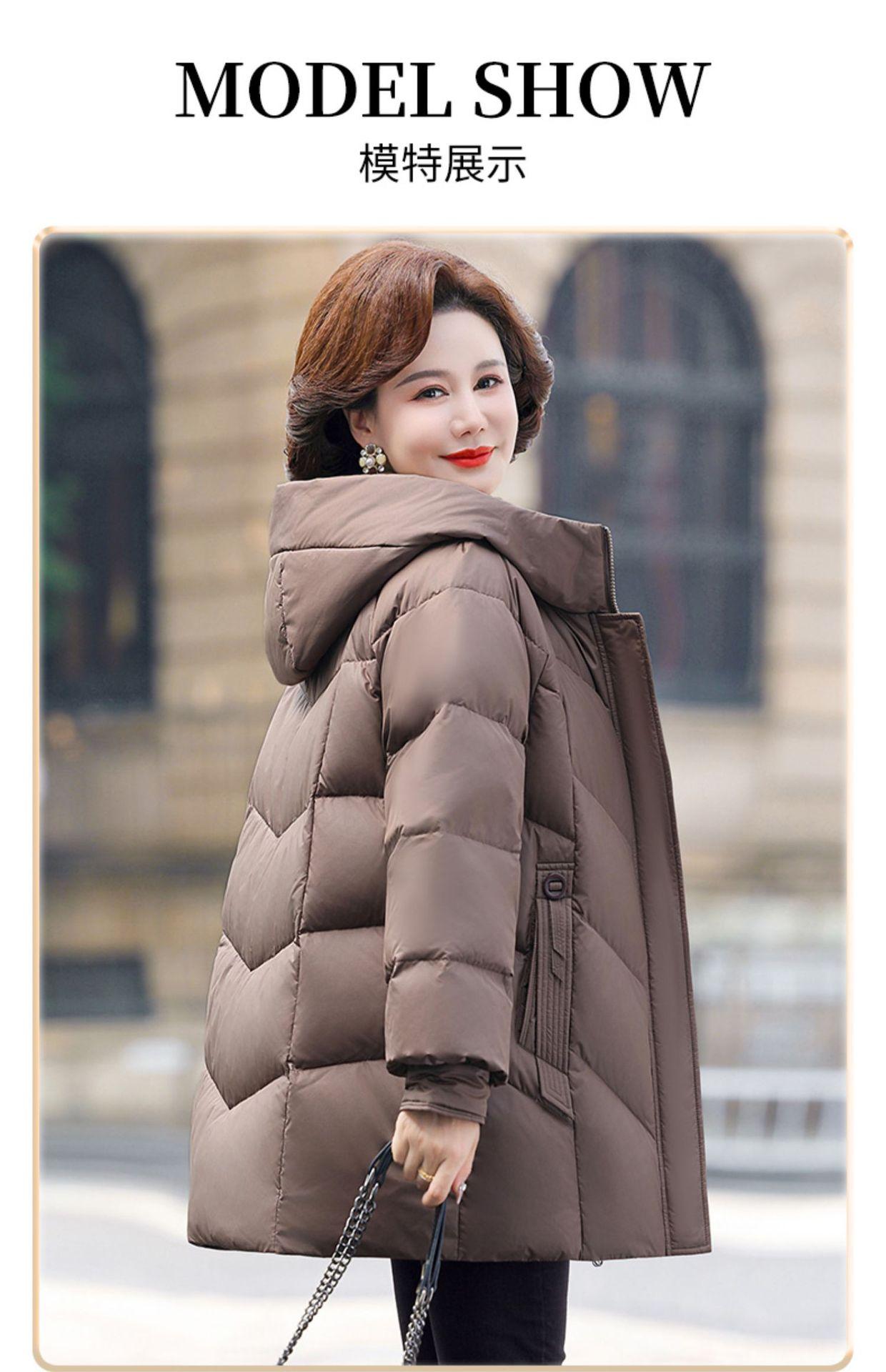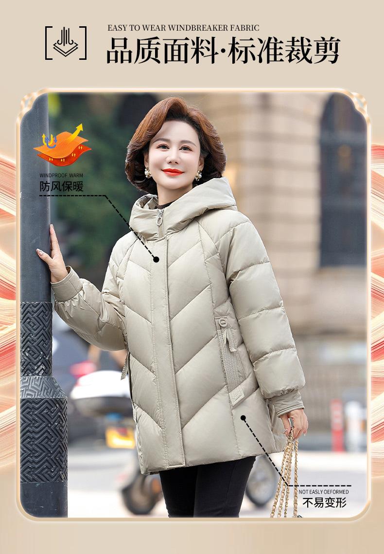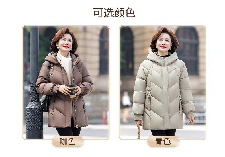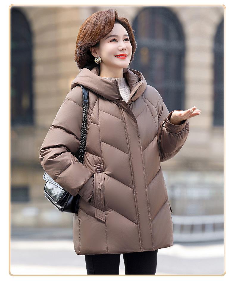 Chaqueta de plumón para mujeres de mediana edad y mayores Snow Flying Invierno 2025 Nuevo con capucha Largo medio Plumón de pato Mamá Otoño e Invierno