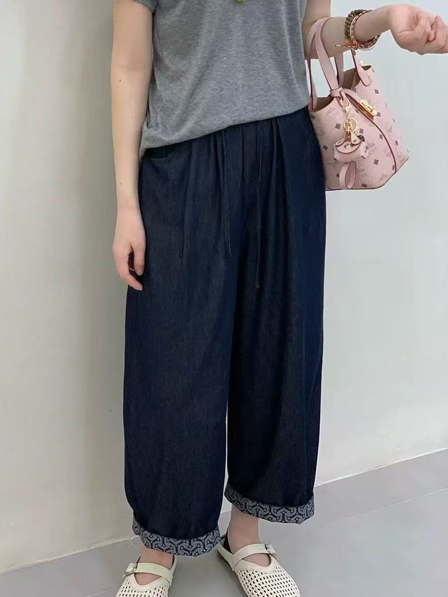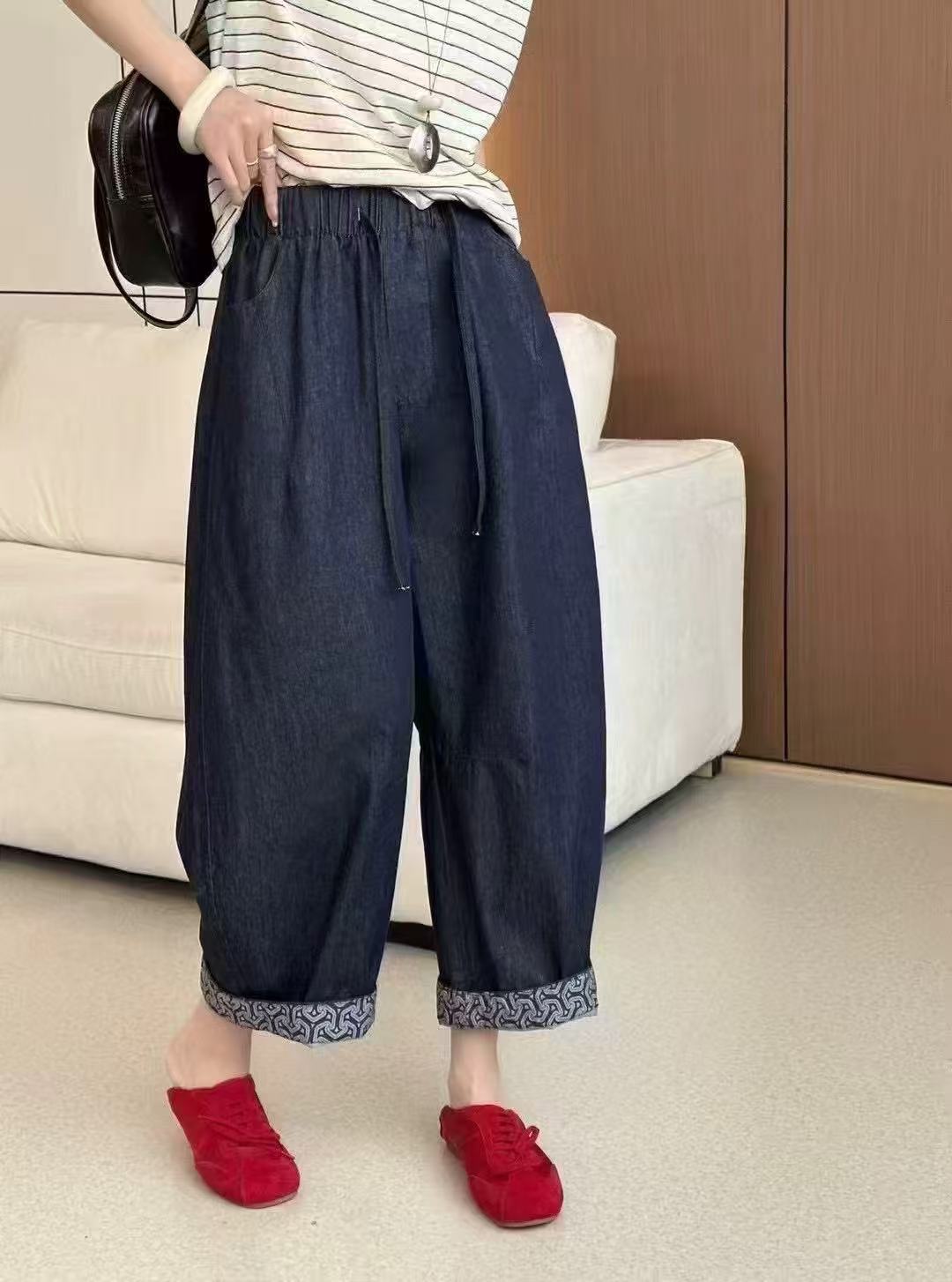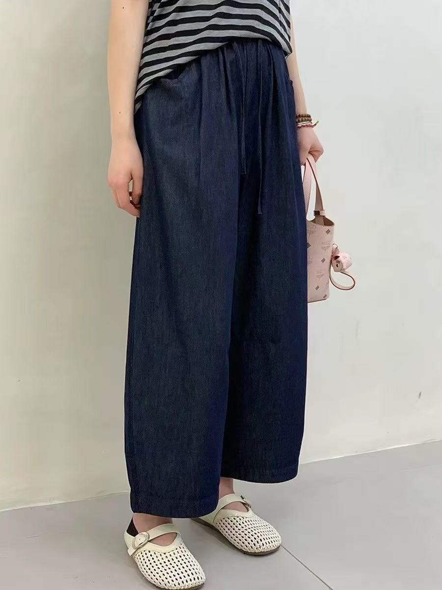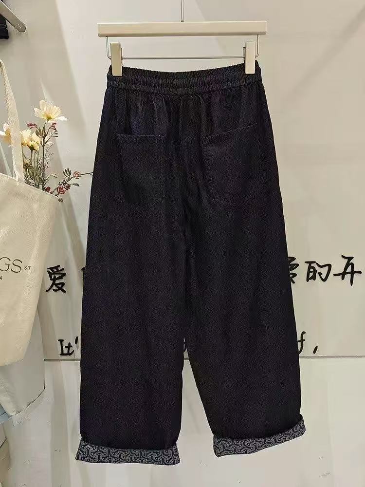 Jeans Vintage de Tencel con Puño para Mujer 2025 Verano Delgados Sueltos Adelgazantes Pantalones de Pierna Ancha Casuales Rectos Recortados