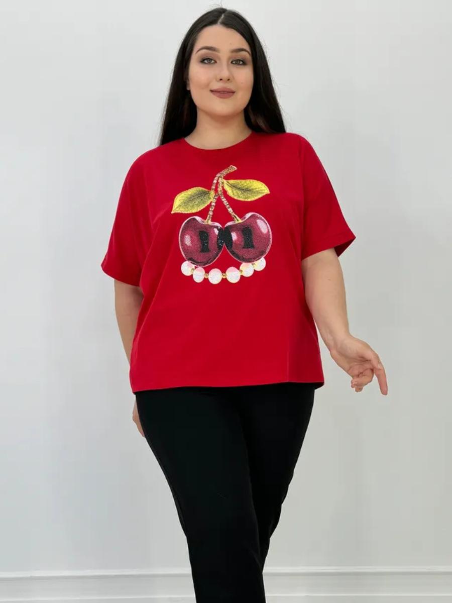 Verano Nueva Camiseta de Manga Corta Estilo Europeo y Americano 100% Algodón Casual Elegante Moderna Estampado de Frutas Ropa de Trabajo Top Ins