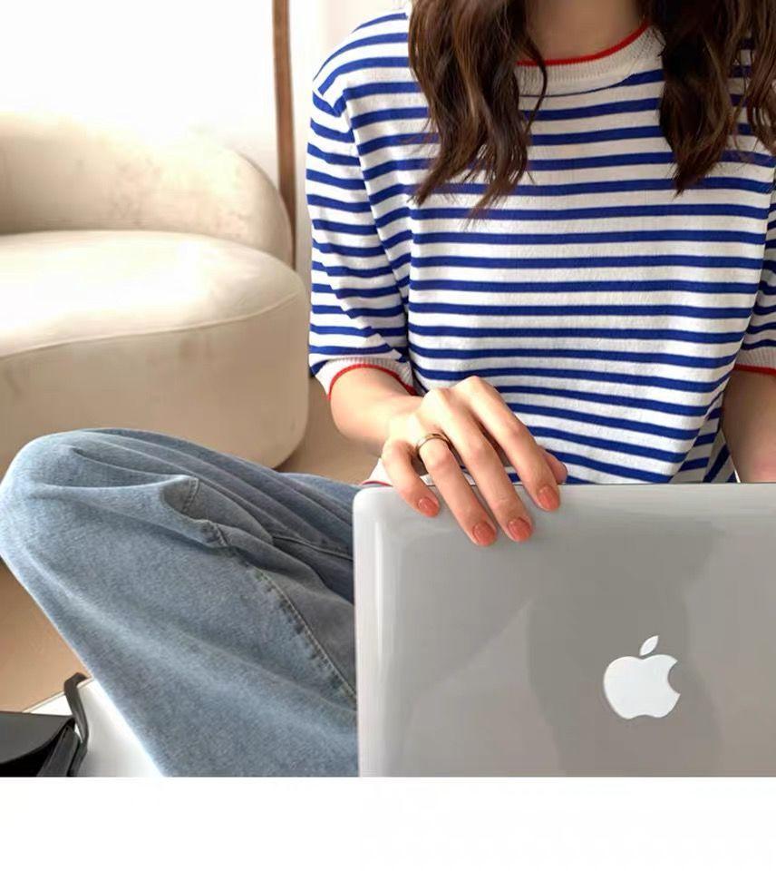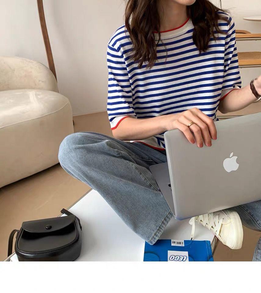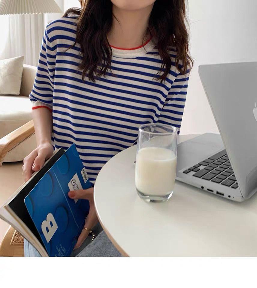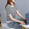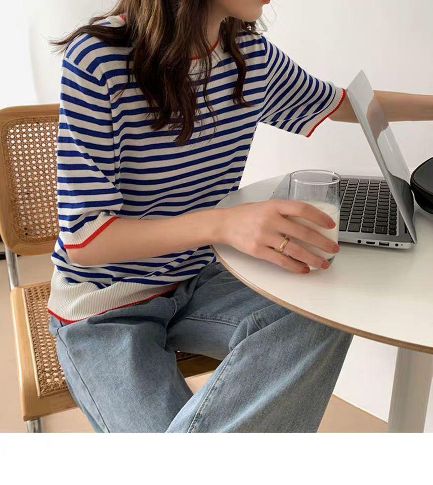 Verano Nuevo Estilo Pequeño Fresco Holgado Camisa Rayada Estilo de Mujer Tejido Manga Corta Trendy Estilo Fino Seda Helada Mujer