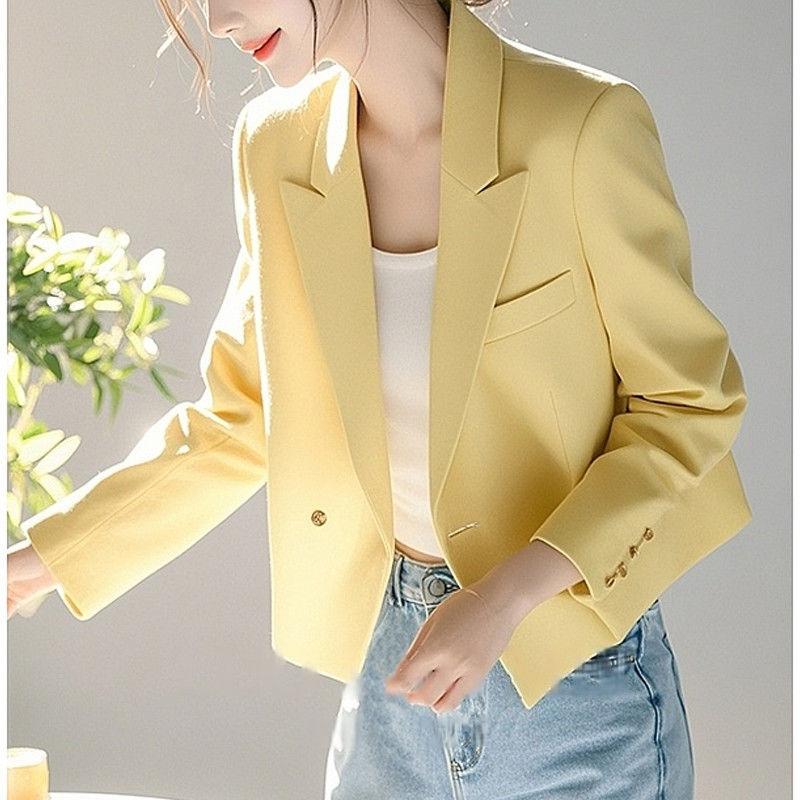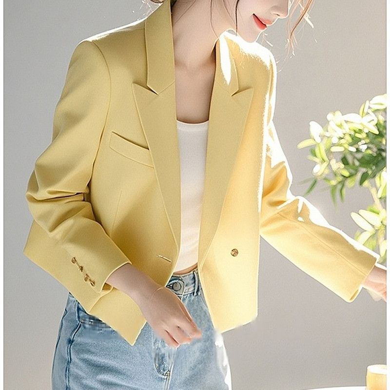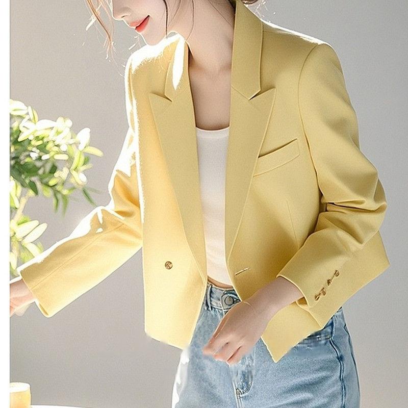2025 nuevo este año popular primavera y otoño traje casual amarillo leche moda para ir al trabajo abrigo pequeño de viento fragante