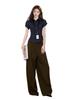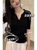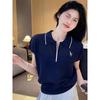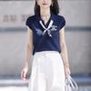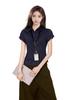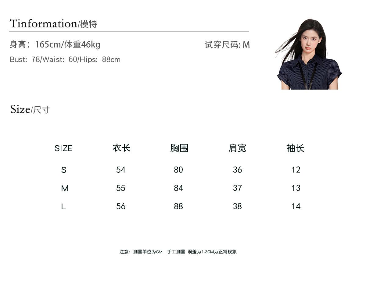 Camisa Polo Azul Marino Rayada Manga Corta Hombro Derecho para Mujer Diseño Verano Cintura Entallada Look Adelgazante Camisa Top
