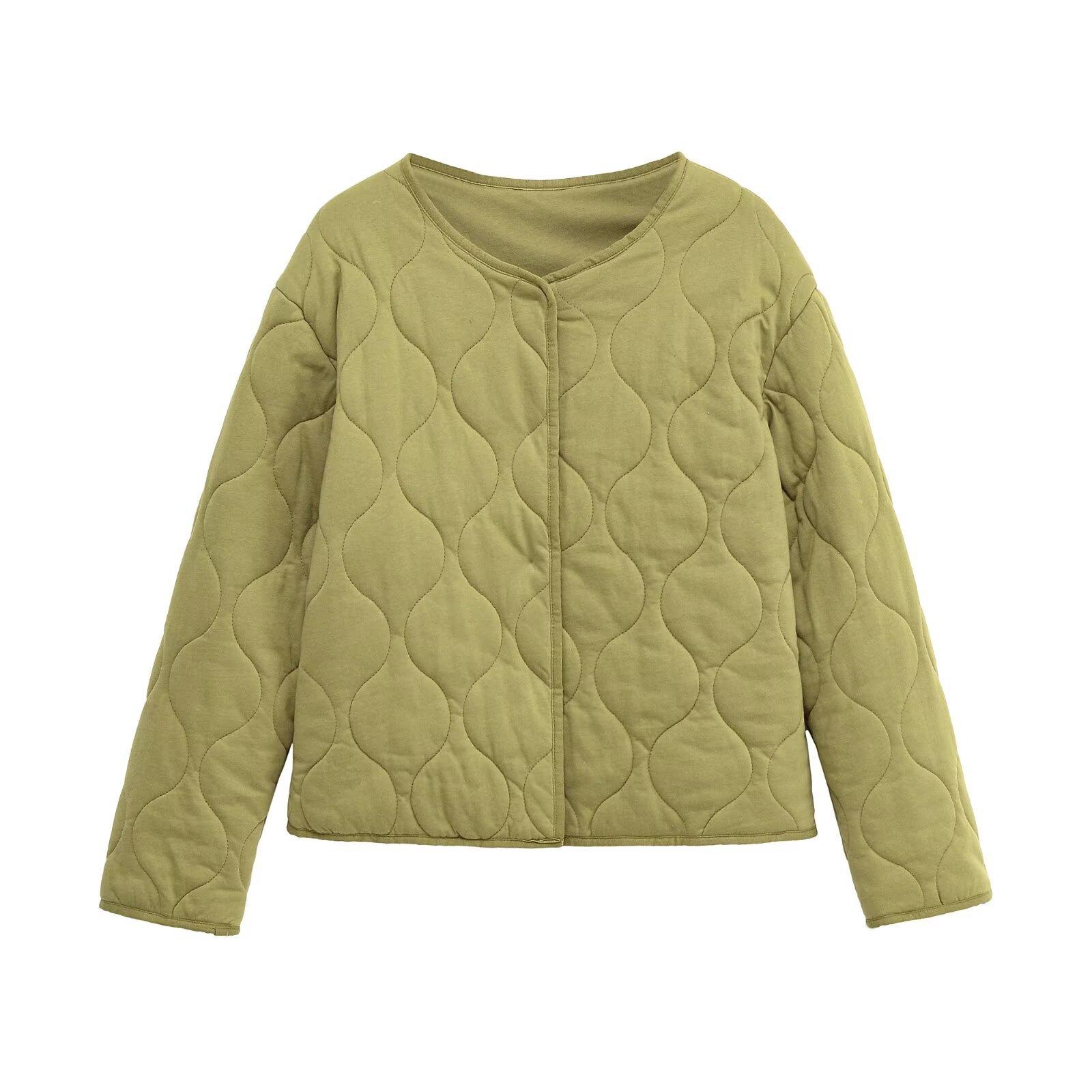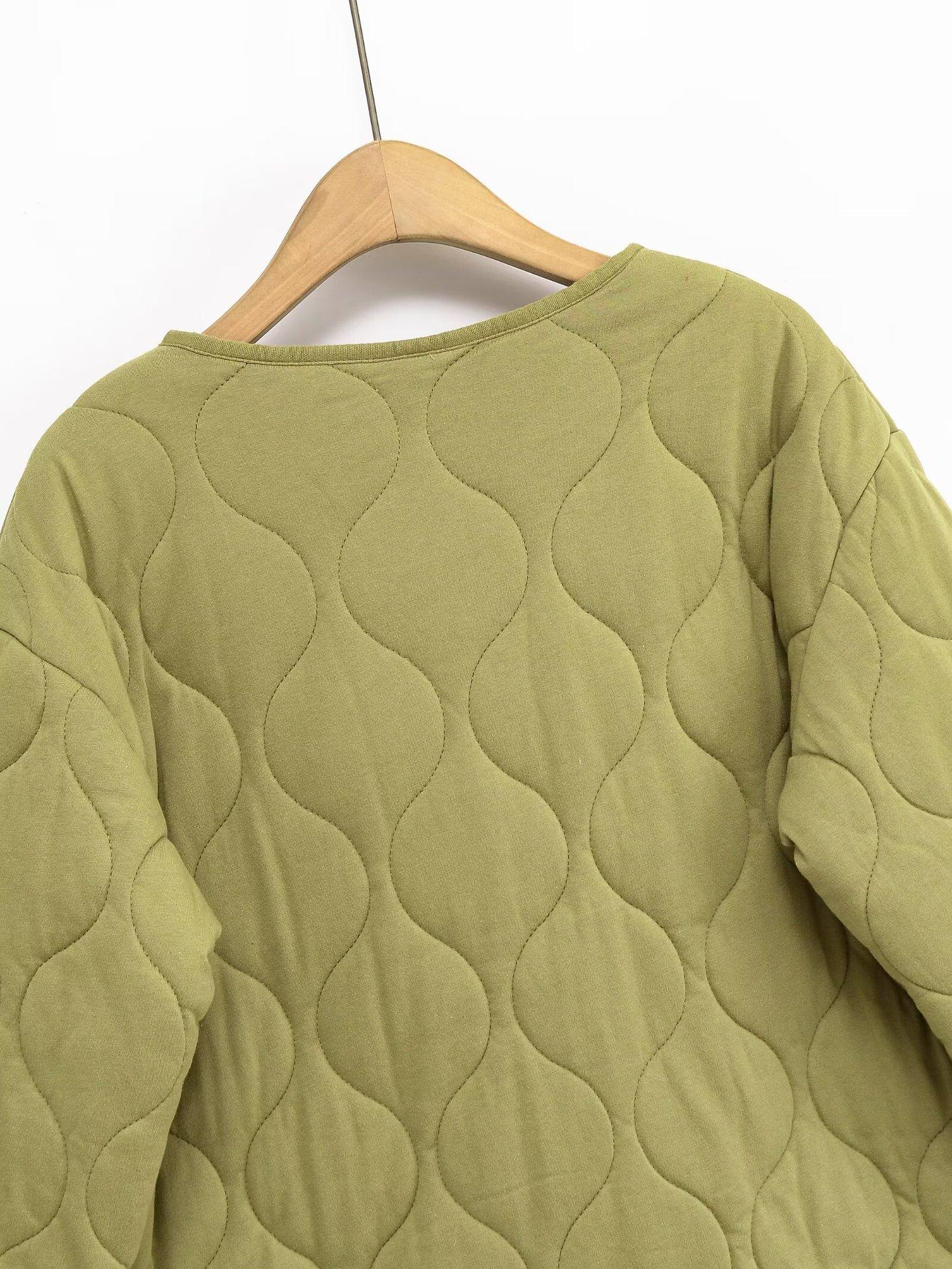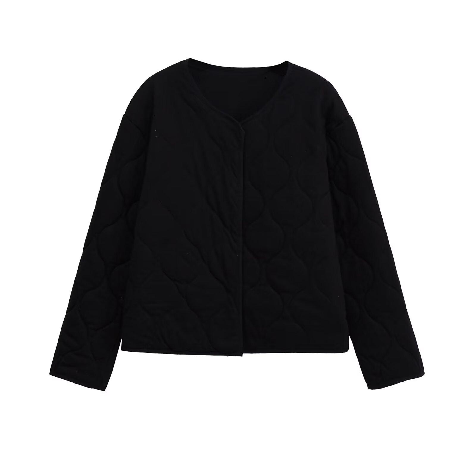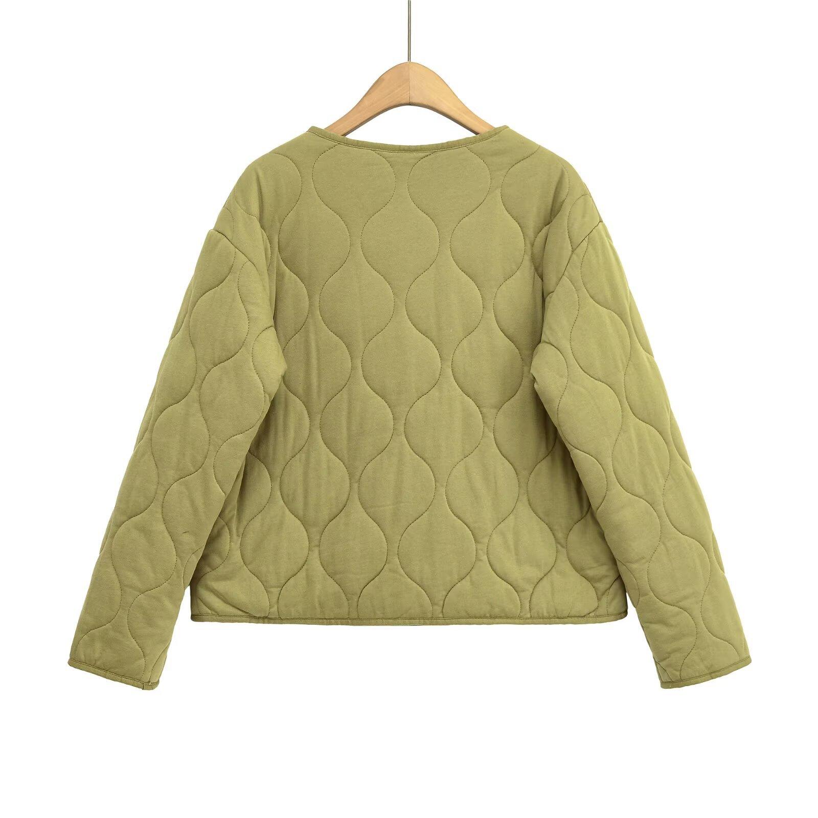 Exportación Transfronteriza Ropa de Mujer 2025 Invierno Estilo Europeo y Americano Cuello Redondo Manga Larga Botonadura Oculta Acolchada Cálida Chaqueta de Algodón F79904
