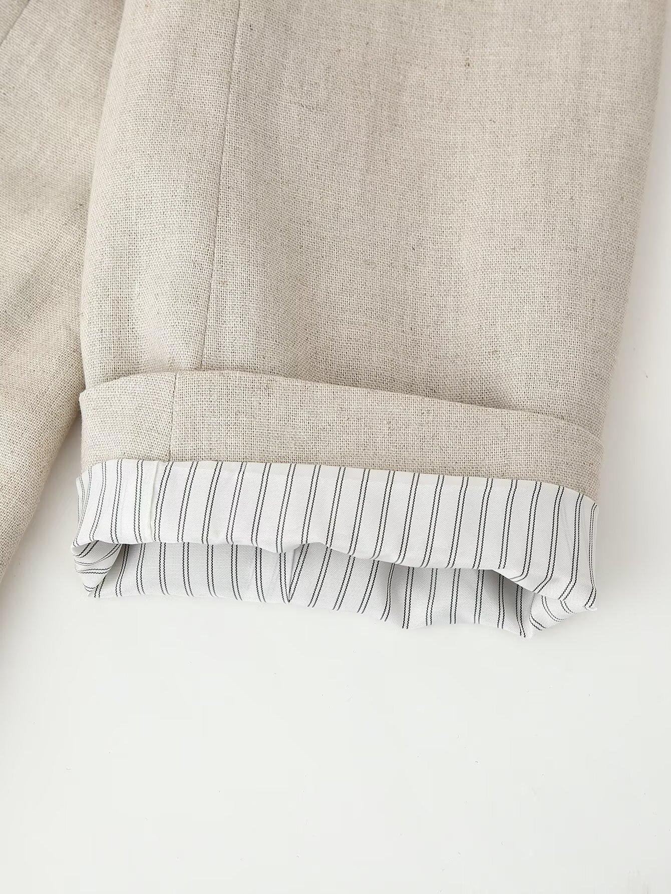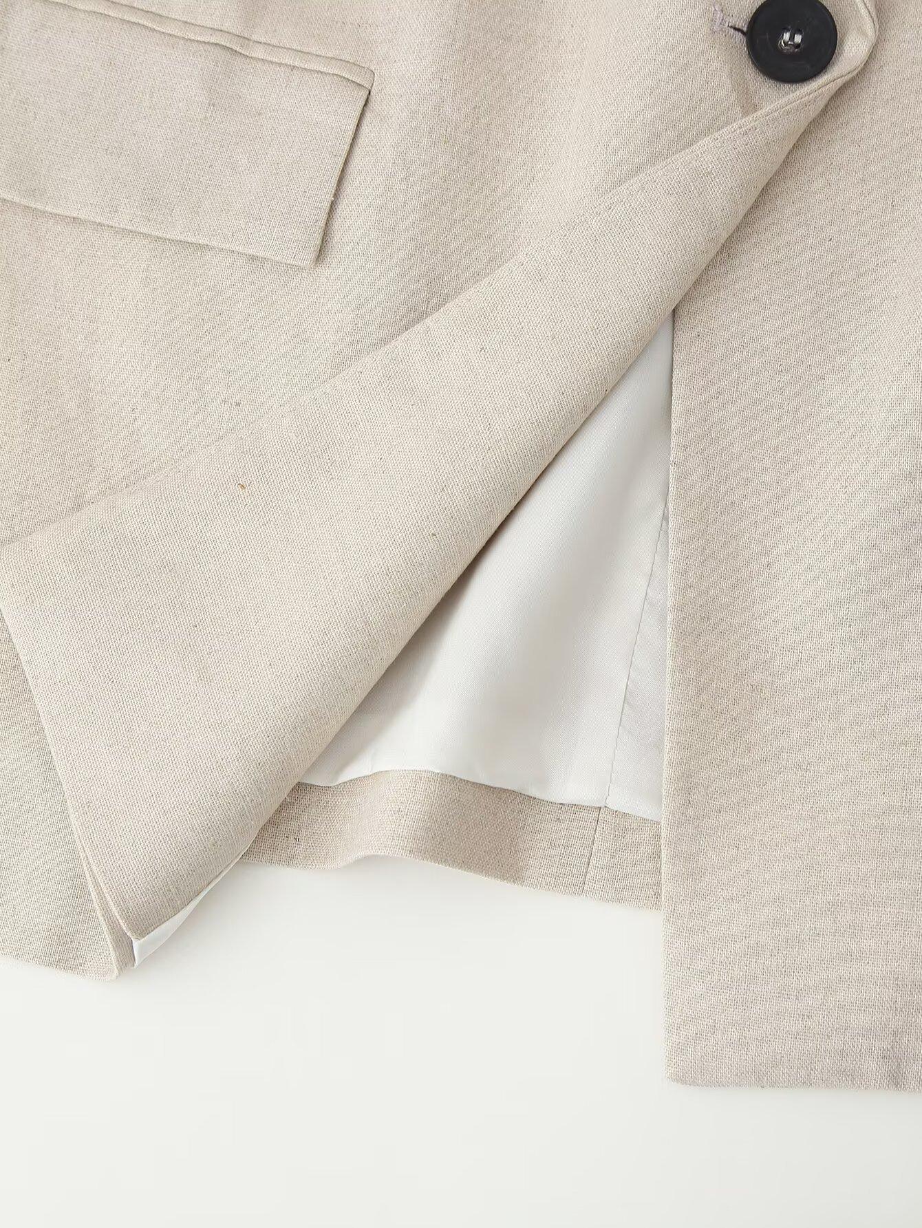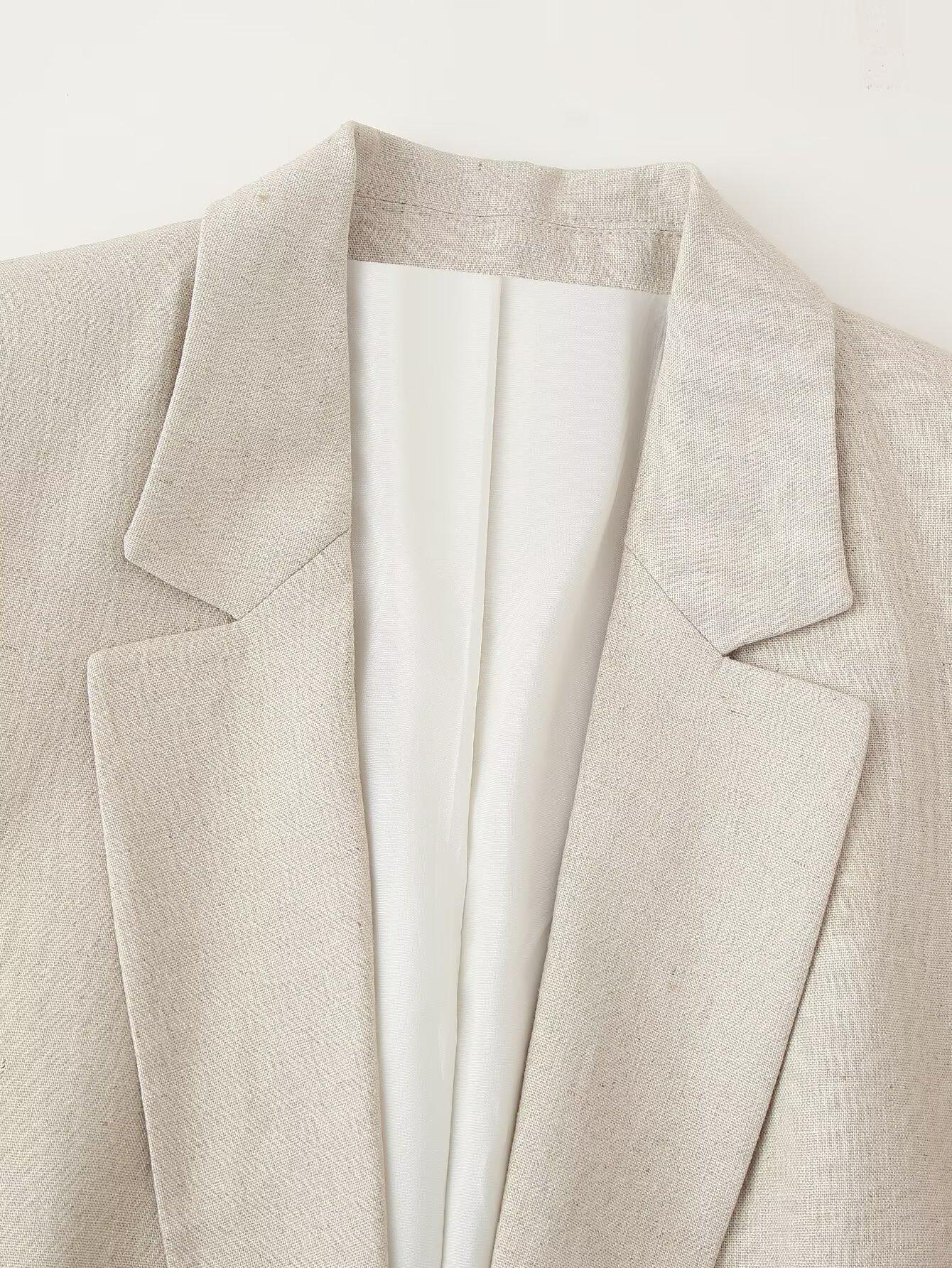 Ropa de Mujer Nueva Primavera 2025 Estilo Europeo y Americano Moda Puño Estampado Lino Traje Casual Chaqueta 2753630
