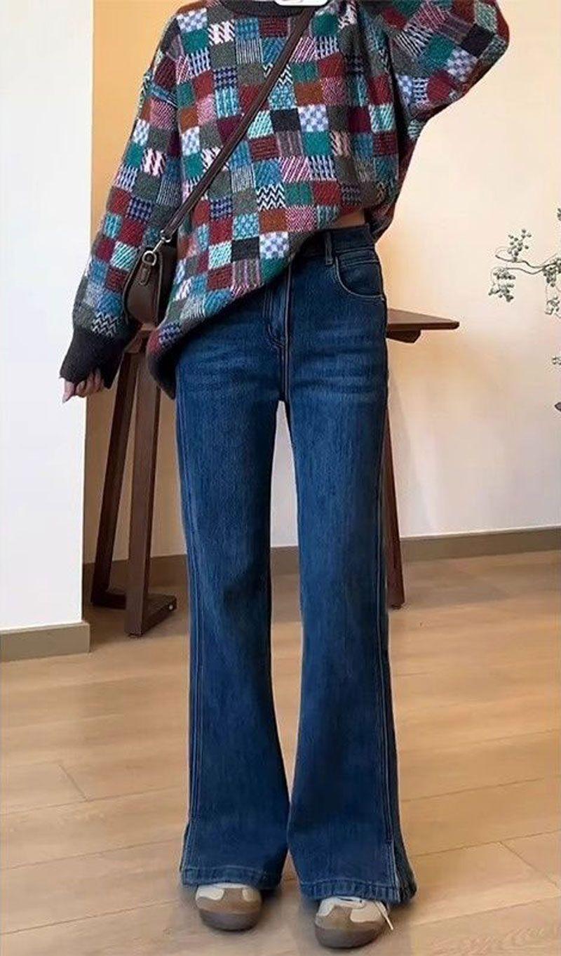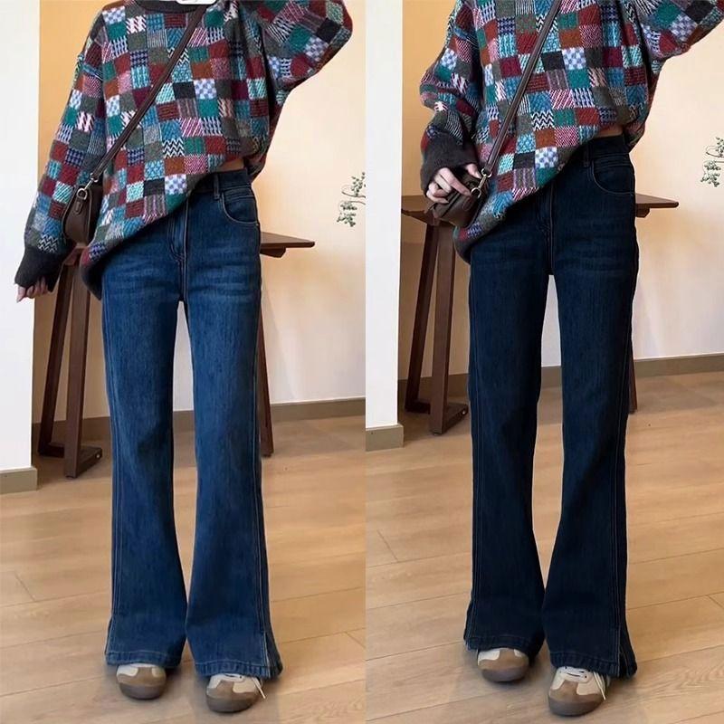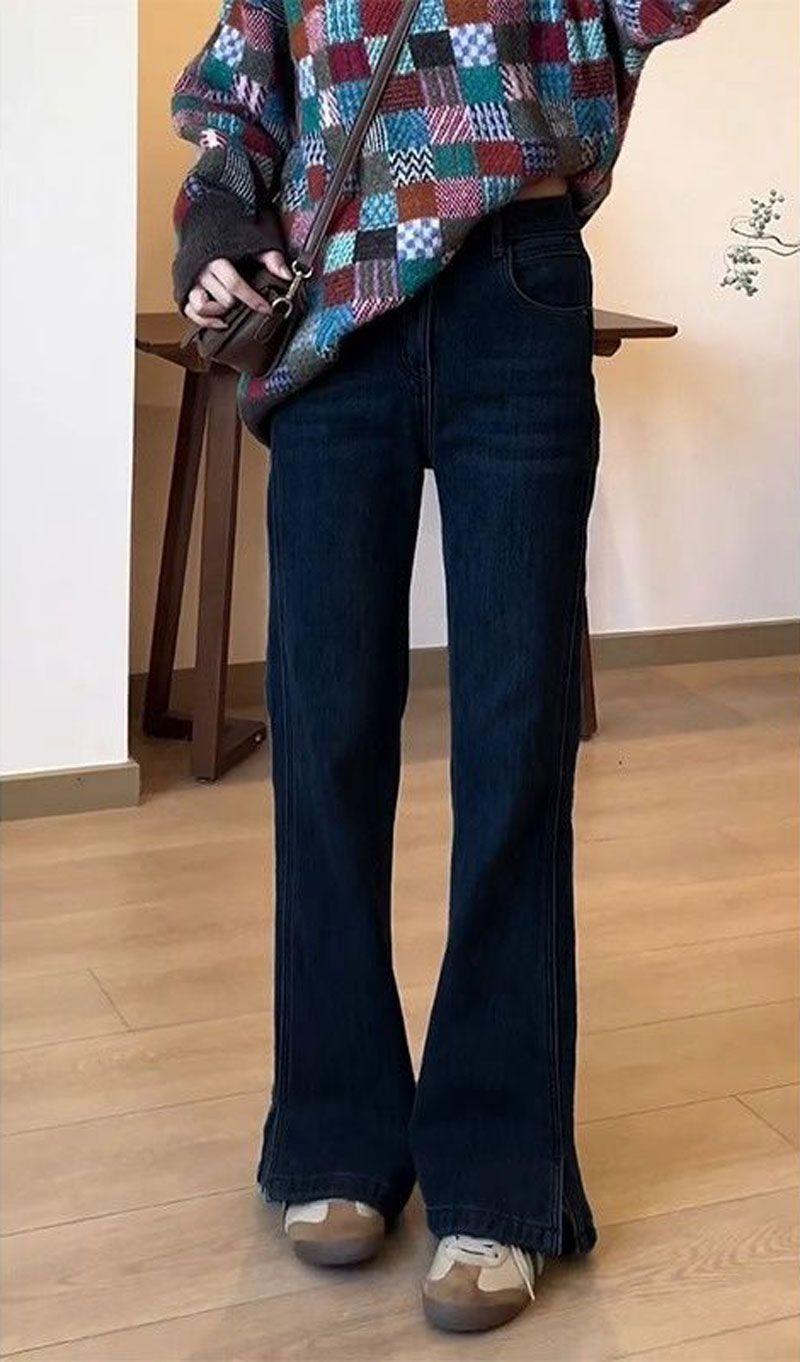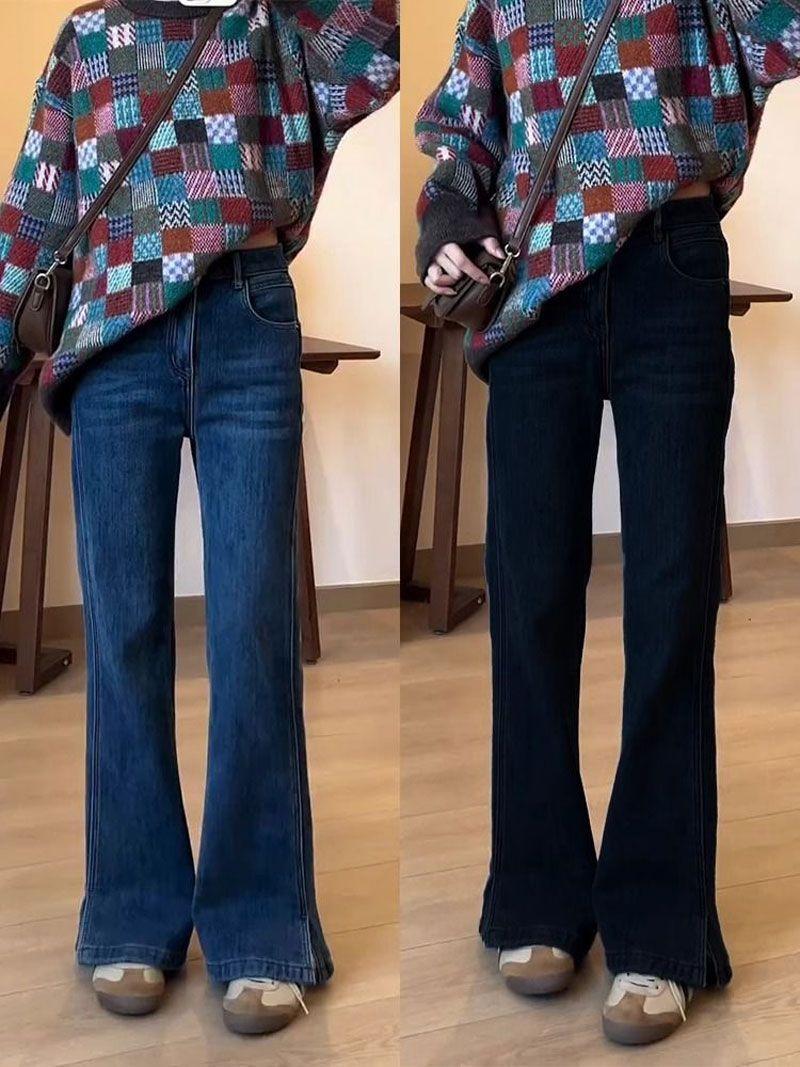 Jeans elásticos de moda para mujer con aberturas 2025 Nuevo Pantalones de pierna ancha de talla grande para mujer, Pantalones versátiles que cubren la carne