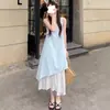 Vestido Blanco Chaleco Transfronterizo para Mujer, Nuevo Estilo de Verano, Diseño Holgado Francés, Vestido de Tirante Irregular de Longitud Media