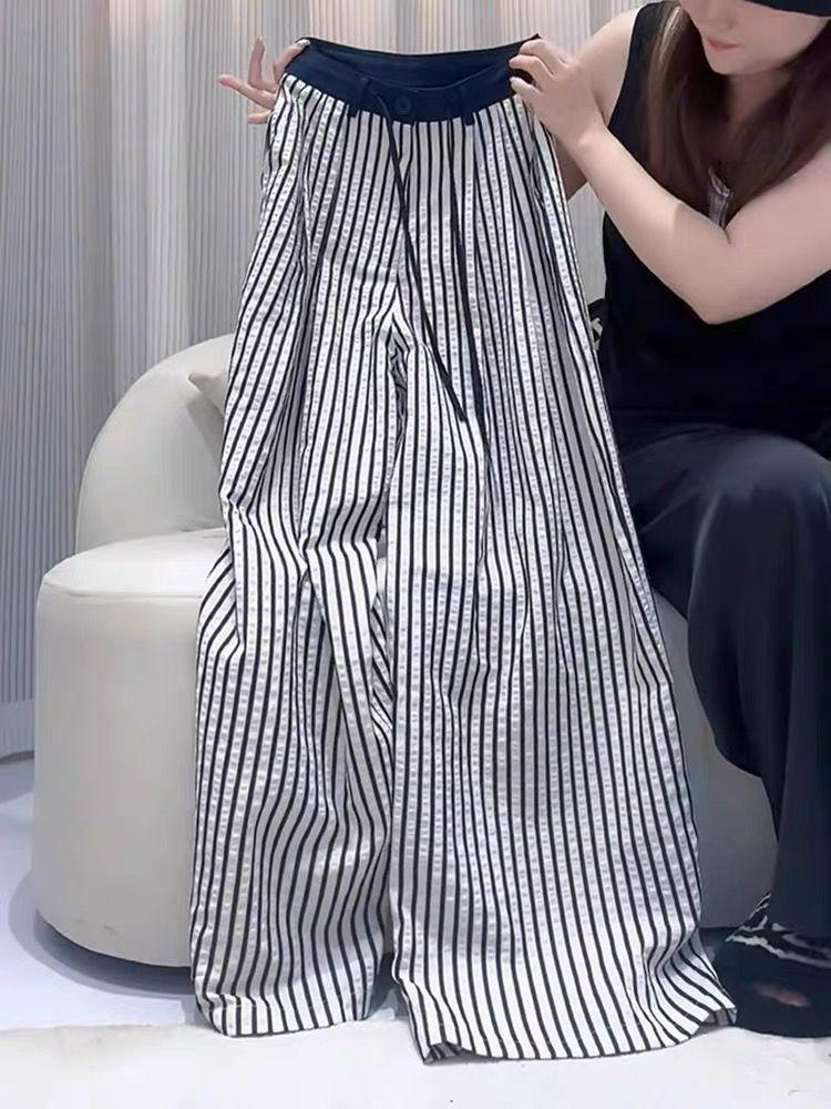 Marca de primera línea descuento recogida estilo coreano moda rayas sueltos pierna ancha pantalones casuales de mujer drapeado delgados pantalones Yamamoto verano