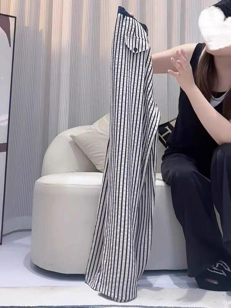 Pantalones de Moda a Rayas de Pierna Ancha para Mujer, Verano Delgados 2025 Nuevo Cintura Alta Drapeados Sueltos Rectos Adelgazantes Casuales Pantalones Largos