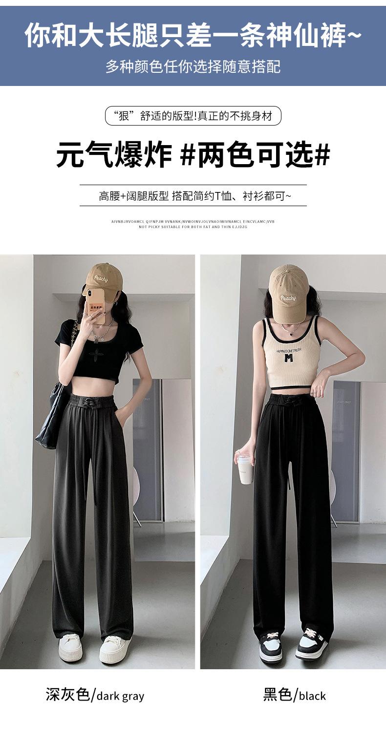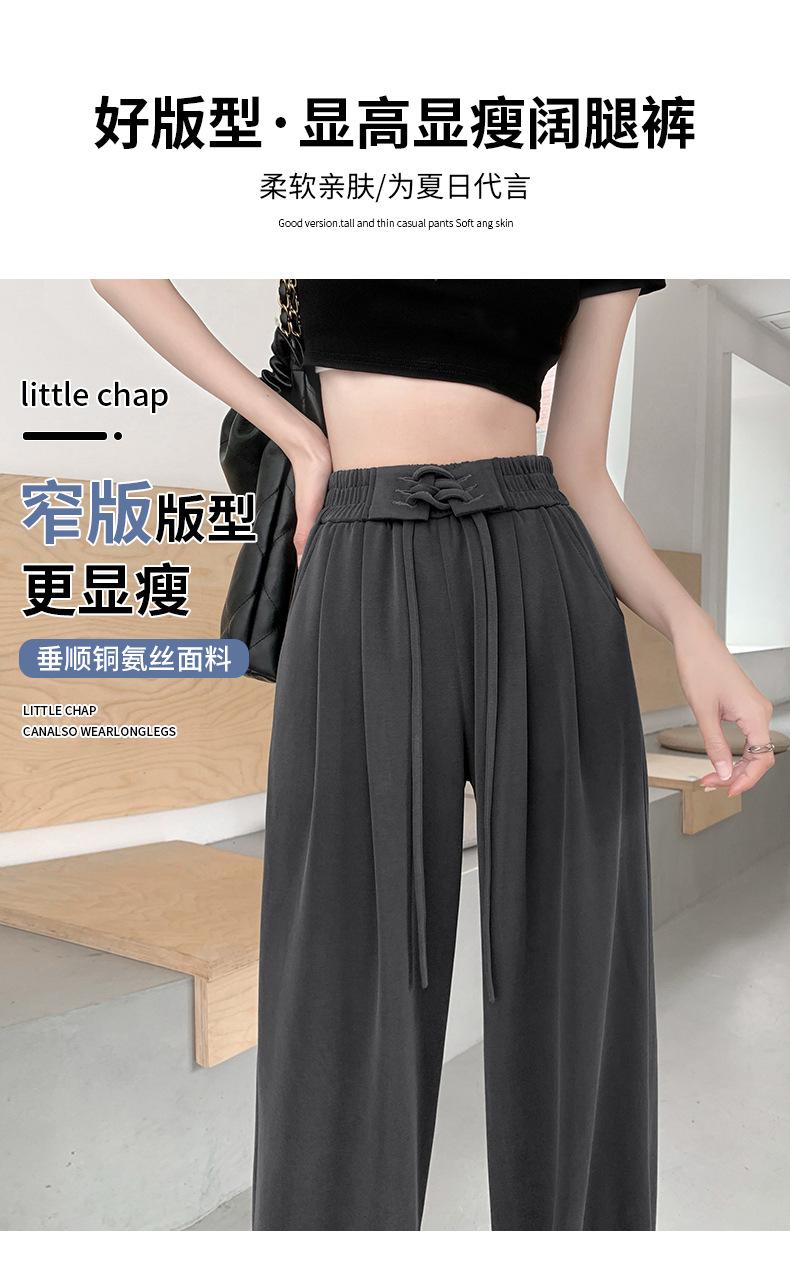 Pantalones de Pierna Ancha de Cupro Seda Helada Transfronterizos para Mujer, Verano Delgados Petite 2025 Nuevos Pantalones Casuales Adelgazantes con Caída