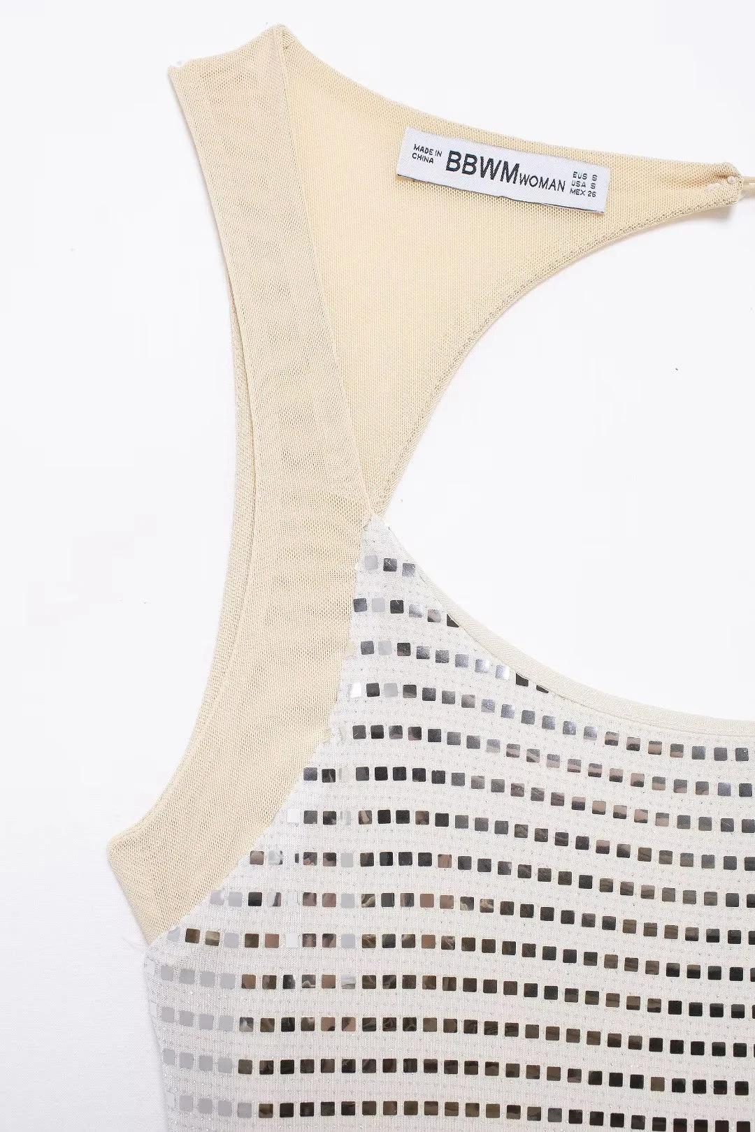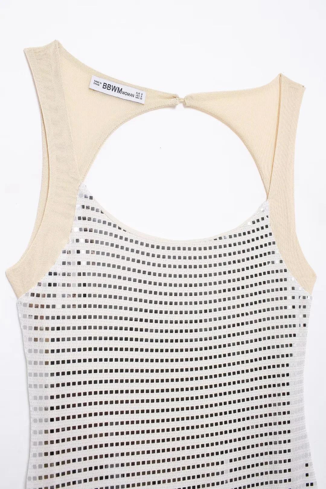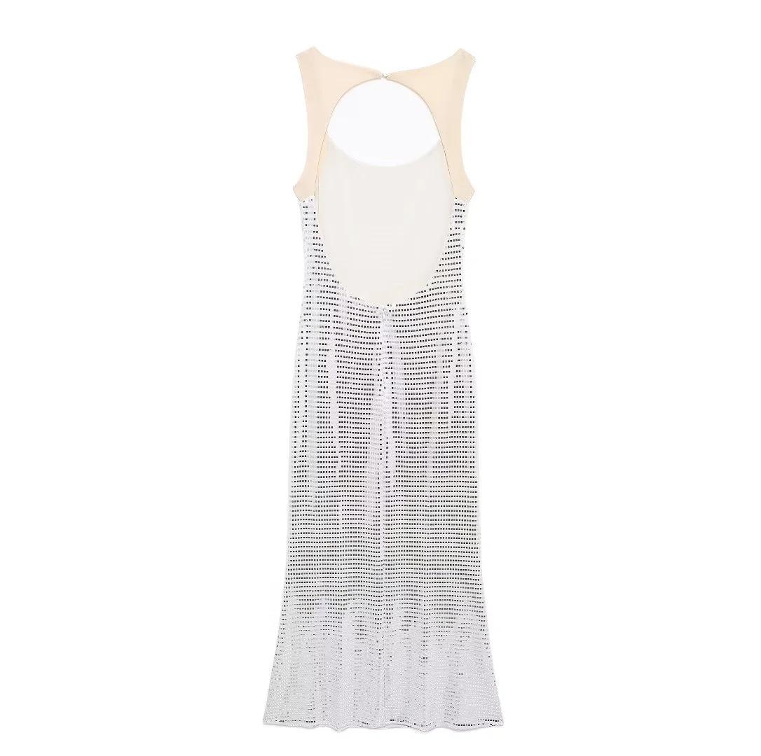 Ropa de Mujer Estilo Europeo y Americano Comercio Exterior Transfronterizo Explosiones Moda Sexy Fiesta Lentejuelas Malla Espalda Descubierta Vestido de Tirantes