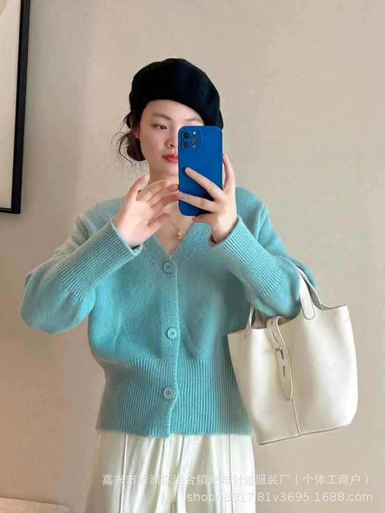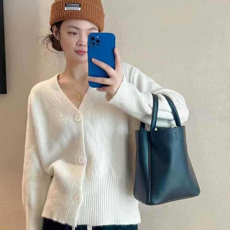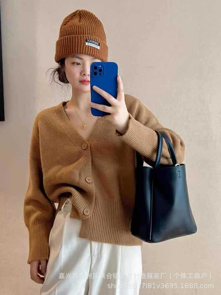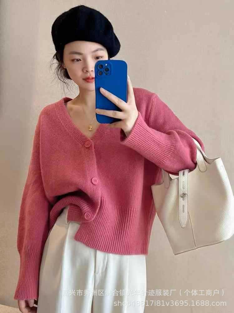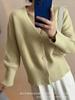 Estilo Coreano Cuello en V Color Puro Tejido de Punto Prendas de Punto Tops de Mujer Otoño e Invierno 2025 Nuevo Estilo Lazy Suelto Versátil Chaqueta Mujer