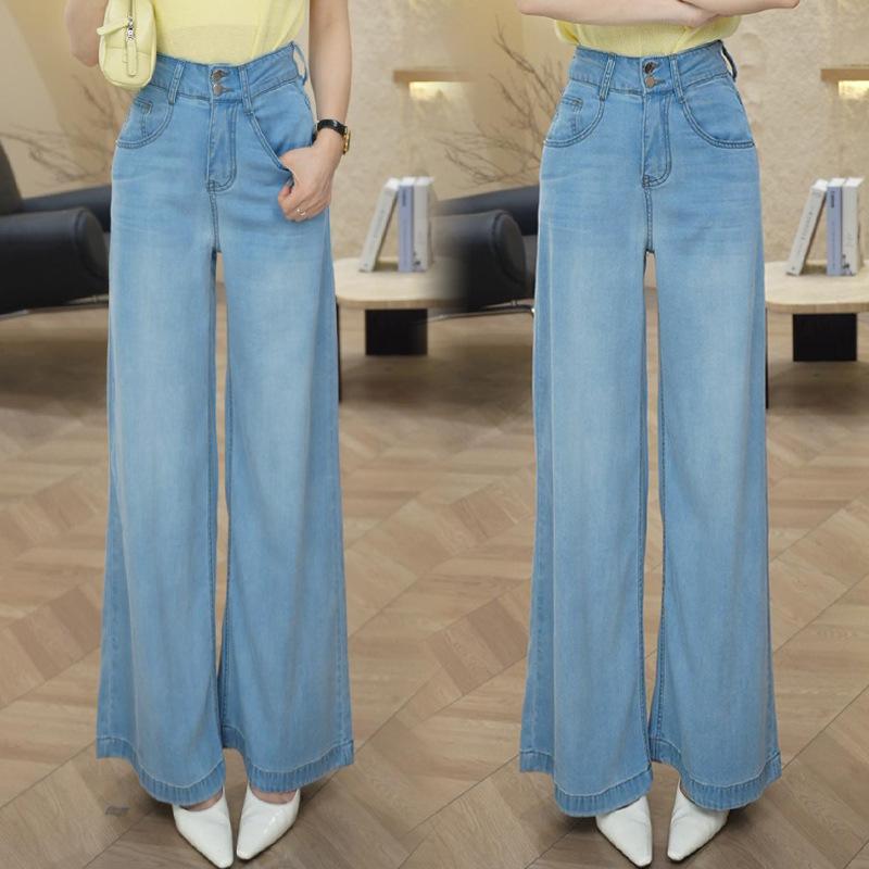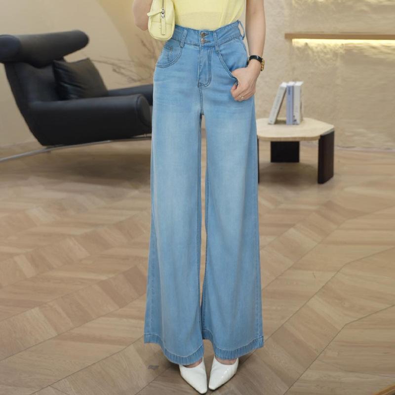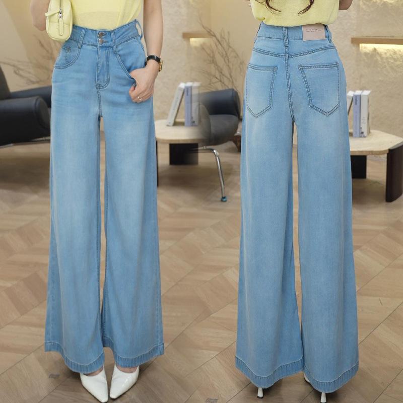 2025 Verano Delgados Nueva Moda Jeans Tencel Mujer Cintura Alta Sueltos Adelgazantes Versátiles Pantalones Rectos de Pierna Ancha