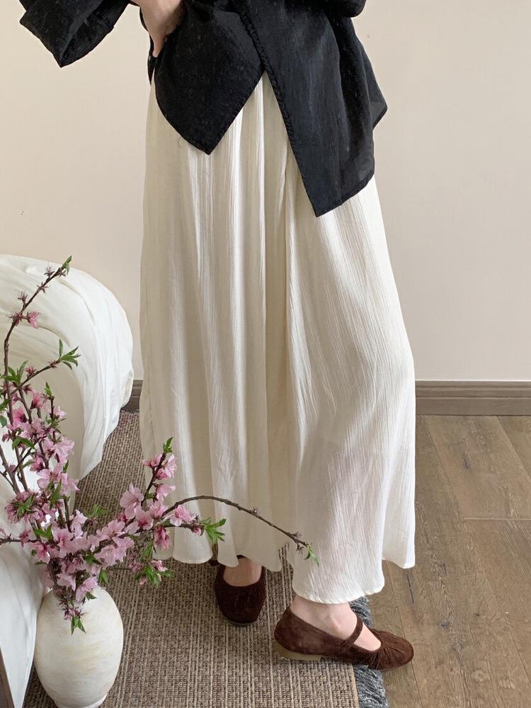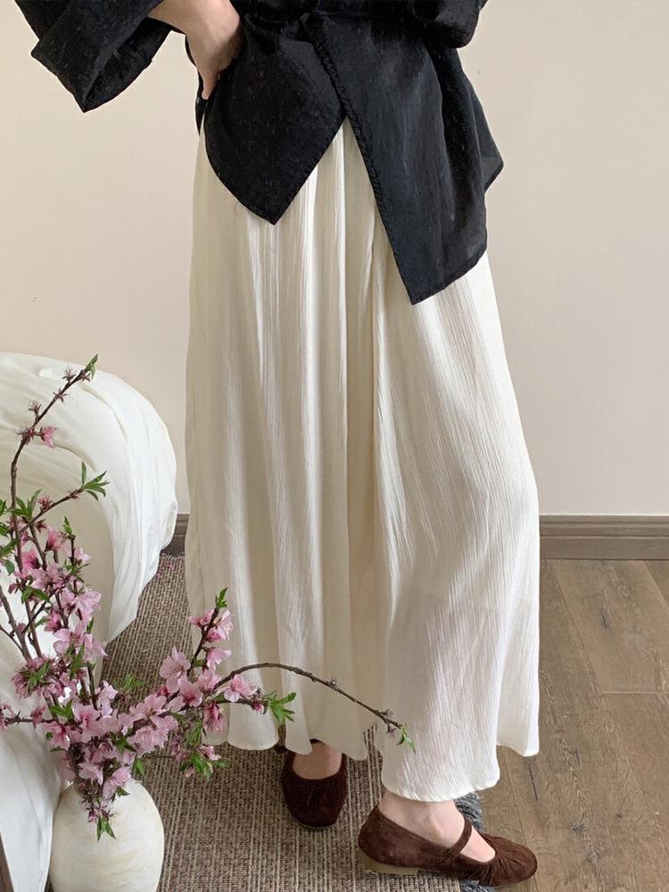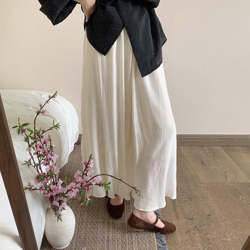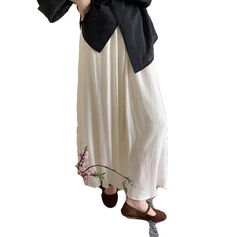 Falda Plisada con Textura Chao Grade para Mujer Verano 2025 Nuevo Estilo Chino Cintura Alta Holgada Larga