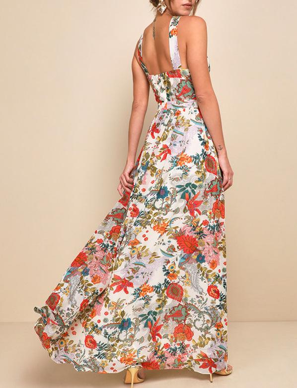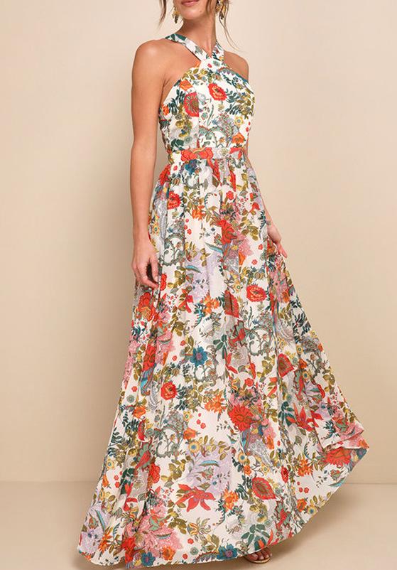 Vestido de noche largo y elegante con estampado de hada y hombros descubiertos para mujer, moda europea y americana, primavera y verano 2025