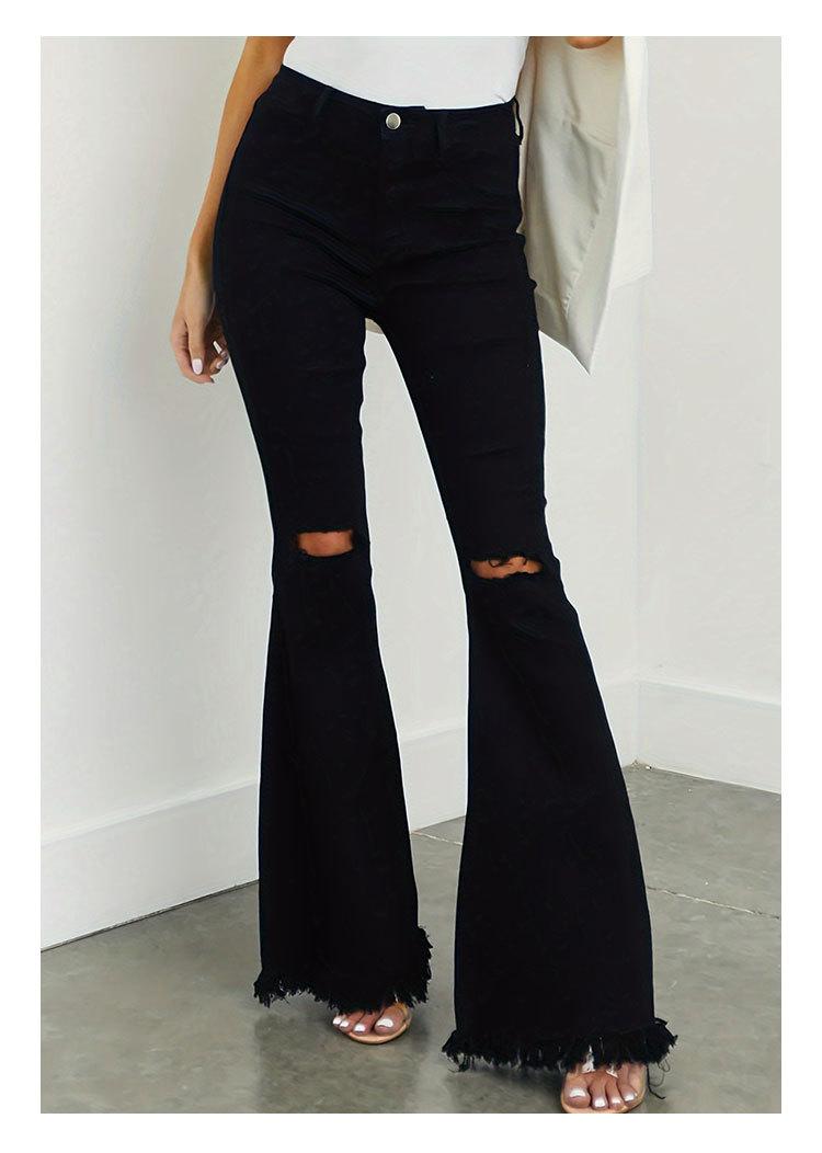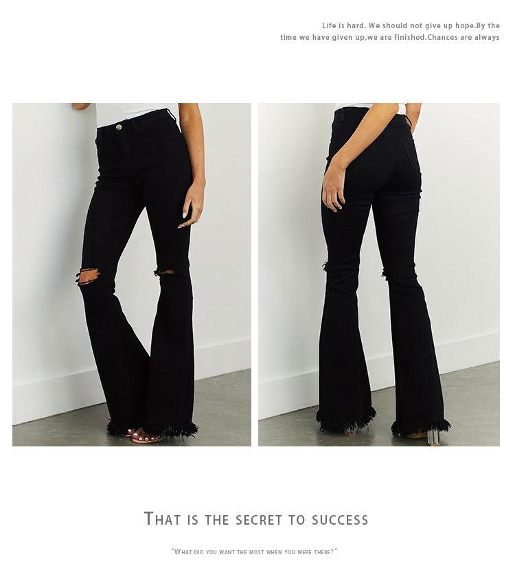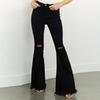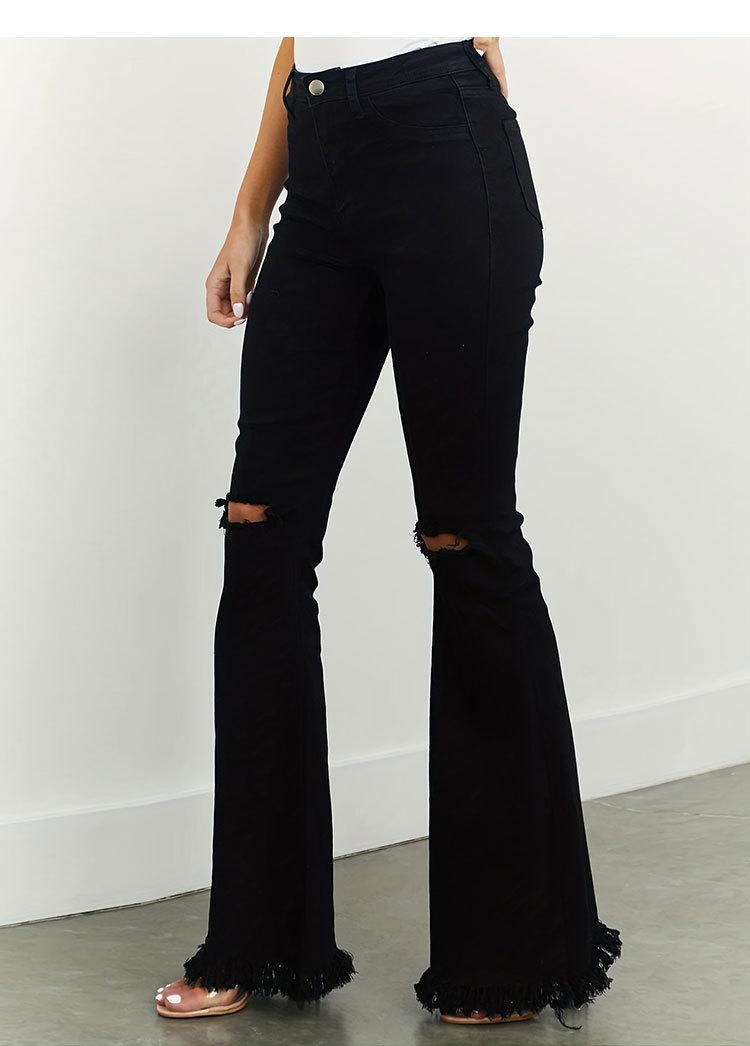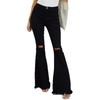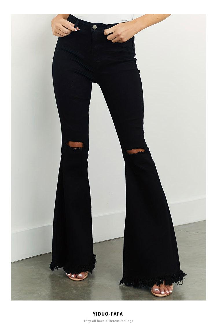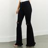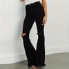 Xintang Denim Estilo Europeo y Americano Transfronterizo Jeans Rotos de Chica Americana Sexy para Mujer Pantalones Acampanados de Cintura Alta con Orilla Cruda