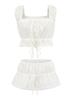 Estilo Europeo y Americano Cuello Cuadrado Lazo Versátil Top Blanco Plisado Chaleco + Traje de Falda de Encaje de Cintura Baja