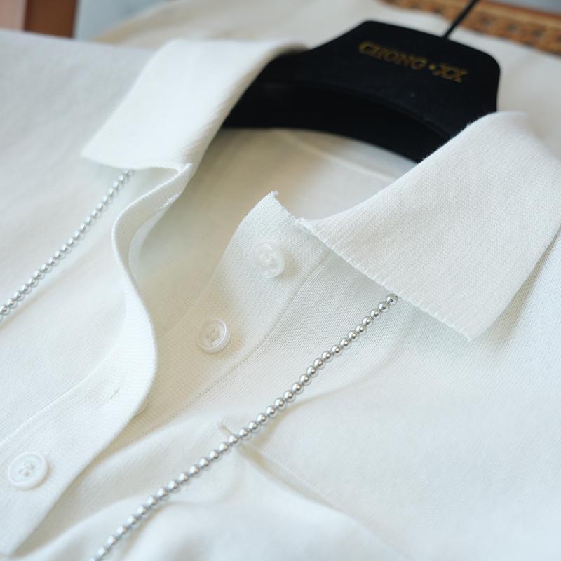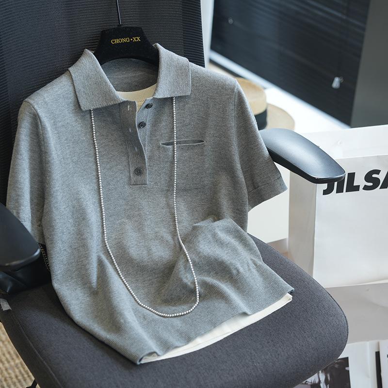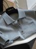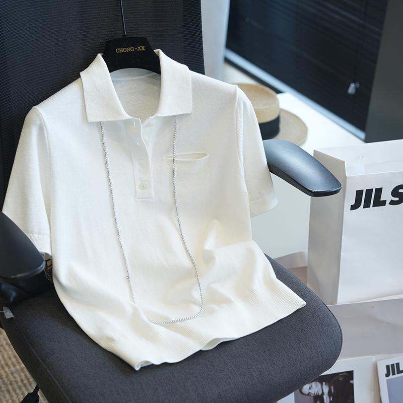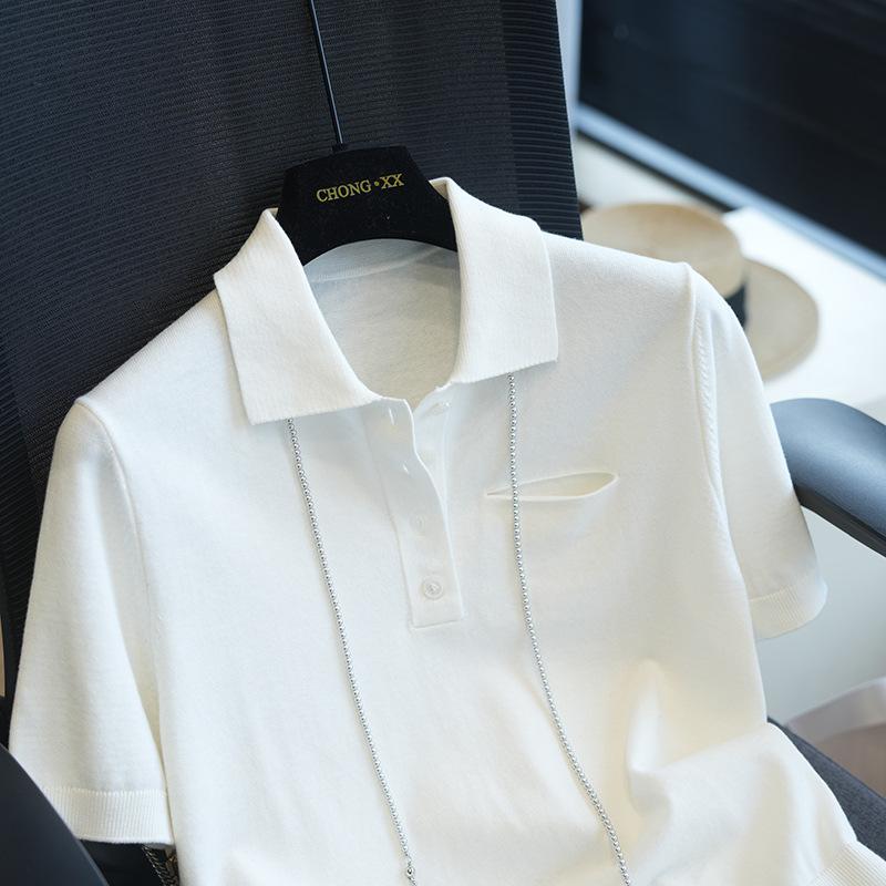 Polo Suéter Top de Manga Corta Adelgazante de Corte Slim de Color Sólido Casual Delgado con Solapa para Combinar con Todo para Mujer 2025 Verano Nuevo