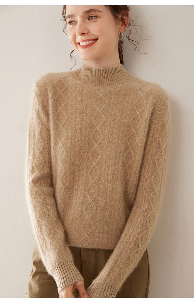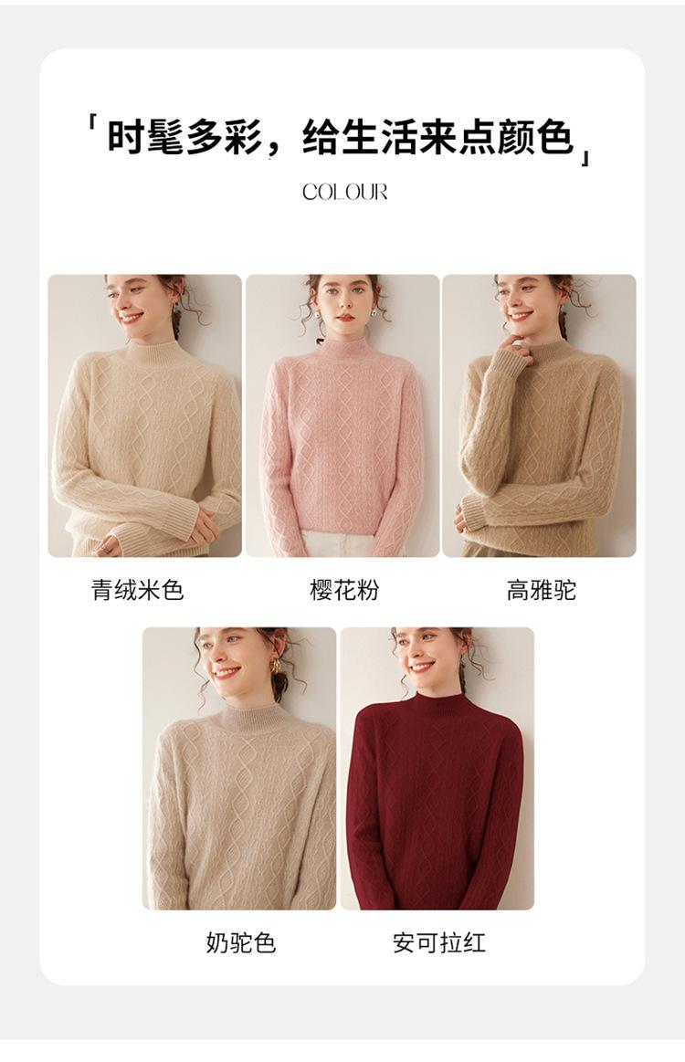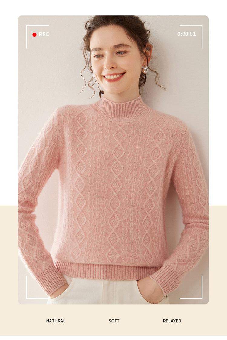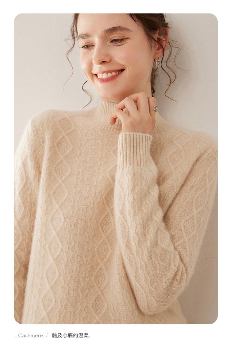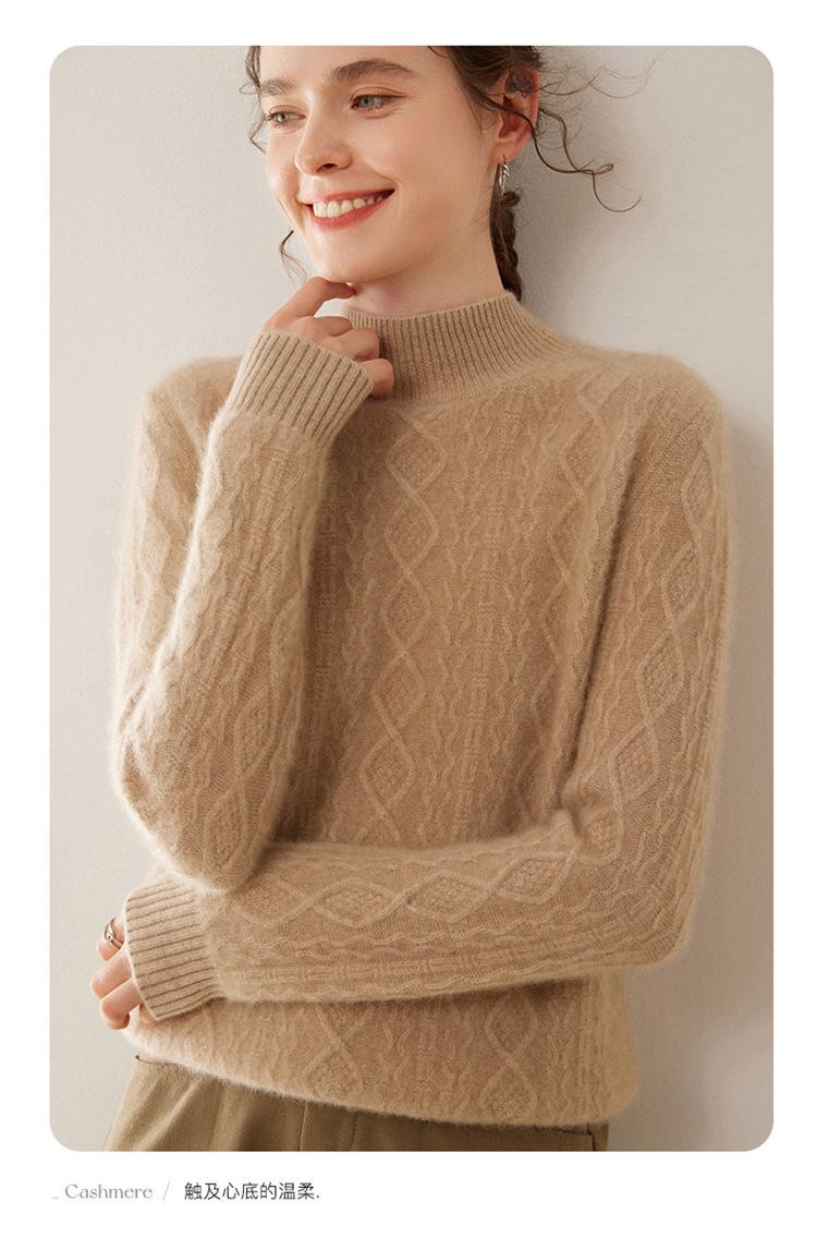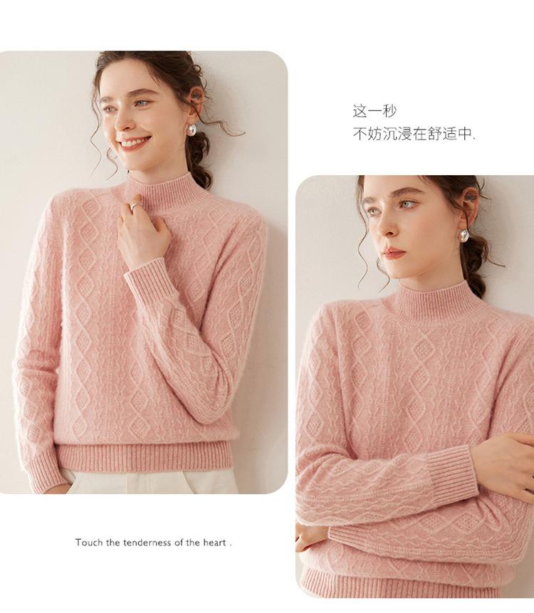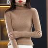 Camiseta básica de punto de cachemira cálida de corte ajustado a la moda con cuello medio alto para mujer, de manga larga y diseño de cable suelto