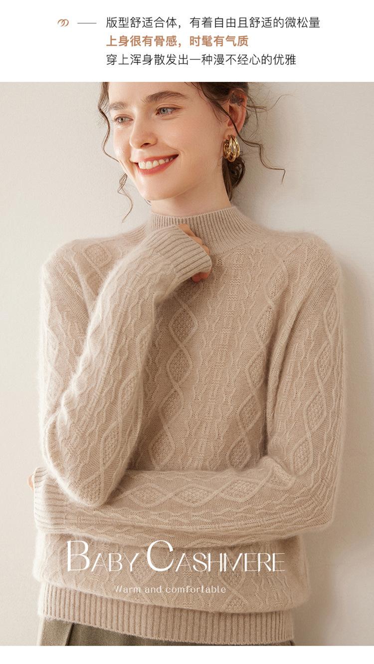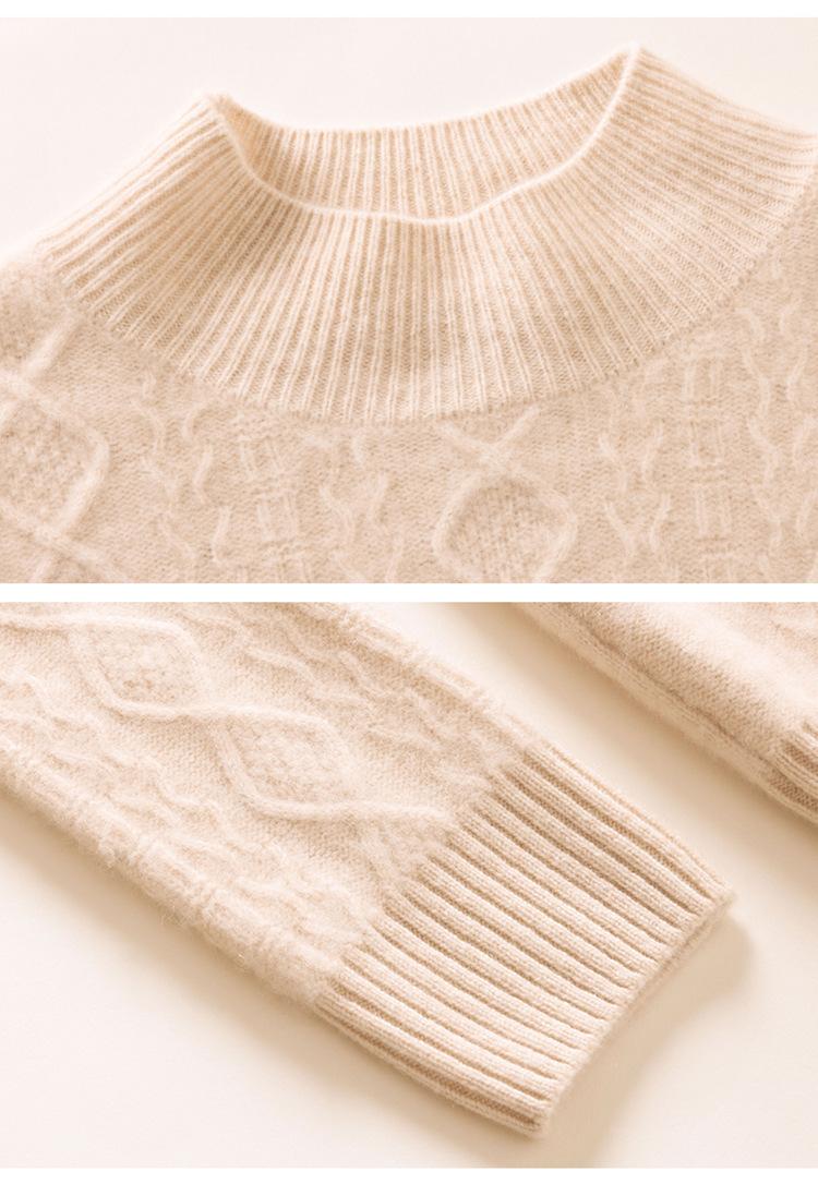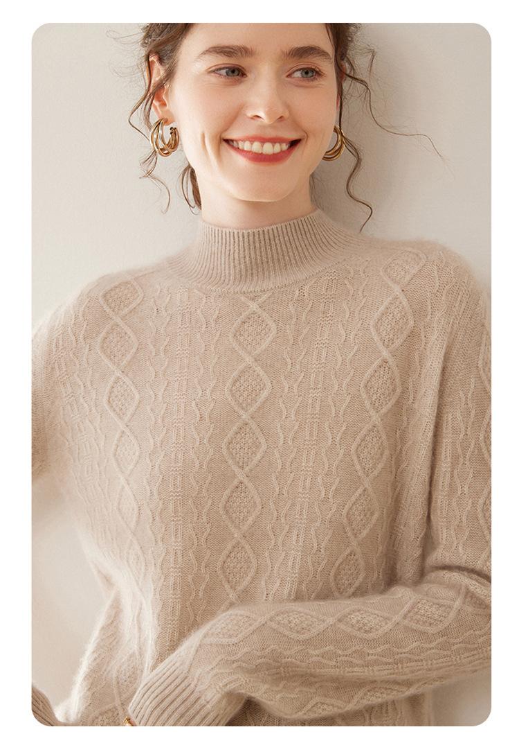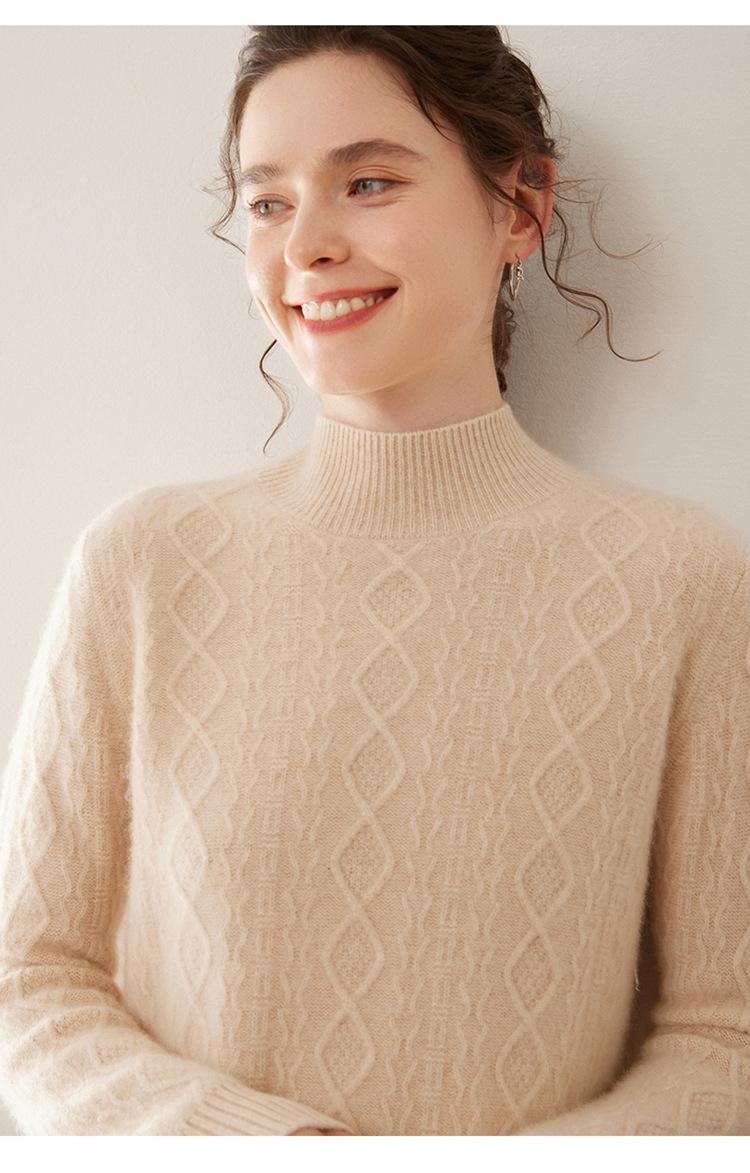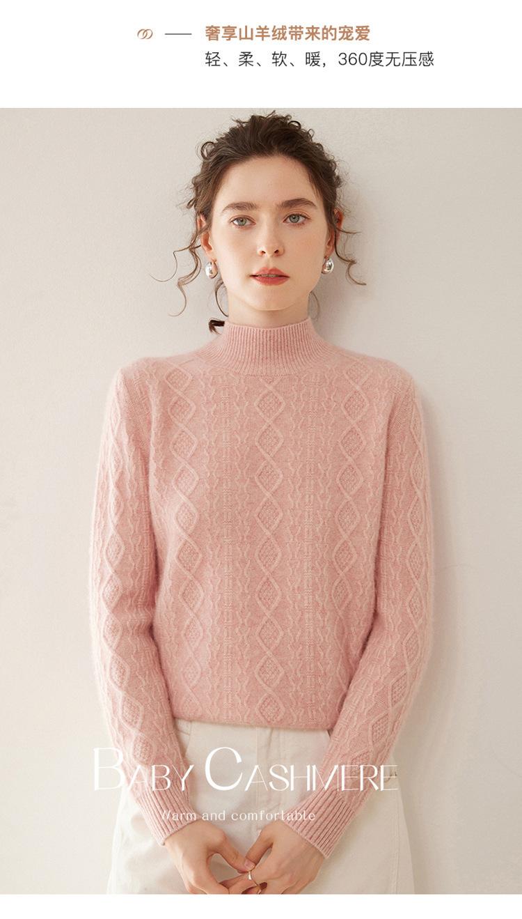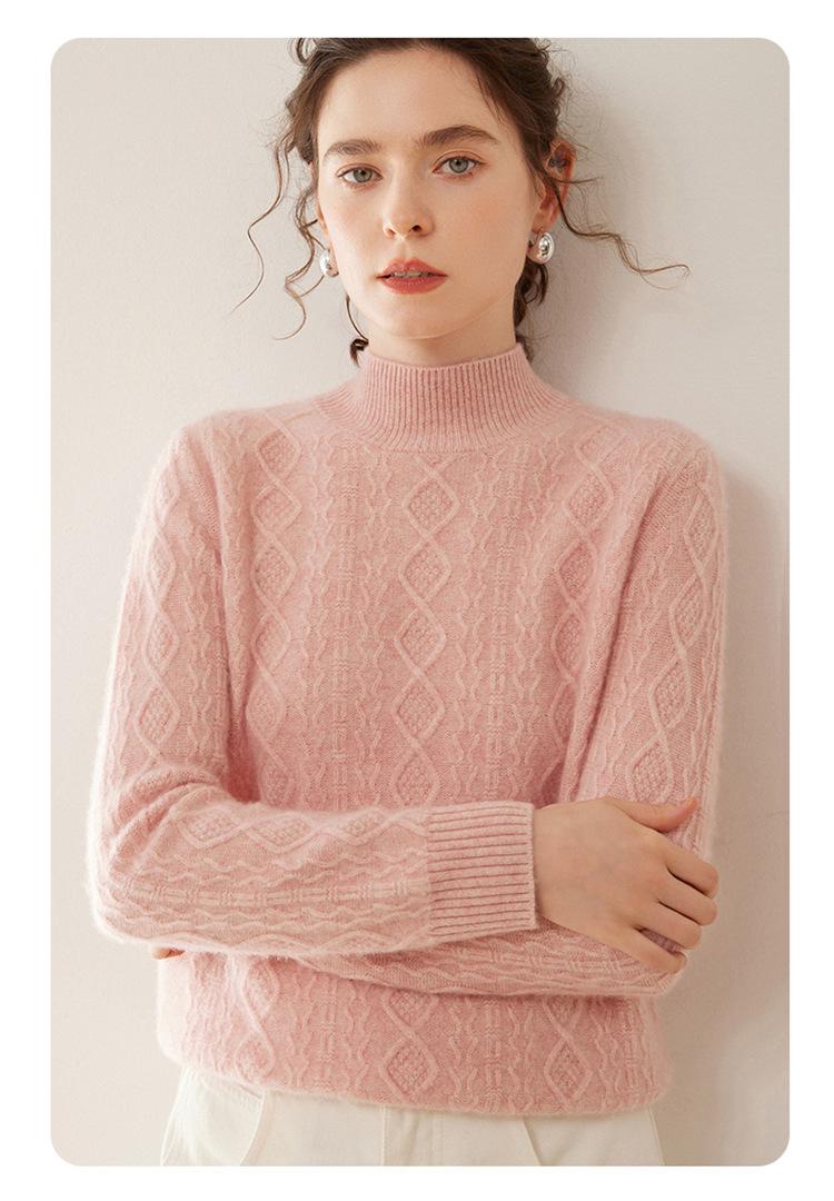 Camiseta básica de punto de cachemira cálida de corte ajustado a la moda con cuello medio alto para mujer, de manga larga y diseño de cable suelto