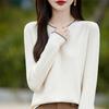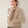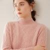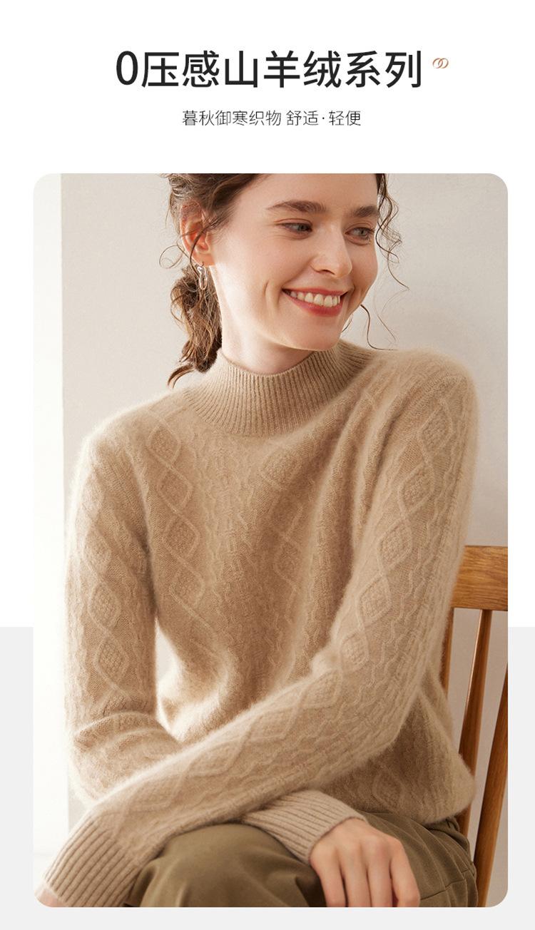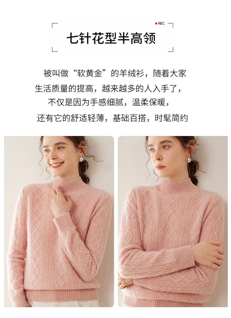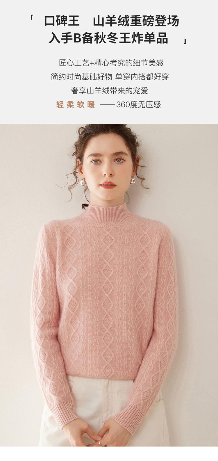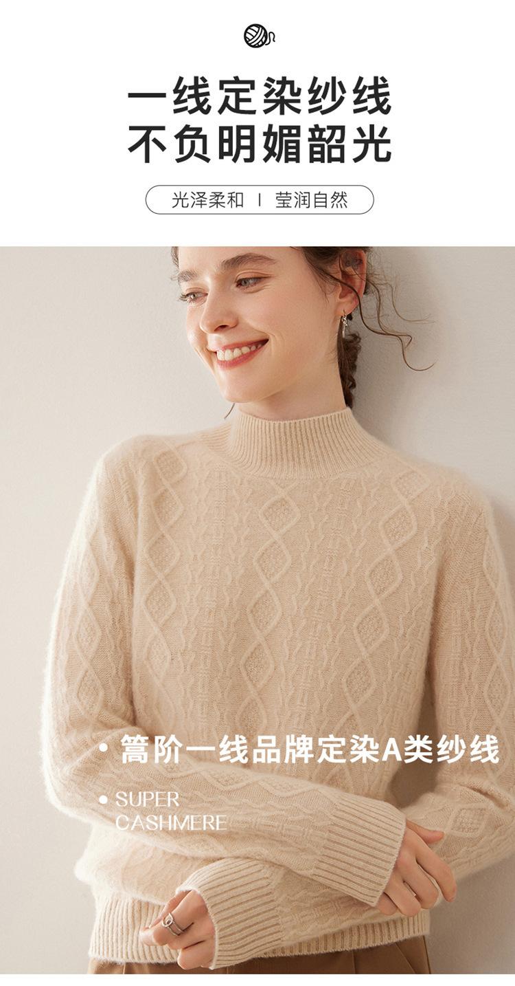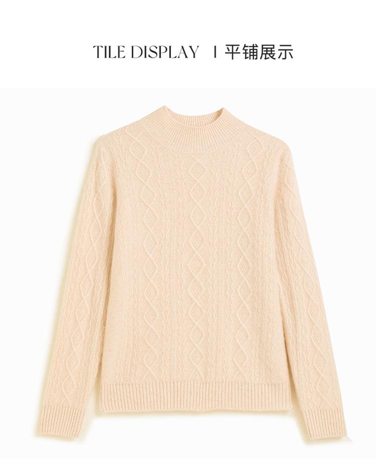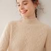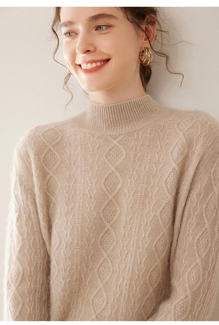 Camiseta básica de punto de cachemira cálida de corte ajustado a la moda con cuello medio alto para mujer, de manga larga y diseño de cable suelto