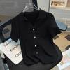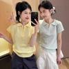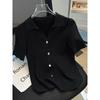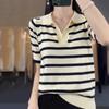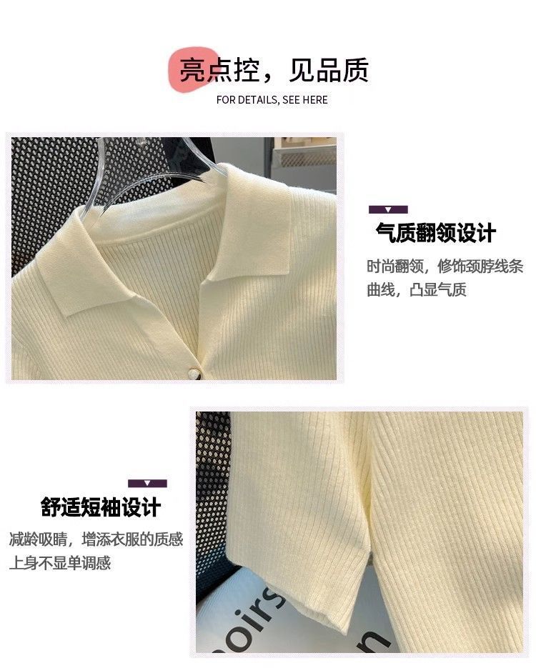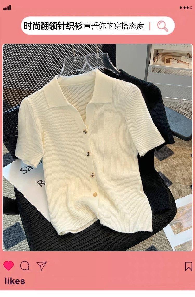 Playera de Punto de Manga Corta con Cuello Polo de Seda de Hielo para Mujer Verano 2024 Nueva Camisa Delgada Cárdigan Versátil