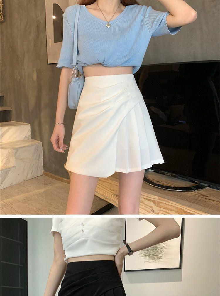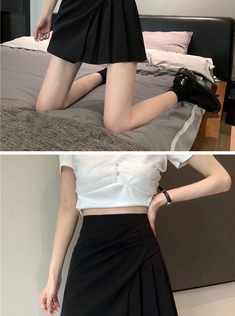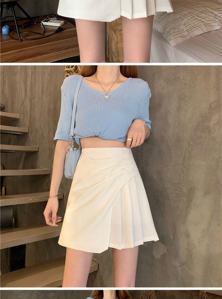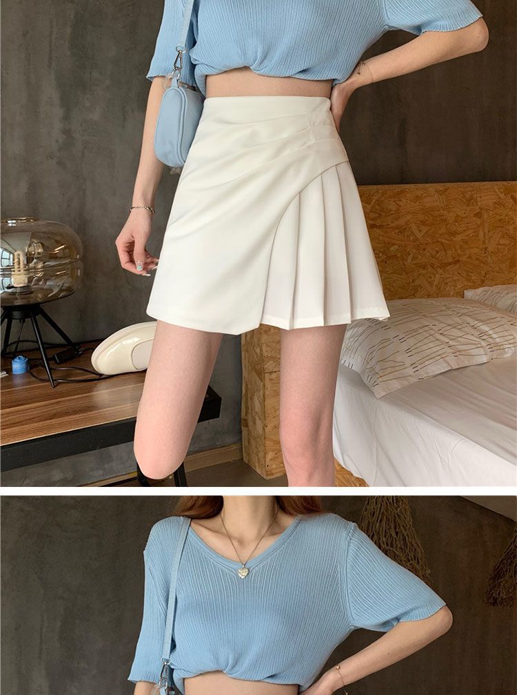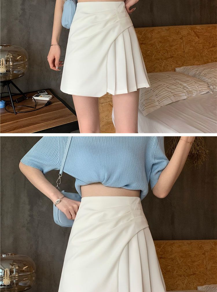 Falda plisada Cintura alta Adelgazante Nueva Falda corta Estilo coreano Estudiante Suelto Moda Versátil Irregular Falda línea A