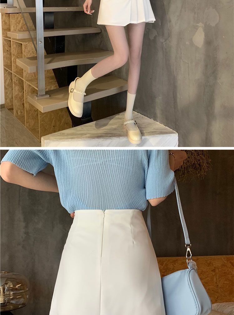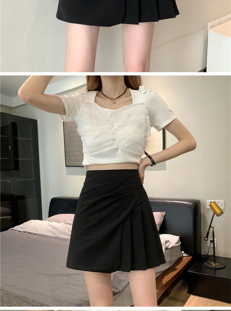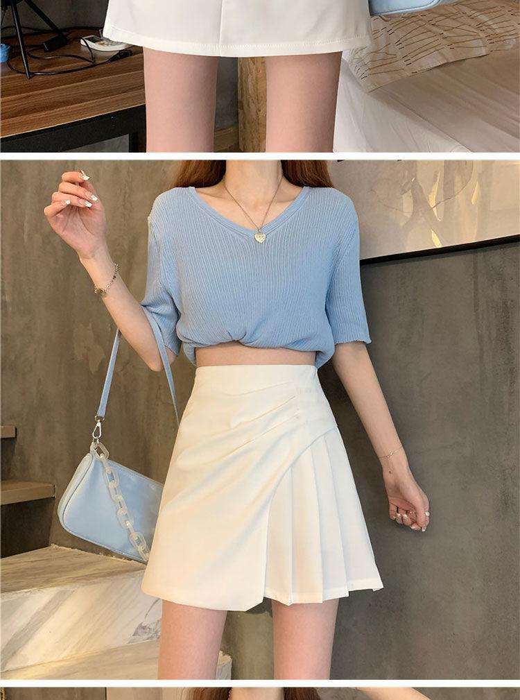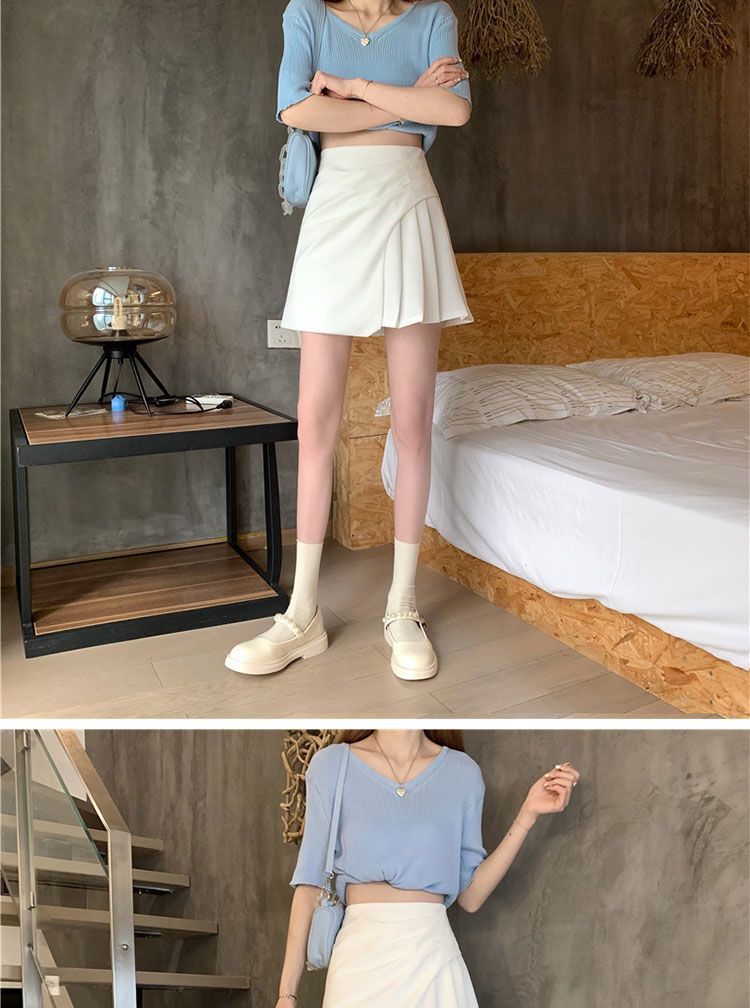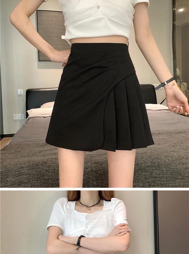 Falda plisada Cintura alta Adelgazante Nueva Falda corta Estilo coreano Estudiante Suelto Moda Versátil Irregular Falda línea A