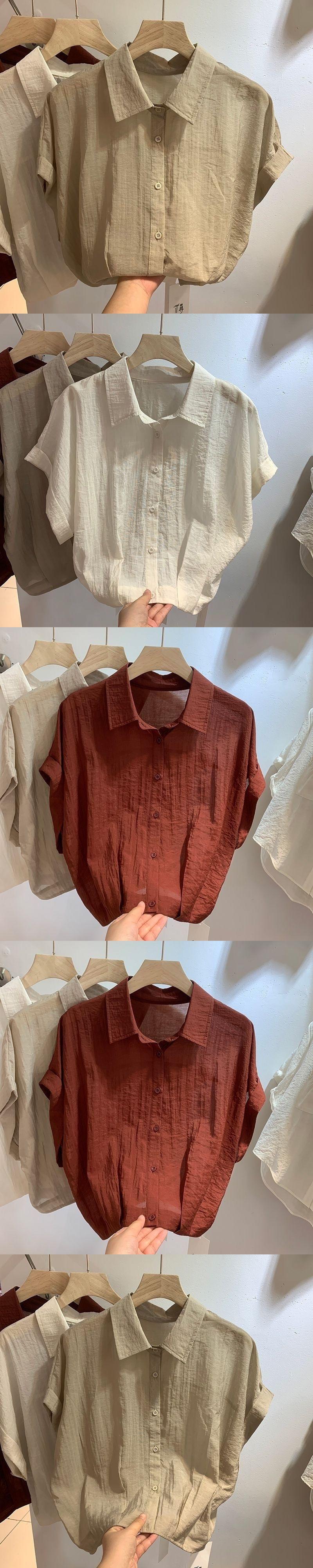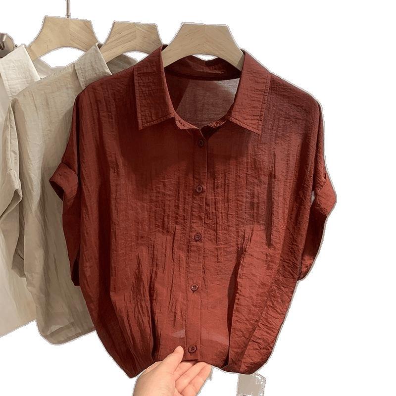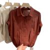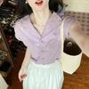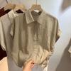 Camisa Francesa con Dobladillo Enrollado para Mujer, Nuevo Estilo de Verano, Diseño Nicho Holgado, Rejuvenecedora, Top de Camisa de Manga Corta Estilo Occidental