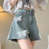 Shorts de mezclilla con lazo para mujer Diseño de atuendo dopamínico Sexy Pantalones holgados de pierna ancha Verano 2025 Nuevo estilo